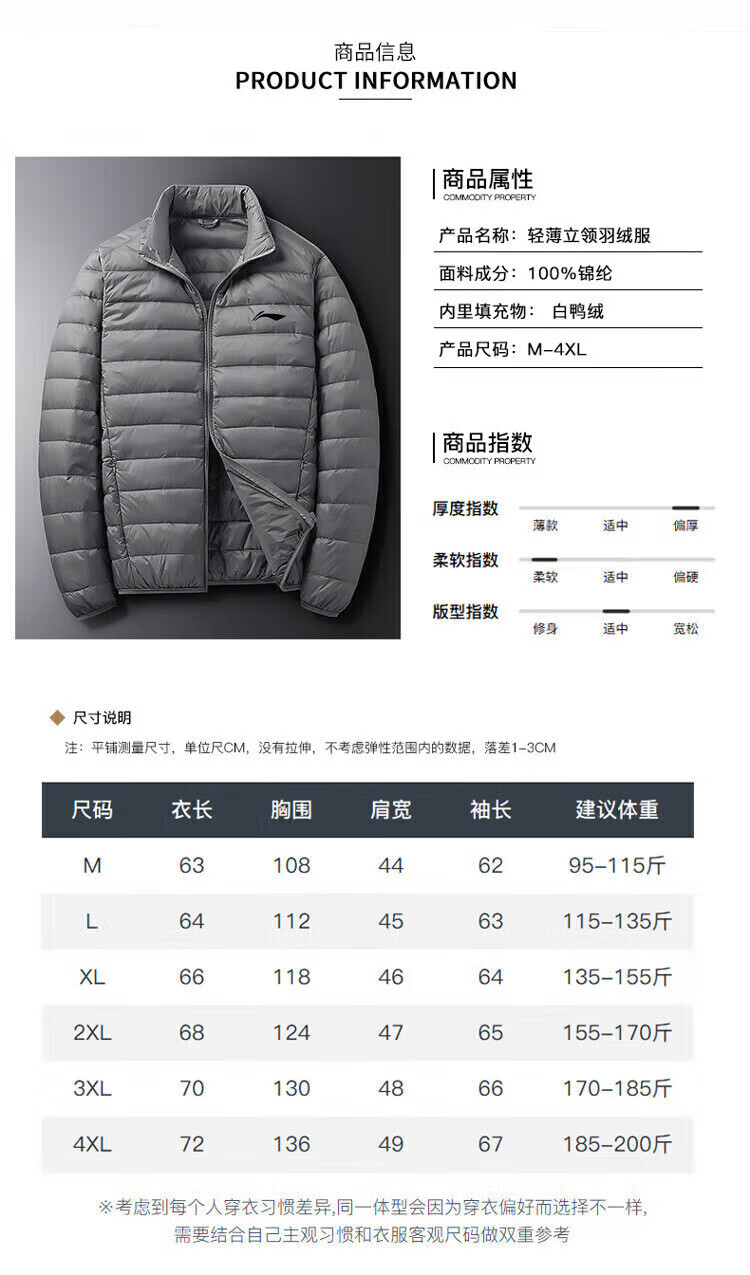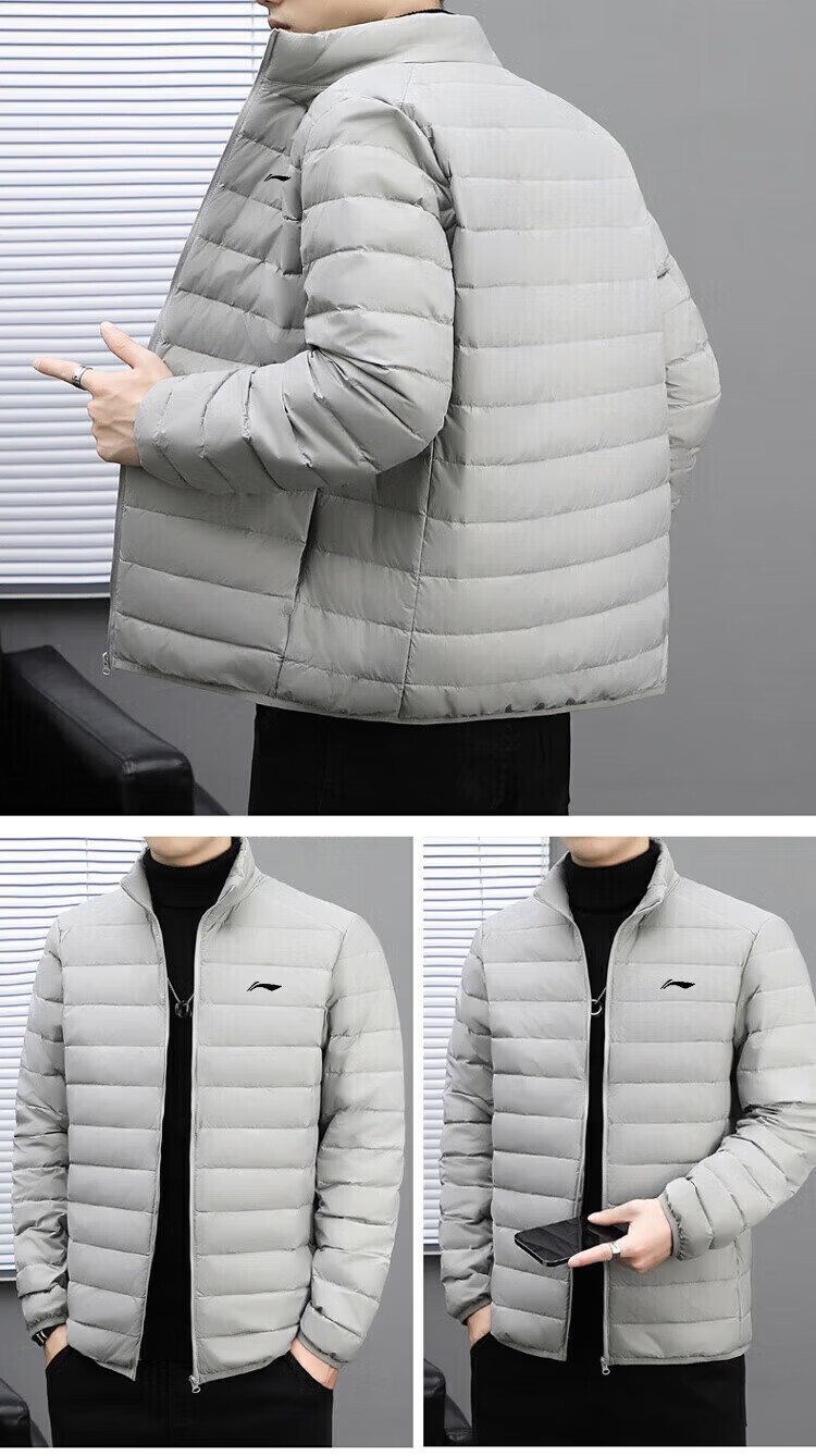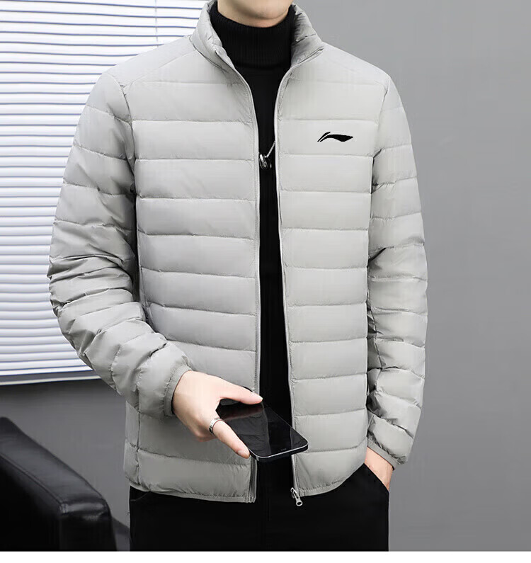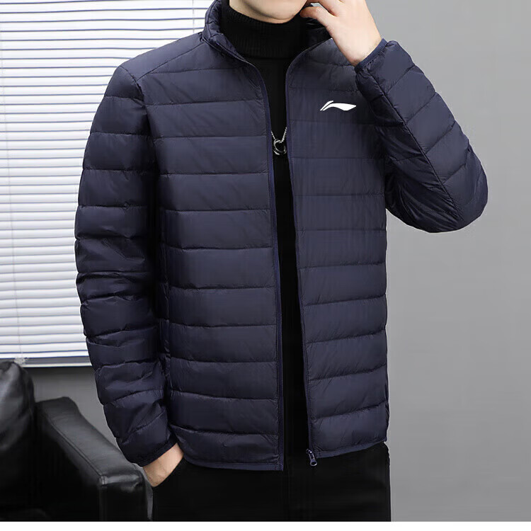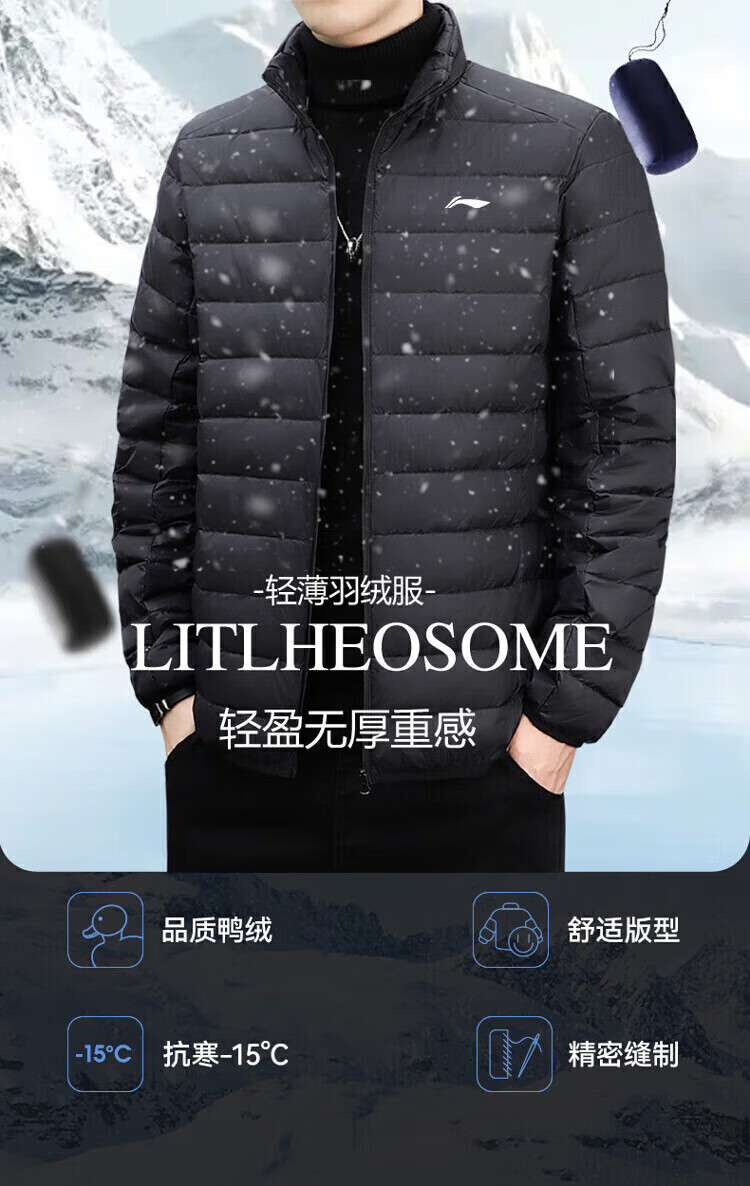LI-NING SINCE 1990 Li Ning Men's Lightweight Winter New White Duck Down Stand Collar Jacket Outdoor Sports Short Clothing Men Black M 95115Jin Jin is equal to 0.5 kg