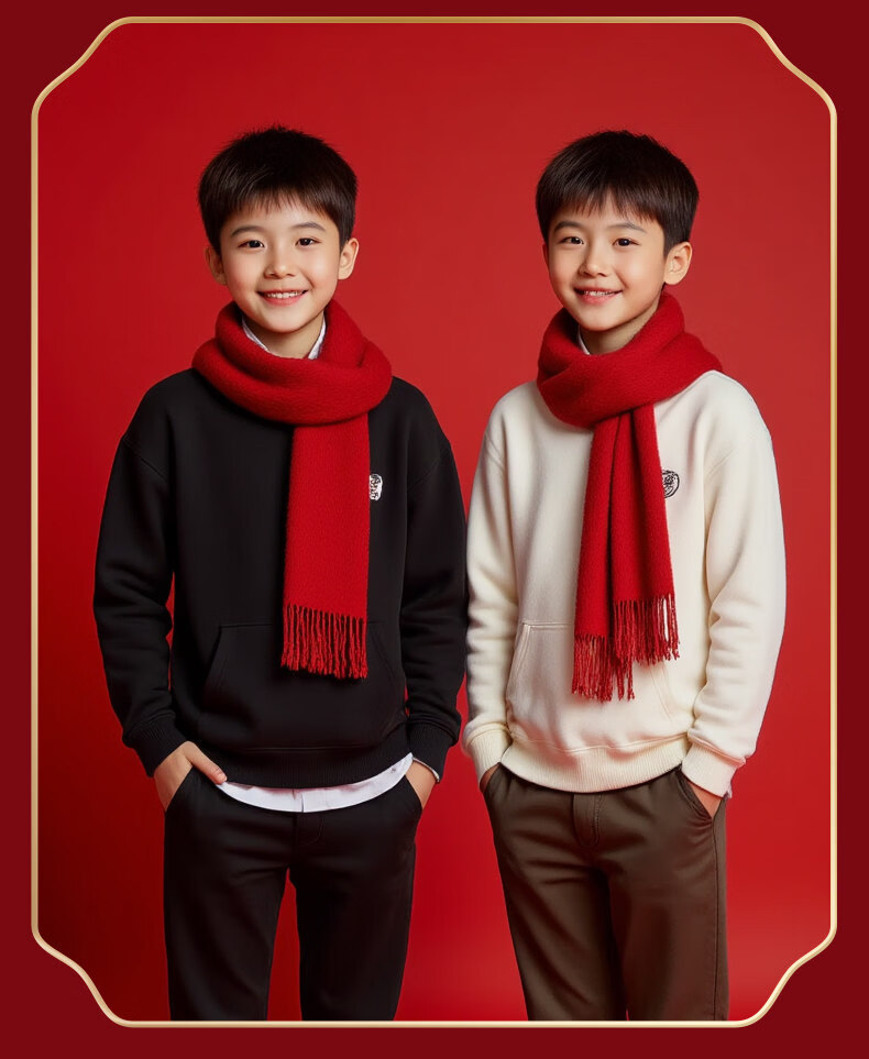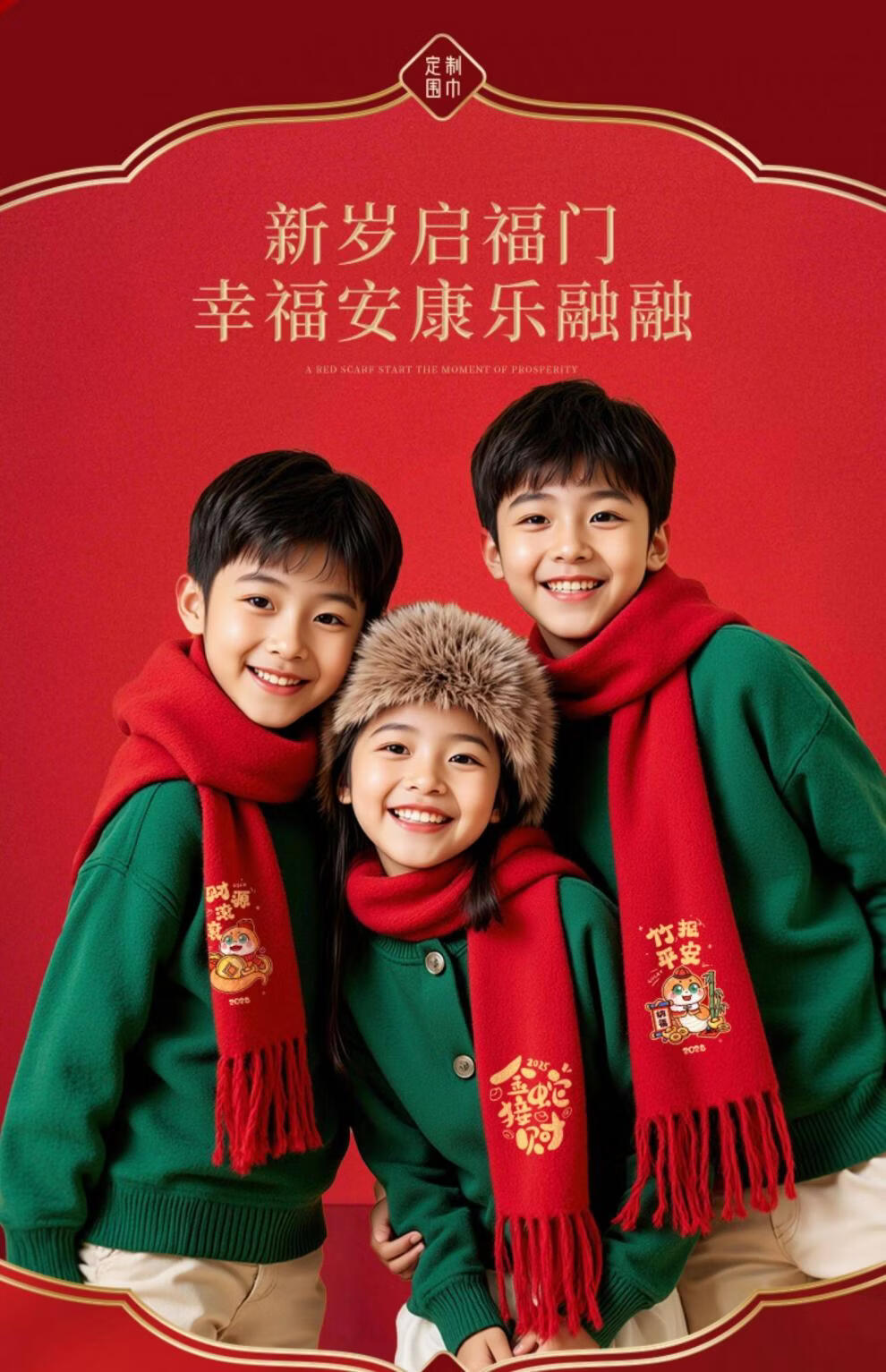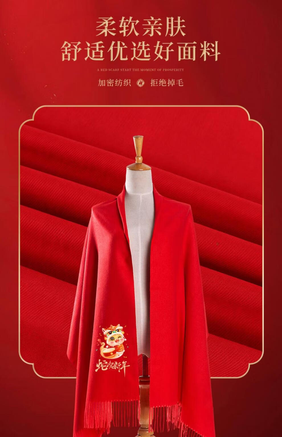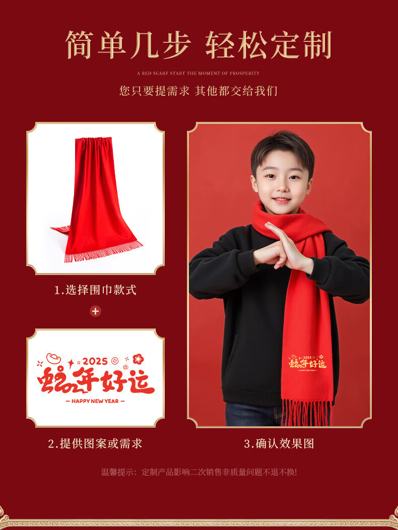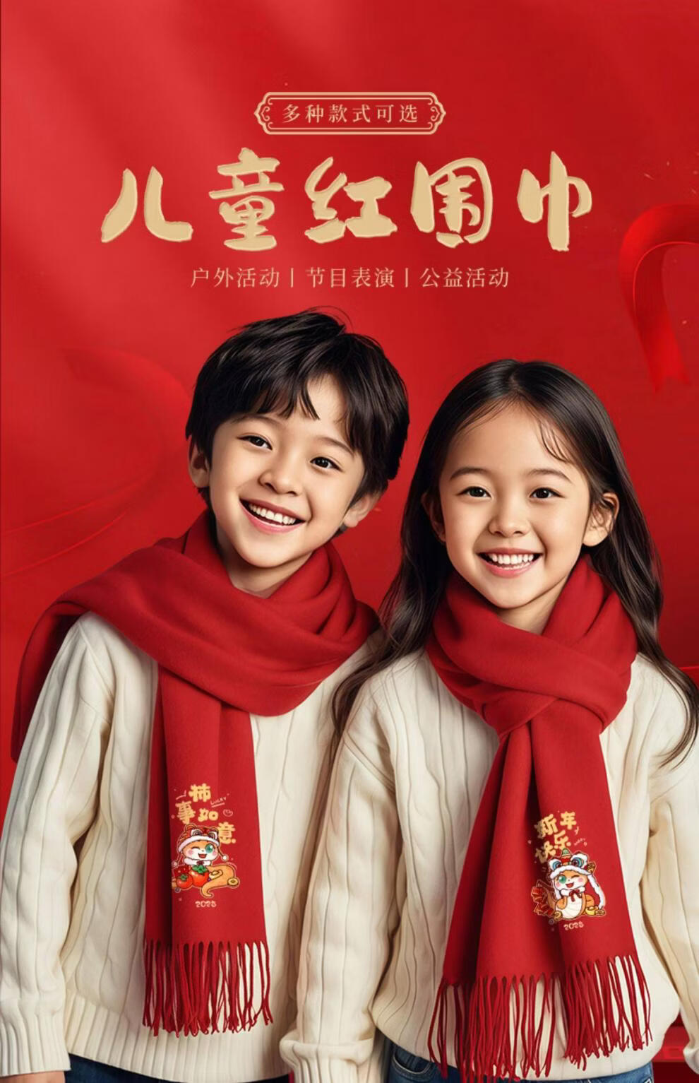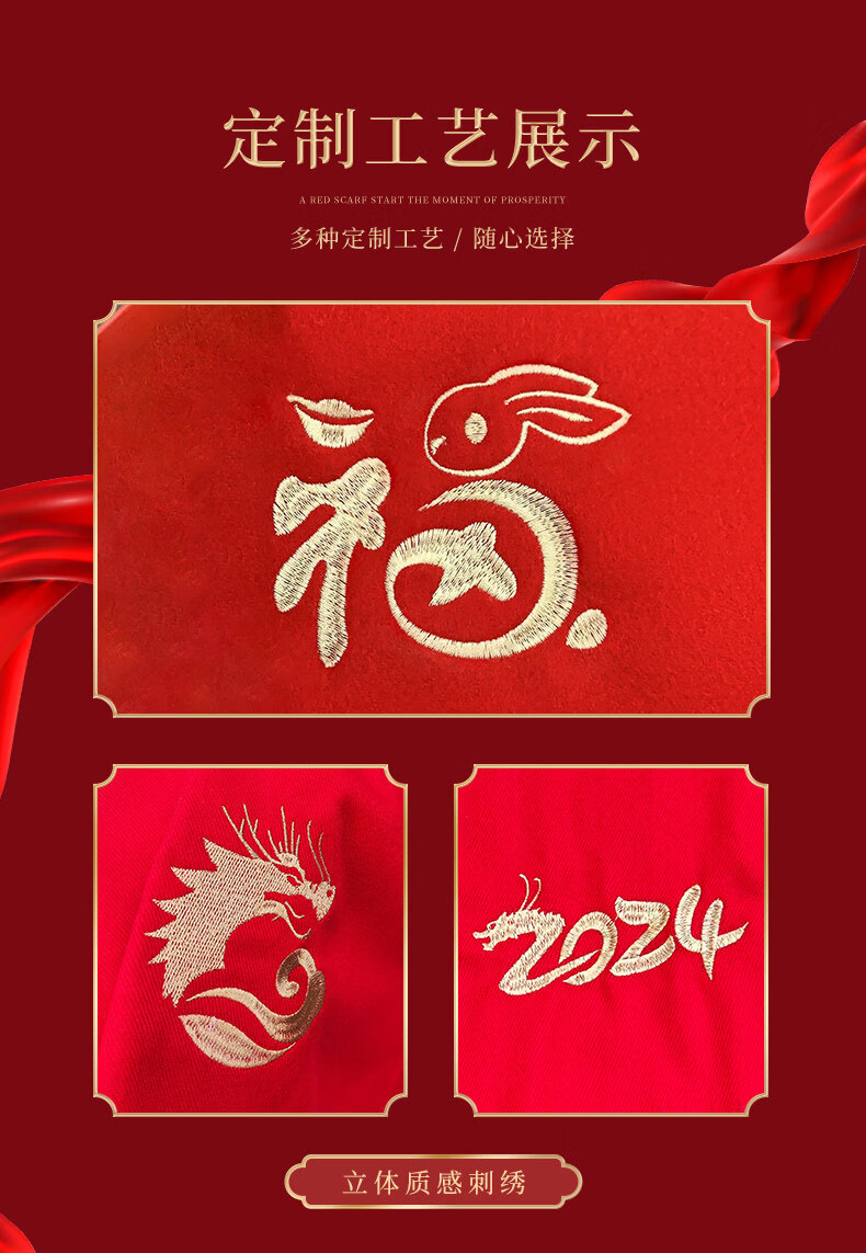 Disney children's red scarf custom logo New Year embroidery Chinese red elementary school students' birth year performance shawl and scarf for men children's WY-thickened small twill red scarf