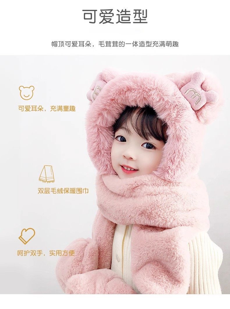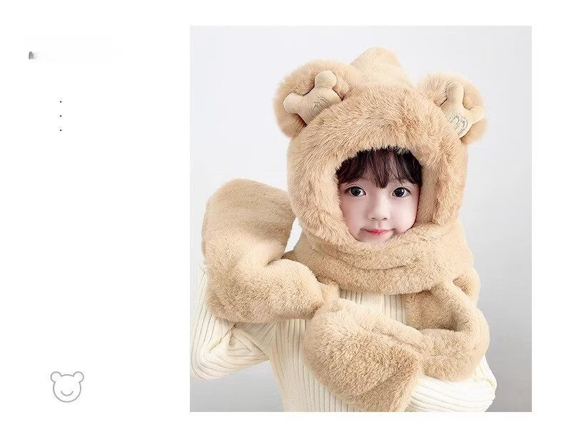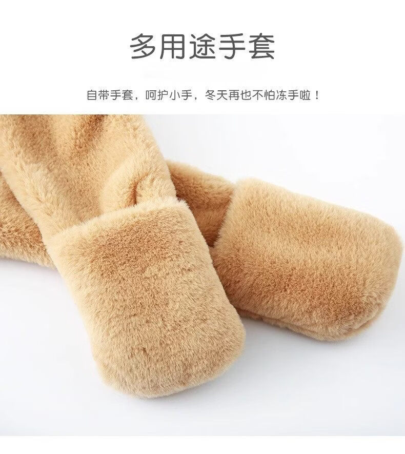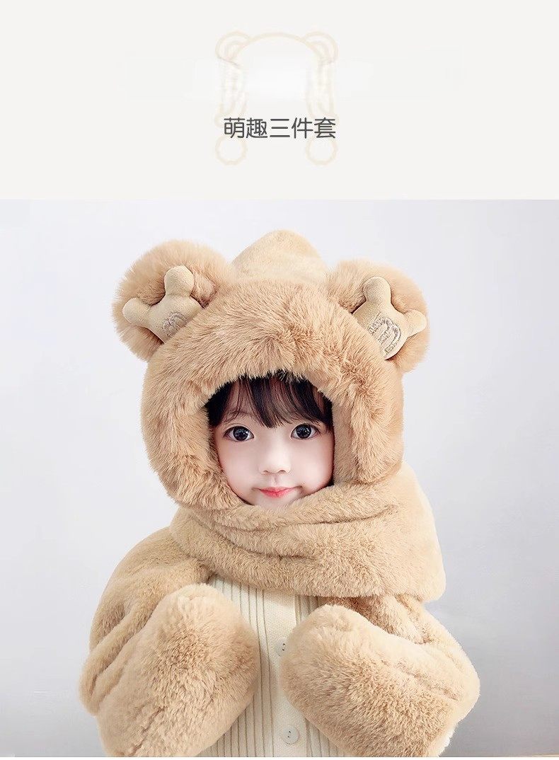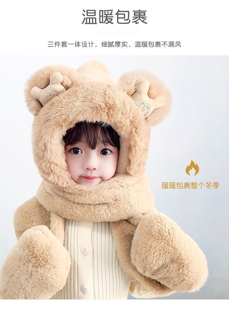 Disney children's hat, scarf and gloves three-piece winter velvet thickening girl's one-piece boy's cycling windproof hat for parents and children, children's style - khaki hat + scarf + gloves, velvet lining to store heat and keep warm, children's style 2-13 years old
