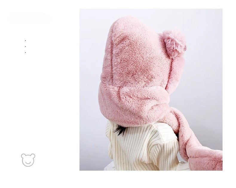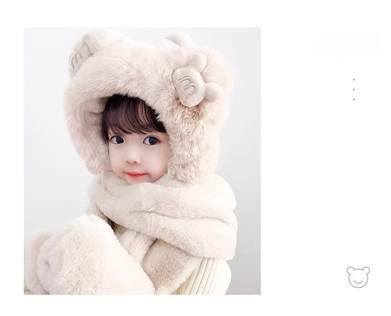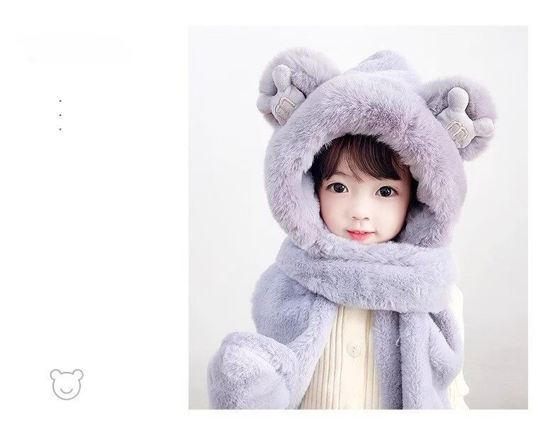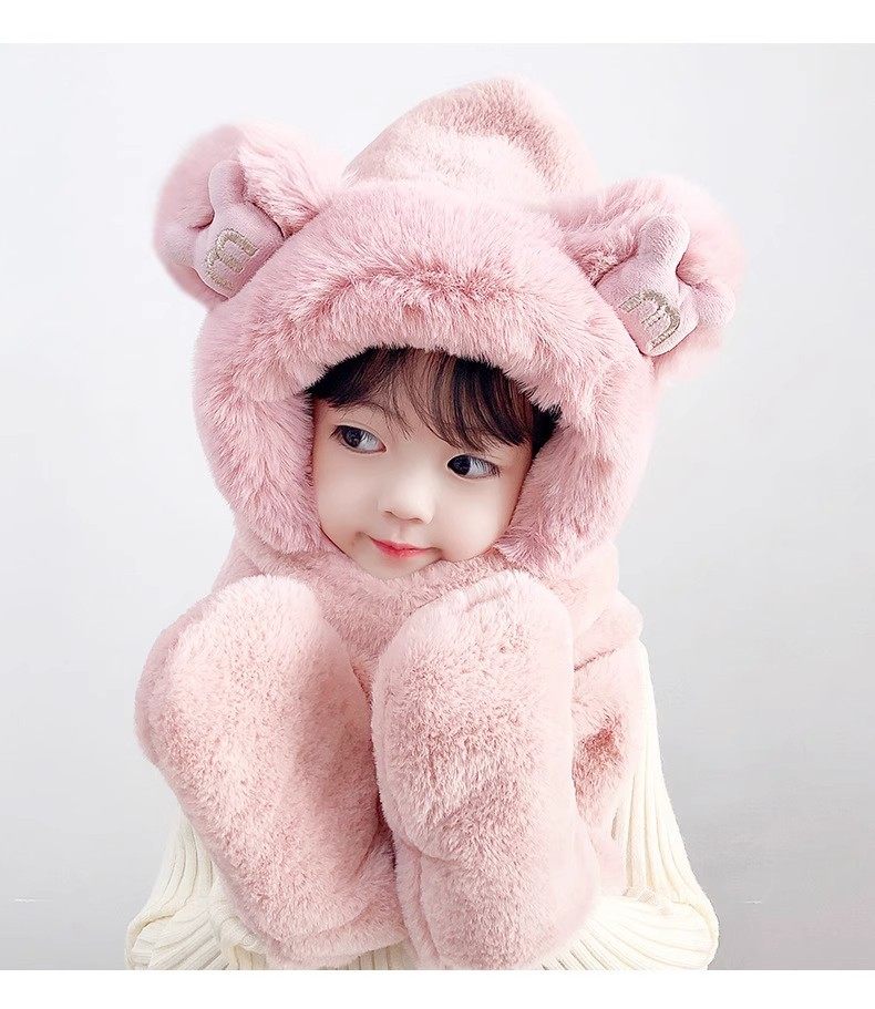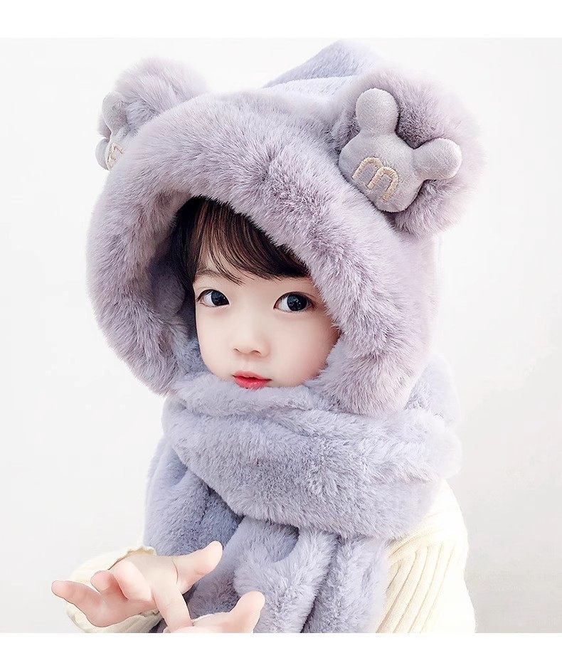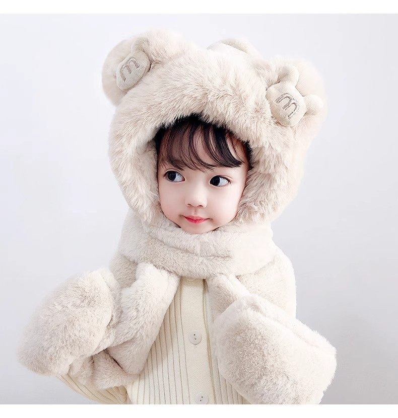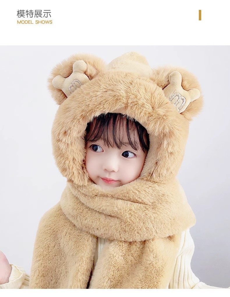 Disney children's hat, scarf and gloves three-piece winter velvet thickening girl's one-piece boy's cycling windproof hat for parents and children, children's style - khaki hat + scarf + gloves, velvet lining to store heat and keep warm, children's style 2-13 years old