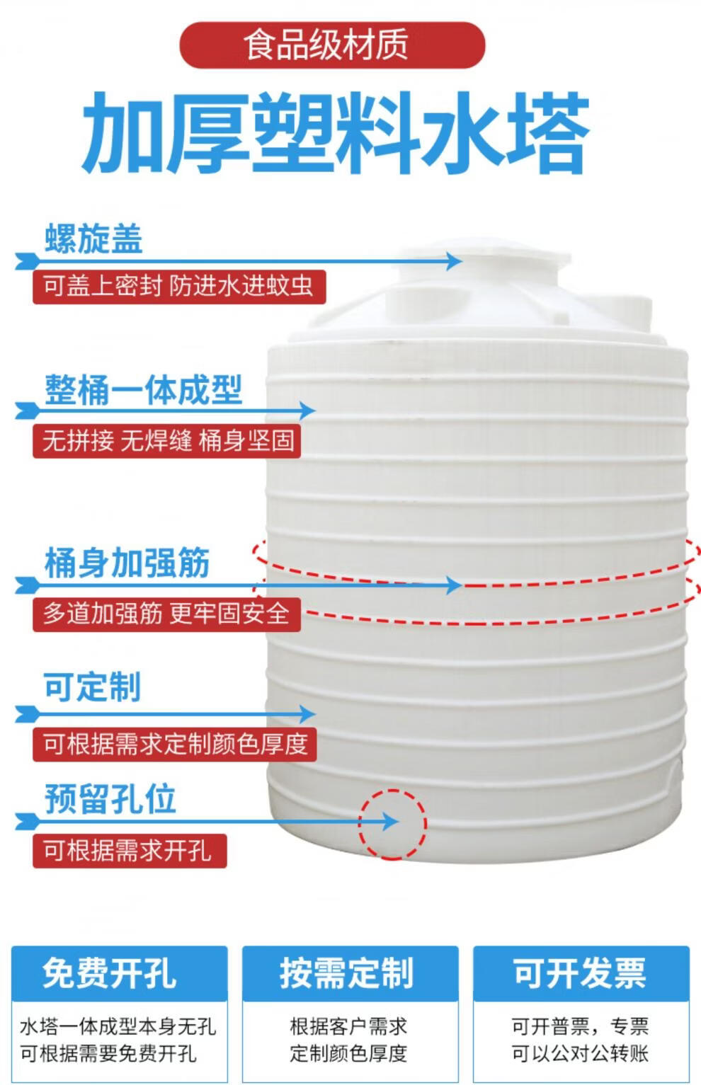 Bucket Food Grade Plastic Water Tower Water Storage Tank Thickened Water Storage Bucket 10/20/30 Ton Large Capacity Oil Storage Food Grade Beef Tendon Water Storage Tank Customized 500L Thick and Durable