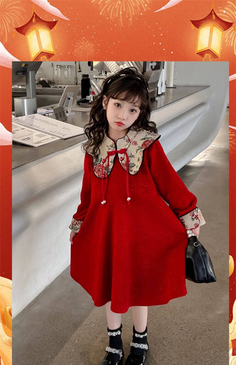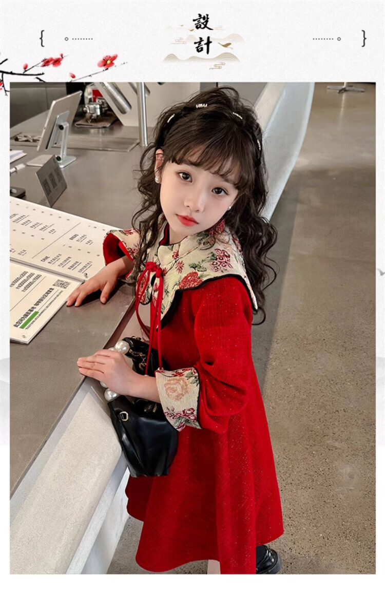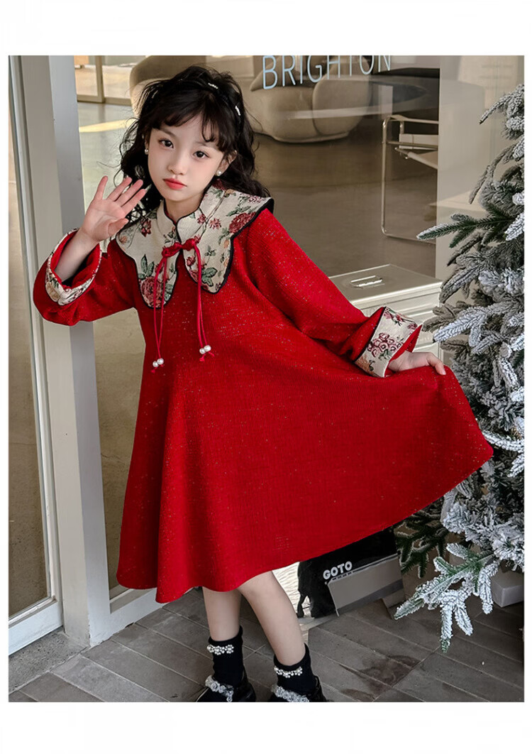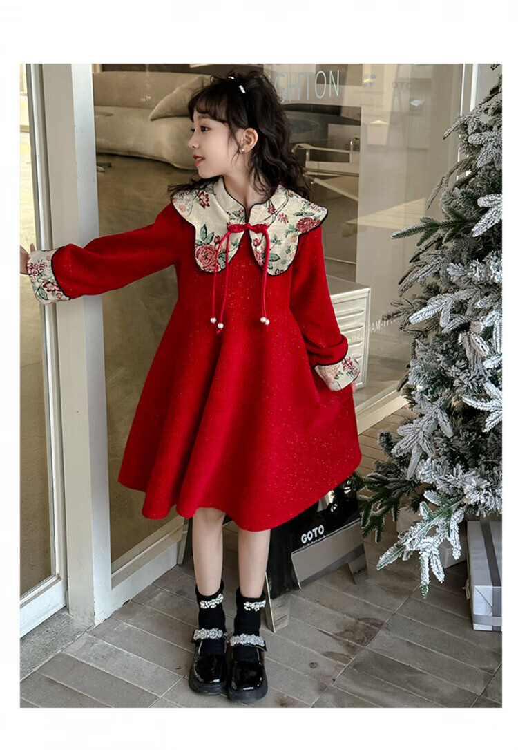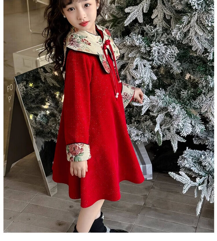 HAL.DUCK Girls Red Dress Autumn and Winter 2025 New Children's National Style Skirt Girls Older Children's New Year Clothes Princess Skirt Red New Year's Clothes Skirt Winter Style Thickened Ready in Seconds 120 cm Recommended Weight 35-45 Jin Jin is equal to 0.5 kg