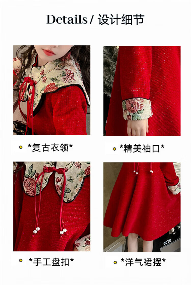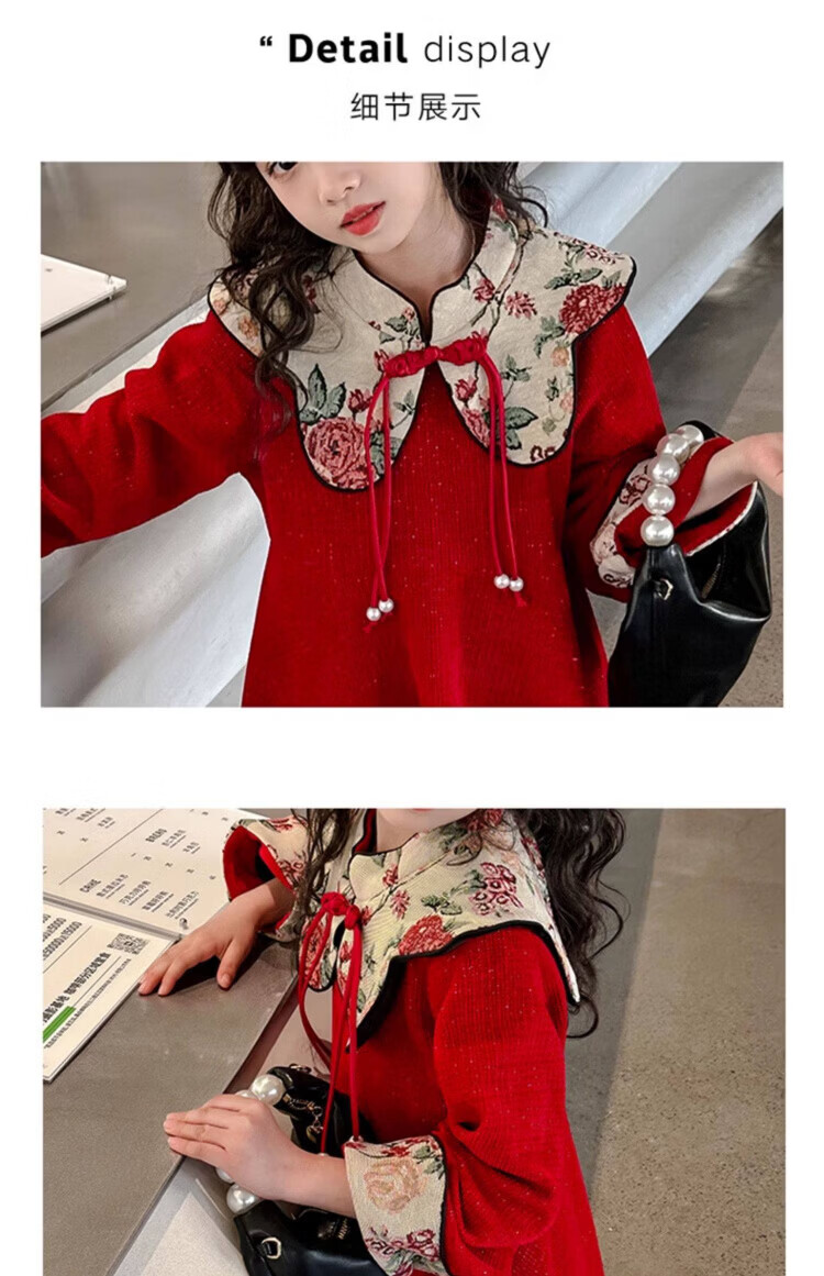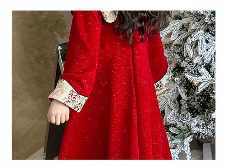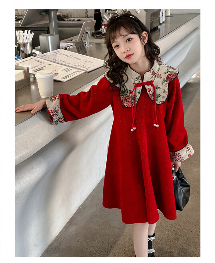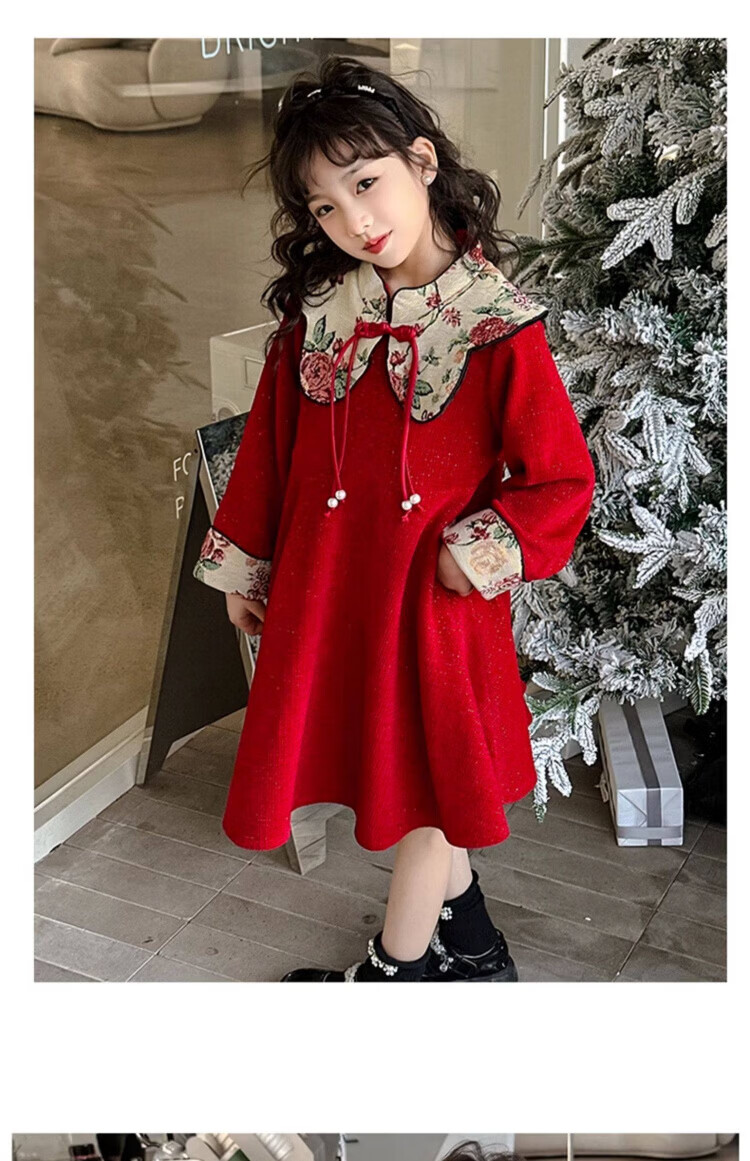 HAL.DUCK Girls Red Dress Autumn and Winter 2025 New Children's National Style Skirt Girls Older Children's New Year Clothes Princess Skirt Red New Year's Clothes Skirt Winter Style Thickened Ready in Seconds 120 cm Recommended Weight 35-45 Jin Jin is equal to 0.5 kg
