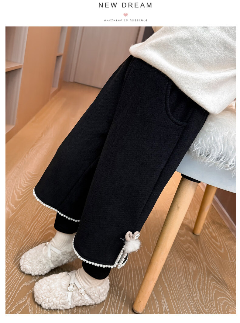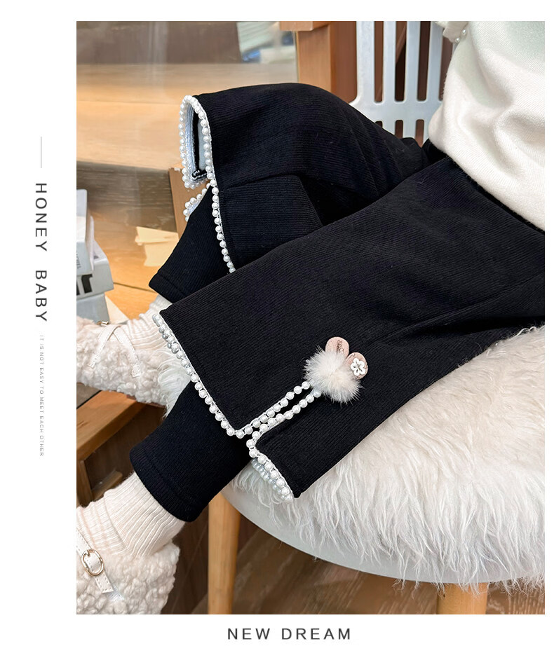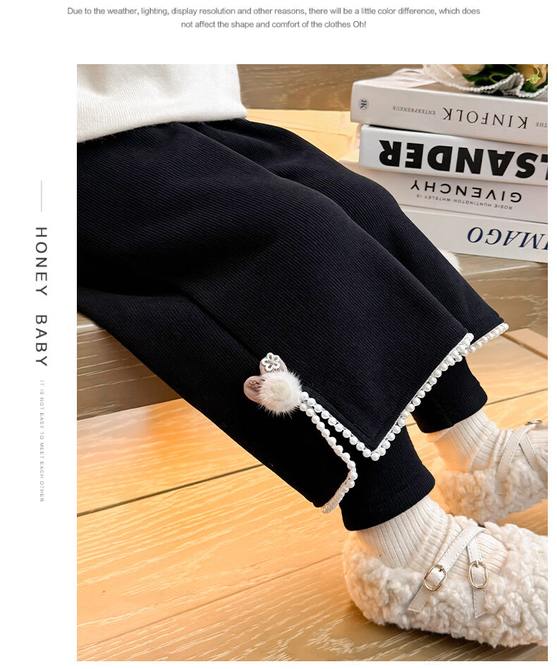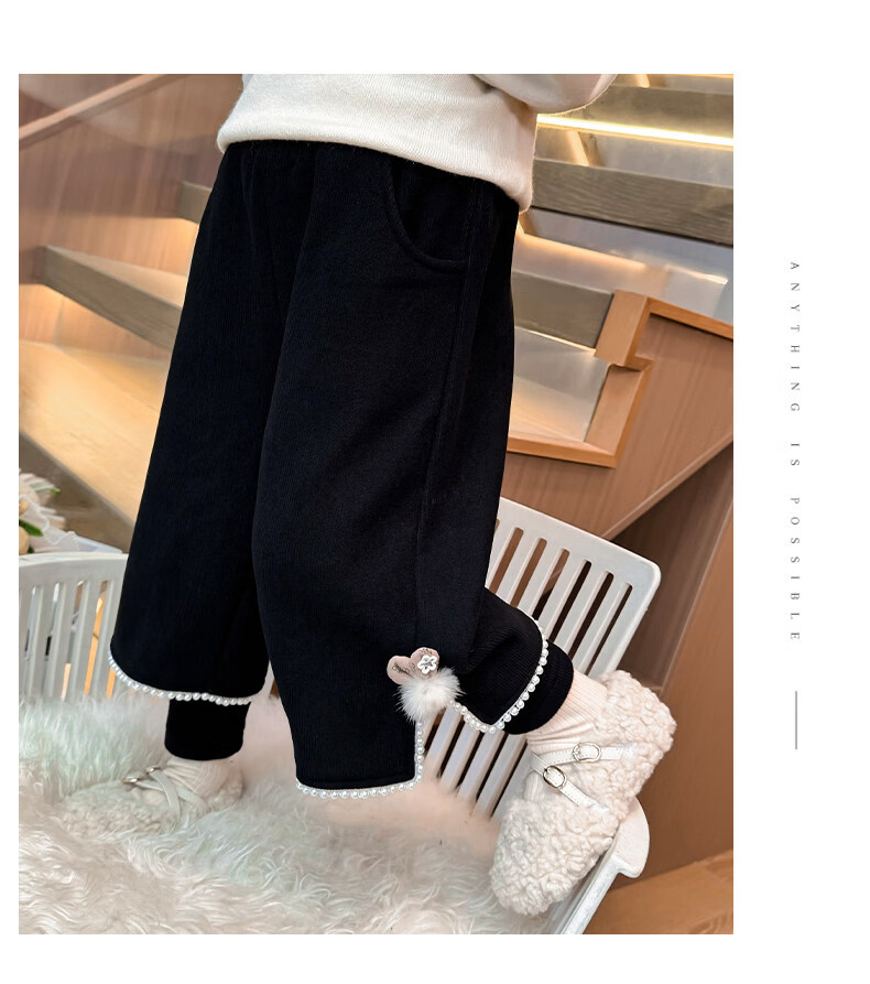 Disney girls' velvet pants autumn and winter 2026 new children's style winter all-in-one thin velvet sweatpants baby black 130 cm