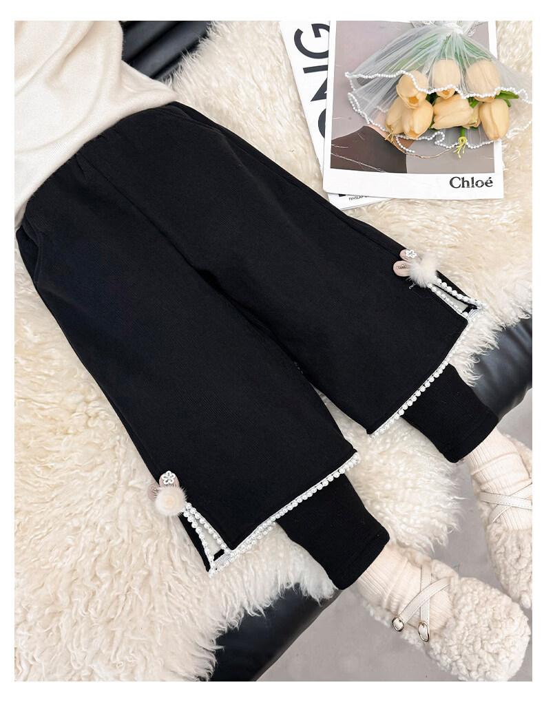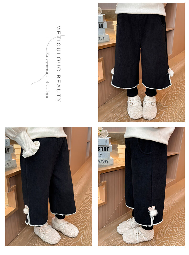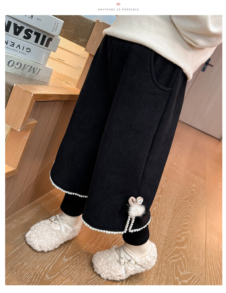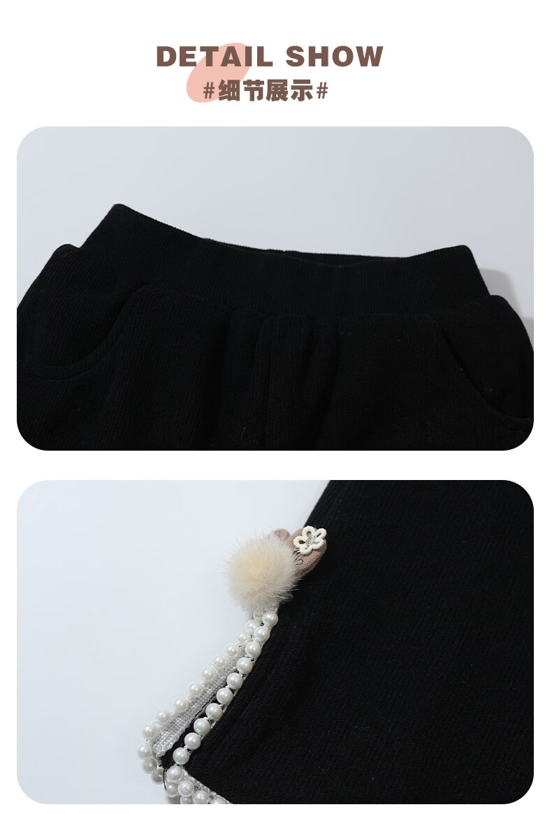 Disney girls' velvet pants autumn and winter 2026 new children's style winter all-in-one thin velvet sweatpants baby black 130 cm