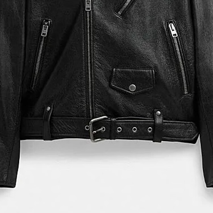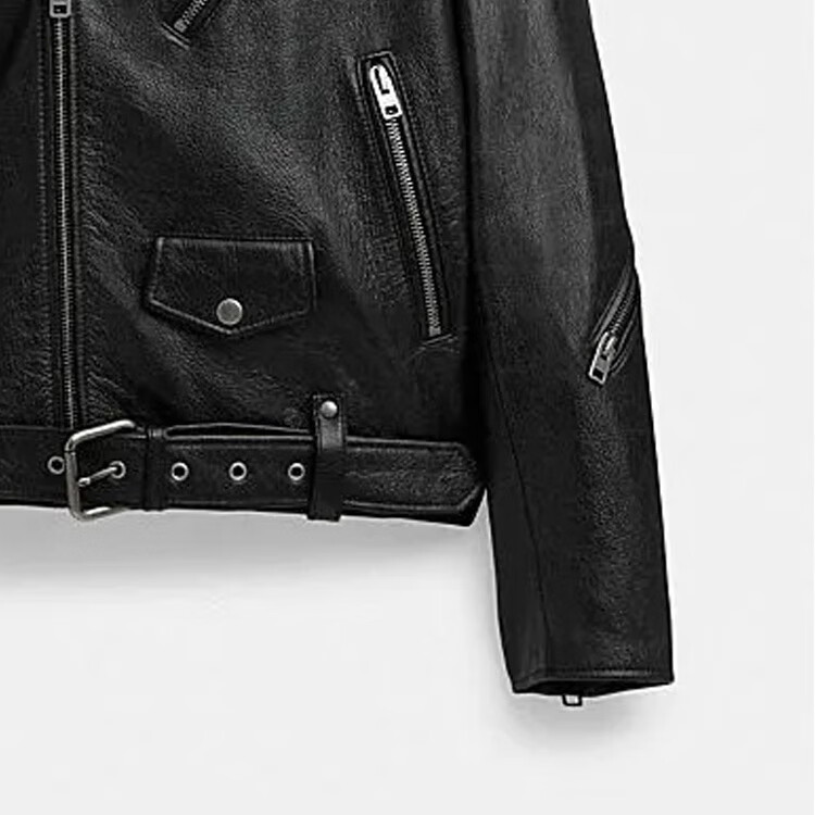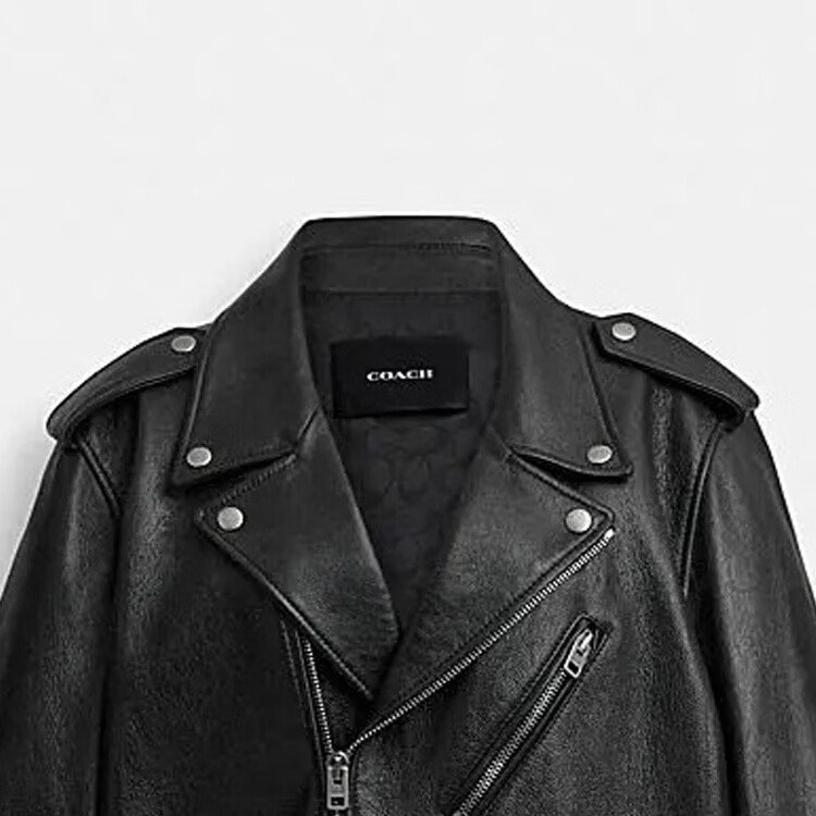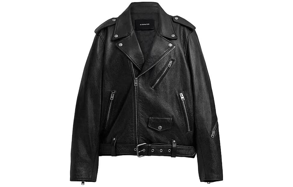 COACH FW solid color zipper lapel long-sleeved casual leather jacket for men black black M