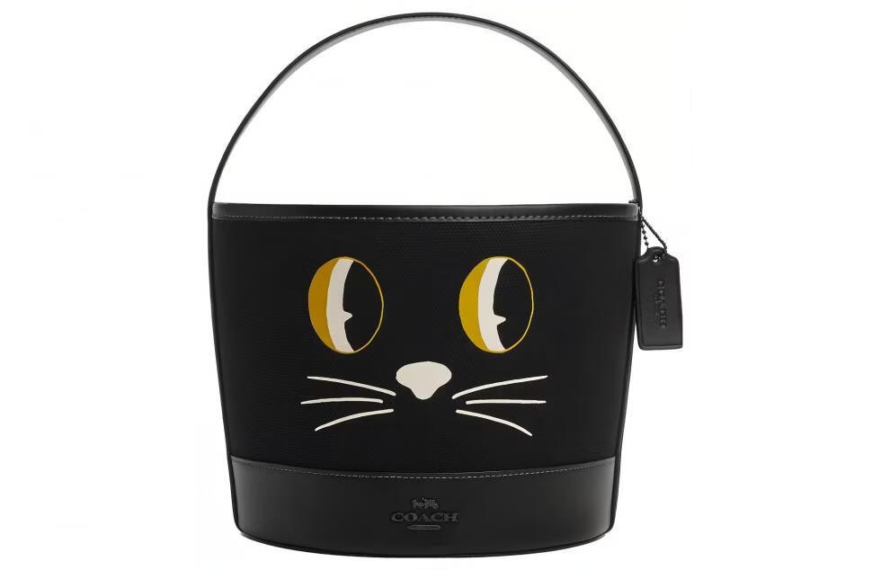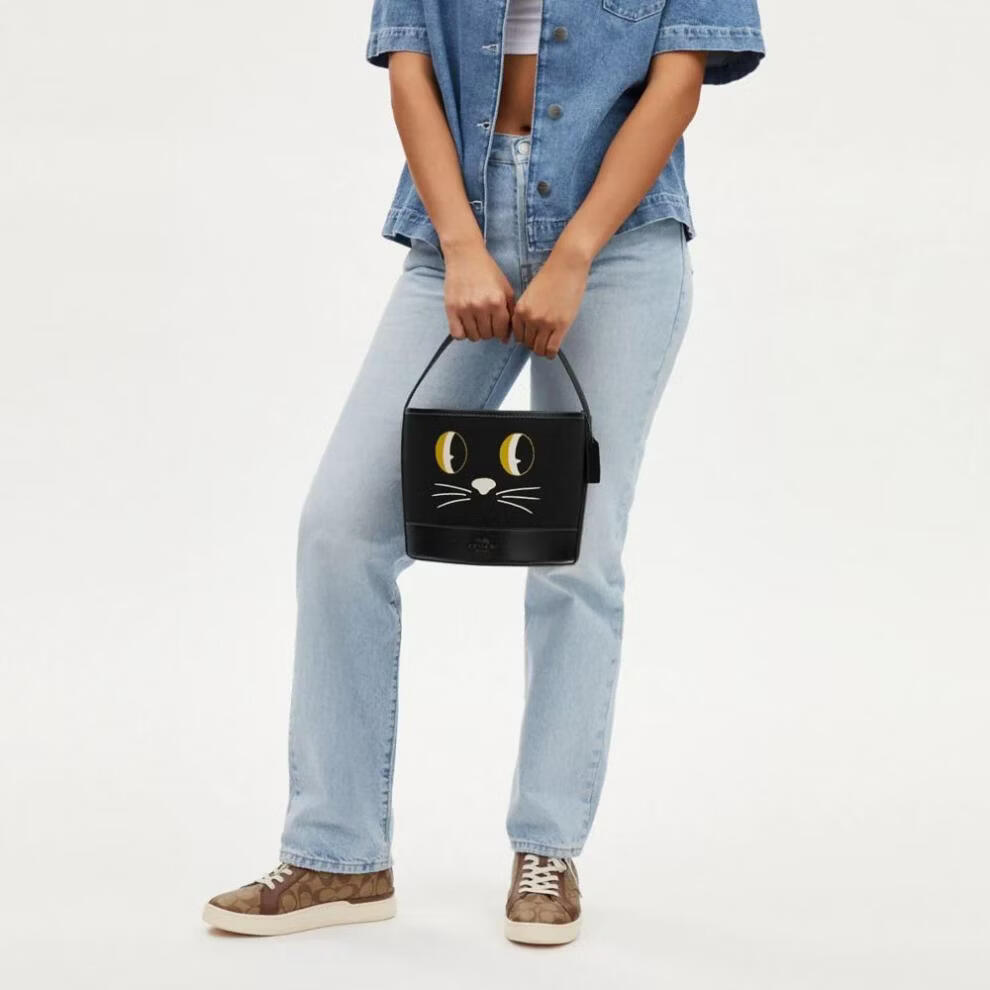 COACH Trick Or Treat Halloween Cat Pattern Logo Canvas Leather Bucket Bag Handbag Small Default BasicSet(Bag+DustBag)