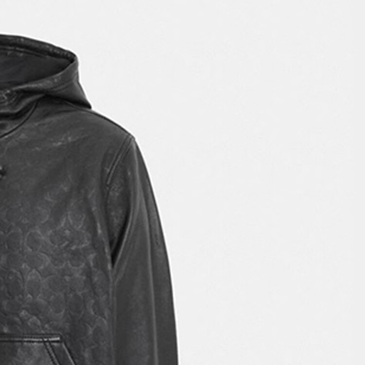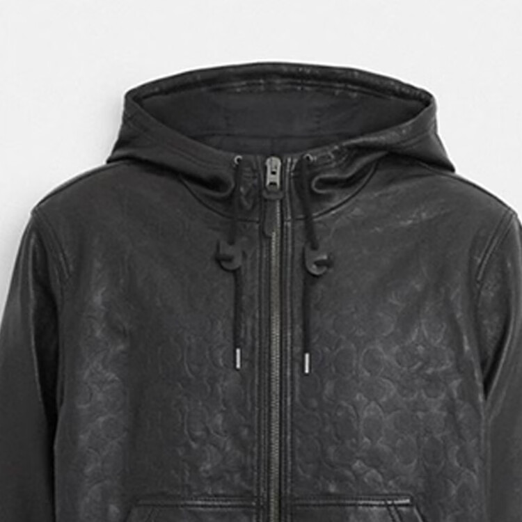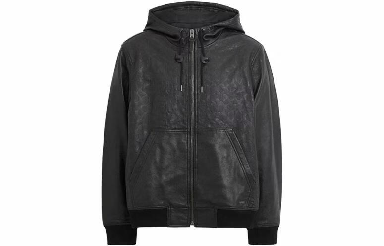 COACH SS Solid Color Zipper Pocket Hooded Casual Leather Jacket Men's Black Black S