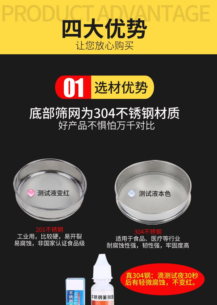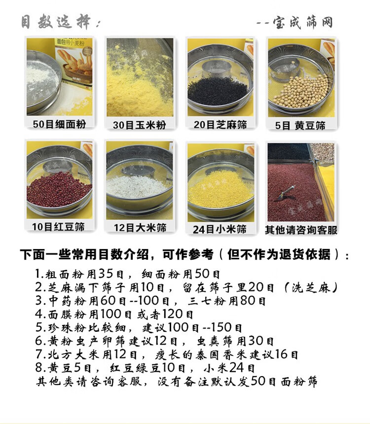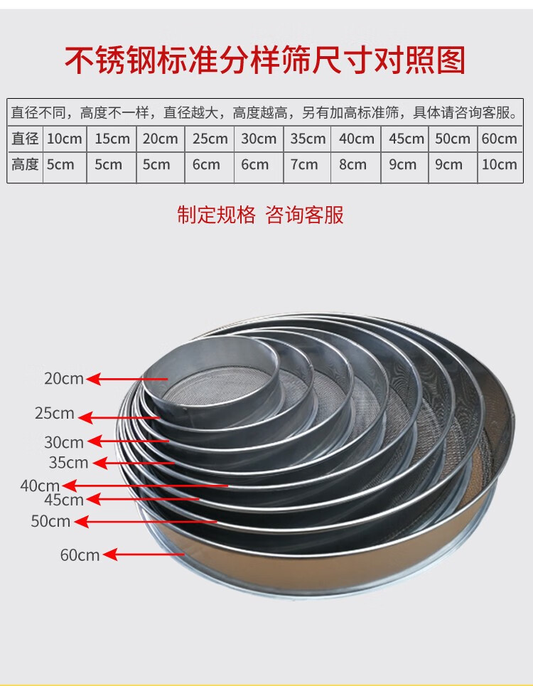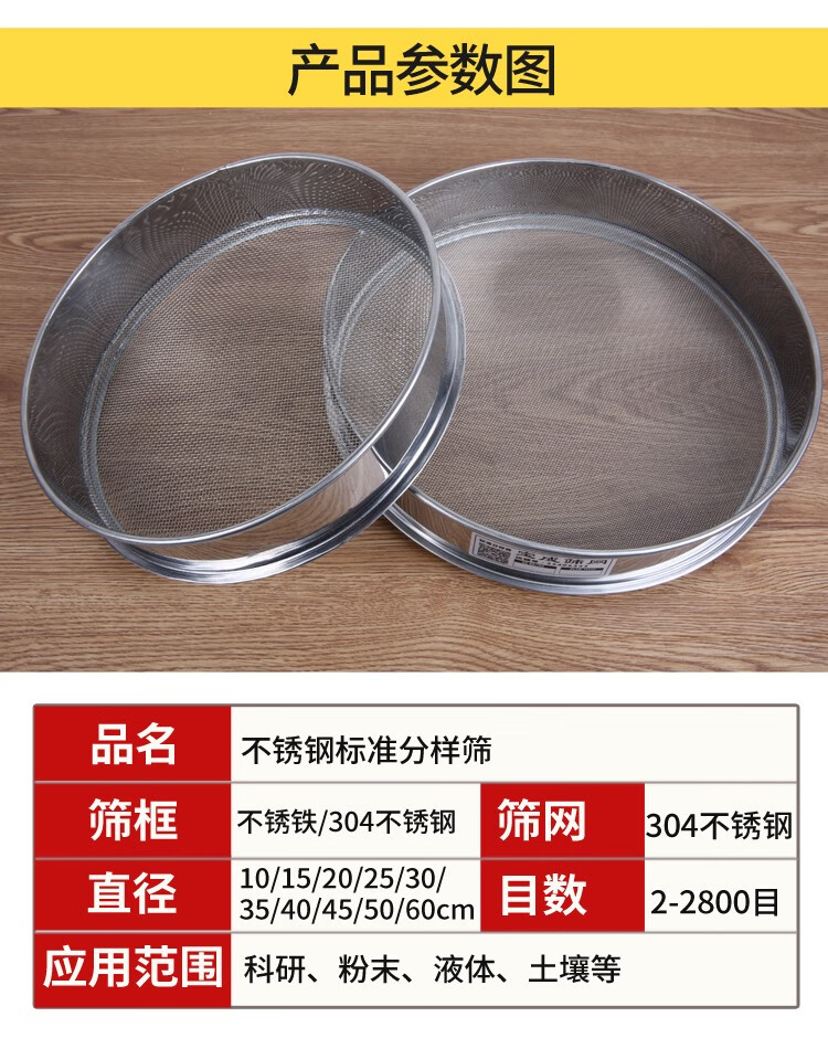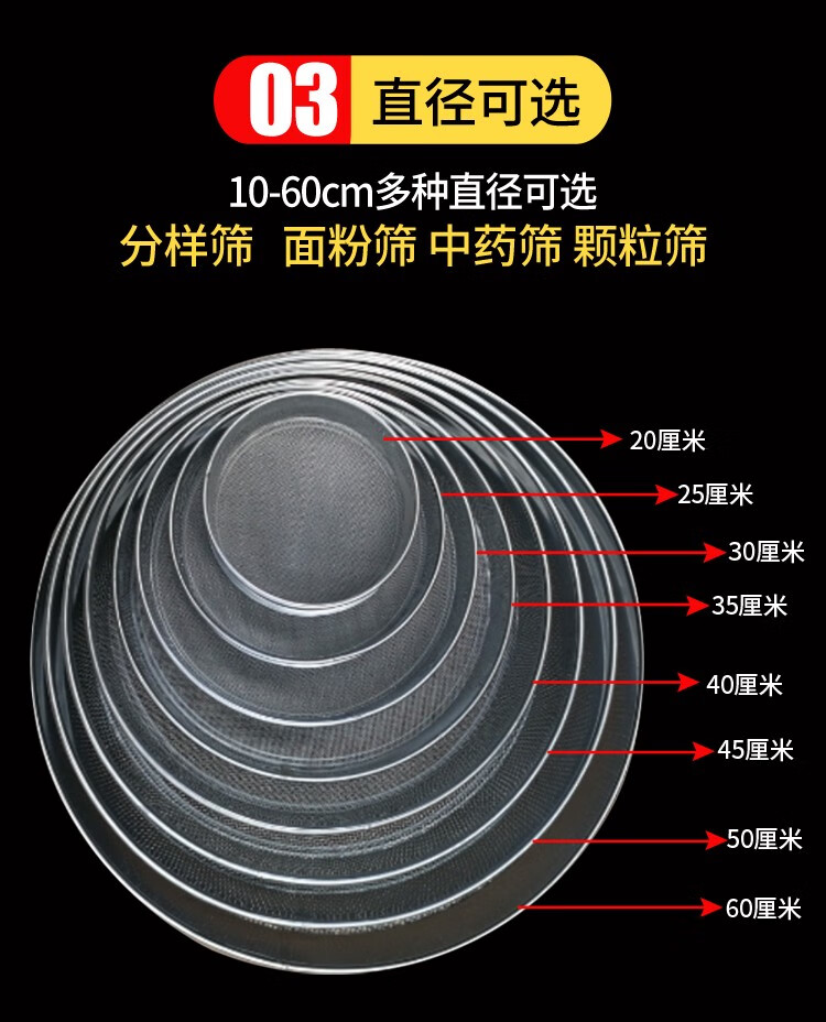 Sieve stainless steel flour sieve baking household 60 mesh ultra-fine filter sieve rice sesame standard sample sieve diameter 45 cm 10-200 mesh message