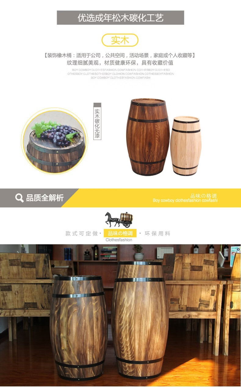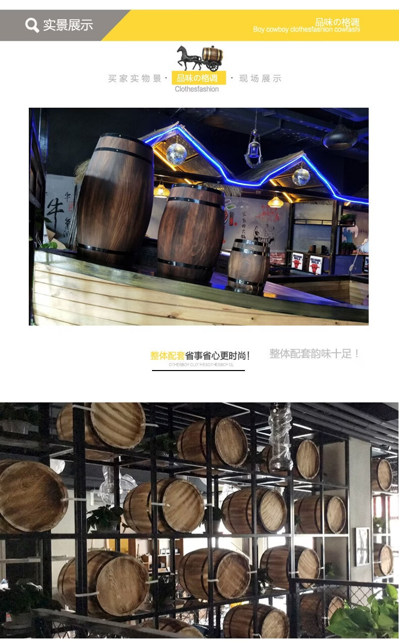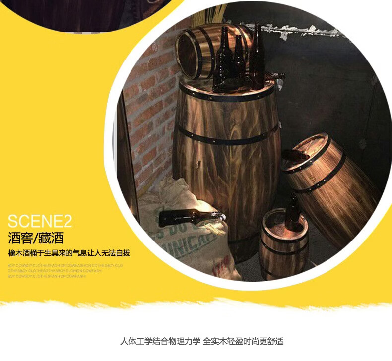 Oak barrel wine barrel decoration solid wood beer barrel red wine barrel decoration winery bar exhibition wedding 50 high bold high quality model