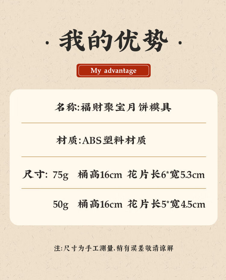 Yonghuan mold hand-pressed baking 75g 50 Cantonese mung bean pastry 50g bamboo 1 mold 1 piece