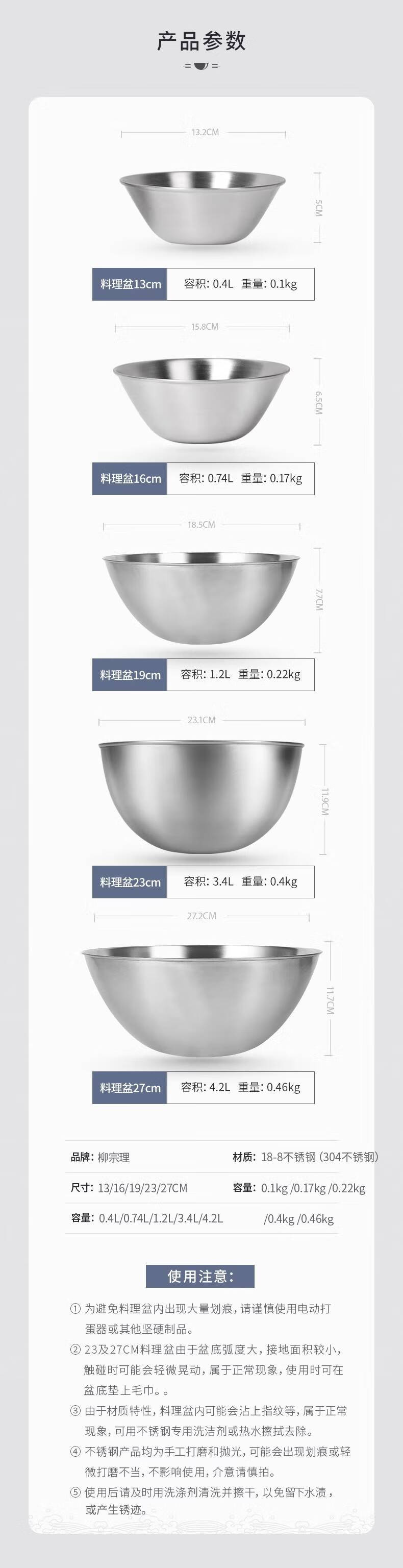 Yanagi Zongli stainless steel cooking basin egg-beating basin tool 304 washing, baking, salad and basin household 13cm