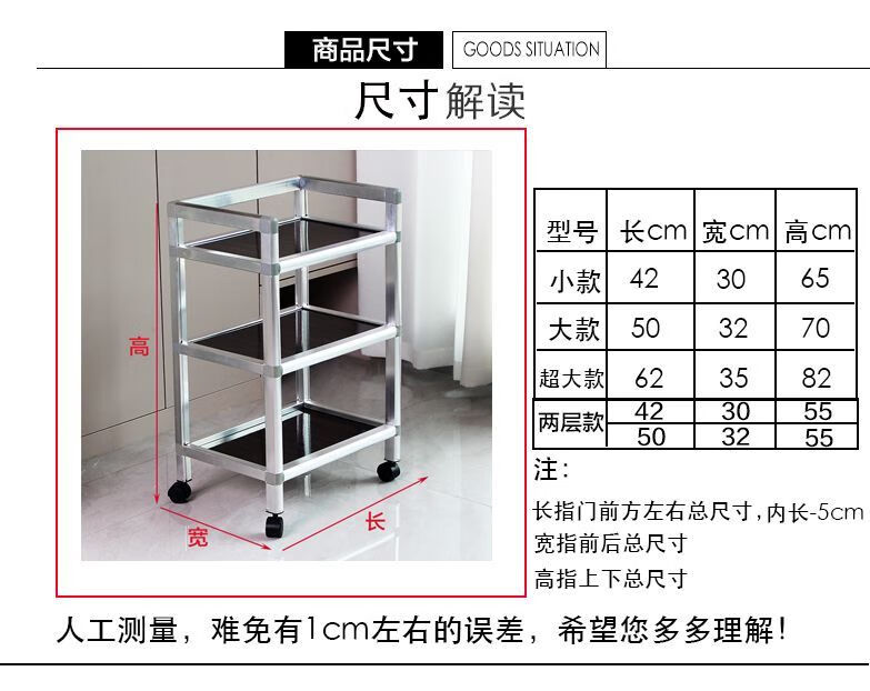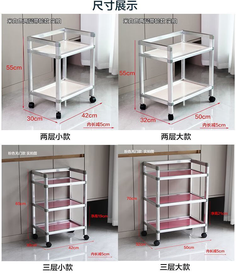 Shantou Lincun physiotherapy multi-layer storage rack trolley beauty salon special trolley eyelash salon dental instrument hand push tool trolley off-white three-layer extra large 62x35x82 thick square tube style