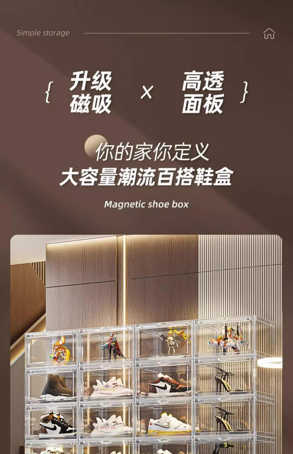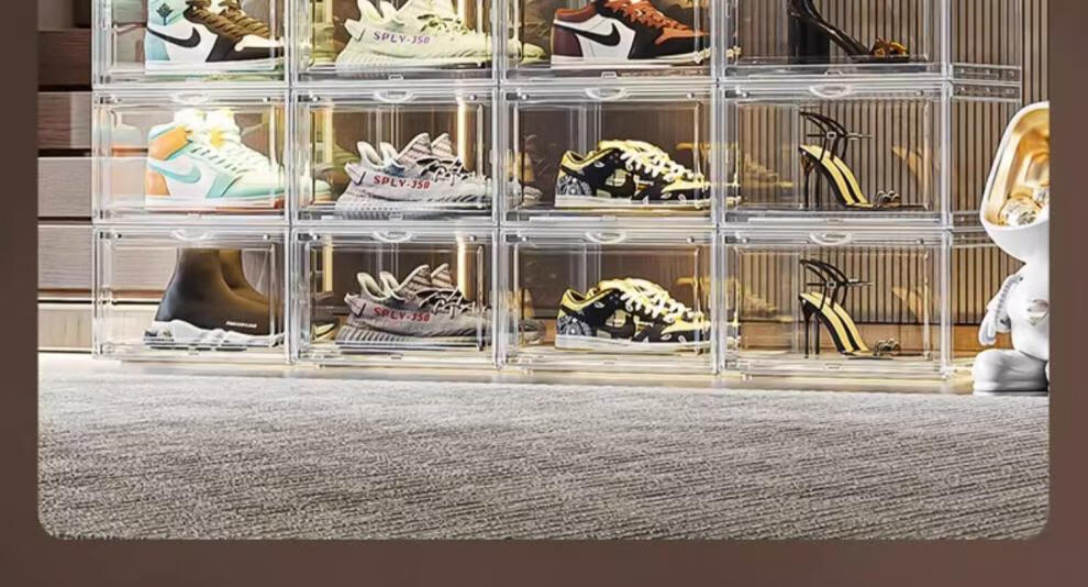 Sailotou transparent acrylic shoe box shoe storage artifact shoe cabinet shoe rack sneaker storage box space-saving drawer-type plastic magnetic side door opening 24 pieces 6-sided high transparency thickened and hard style