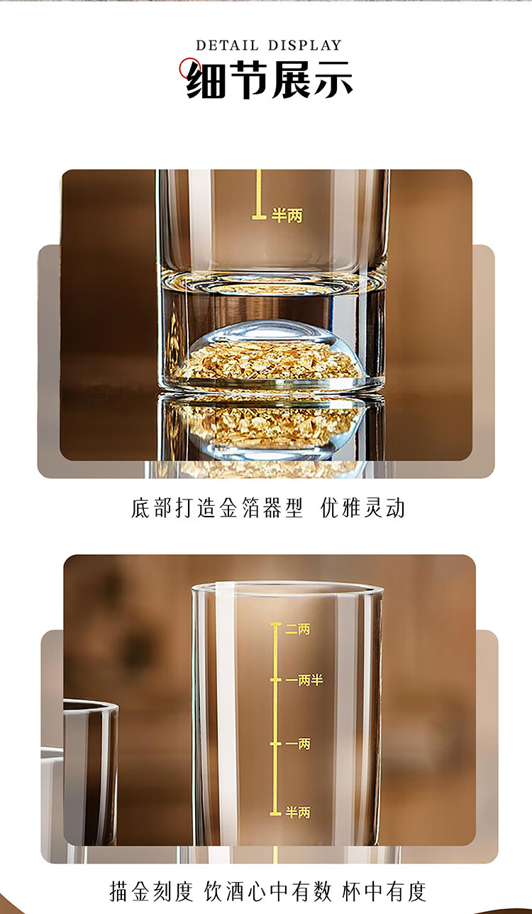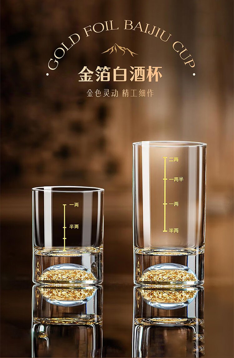Yusenyi Baijiu Cup Two Liang High-value Set Home One Liang High-end Spirit Glass Glass Wine Set Gold Foil One Liang 10 Count/Transparent Texture