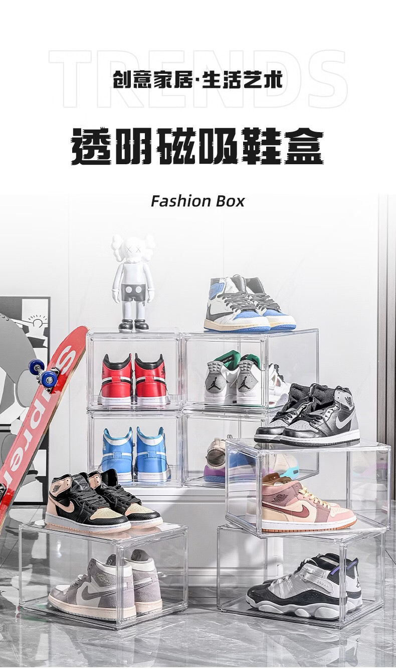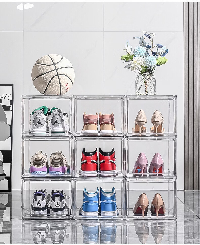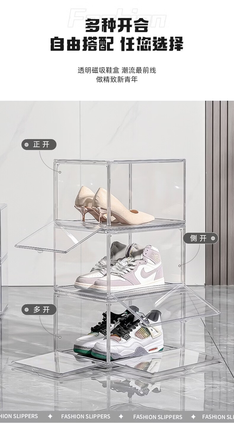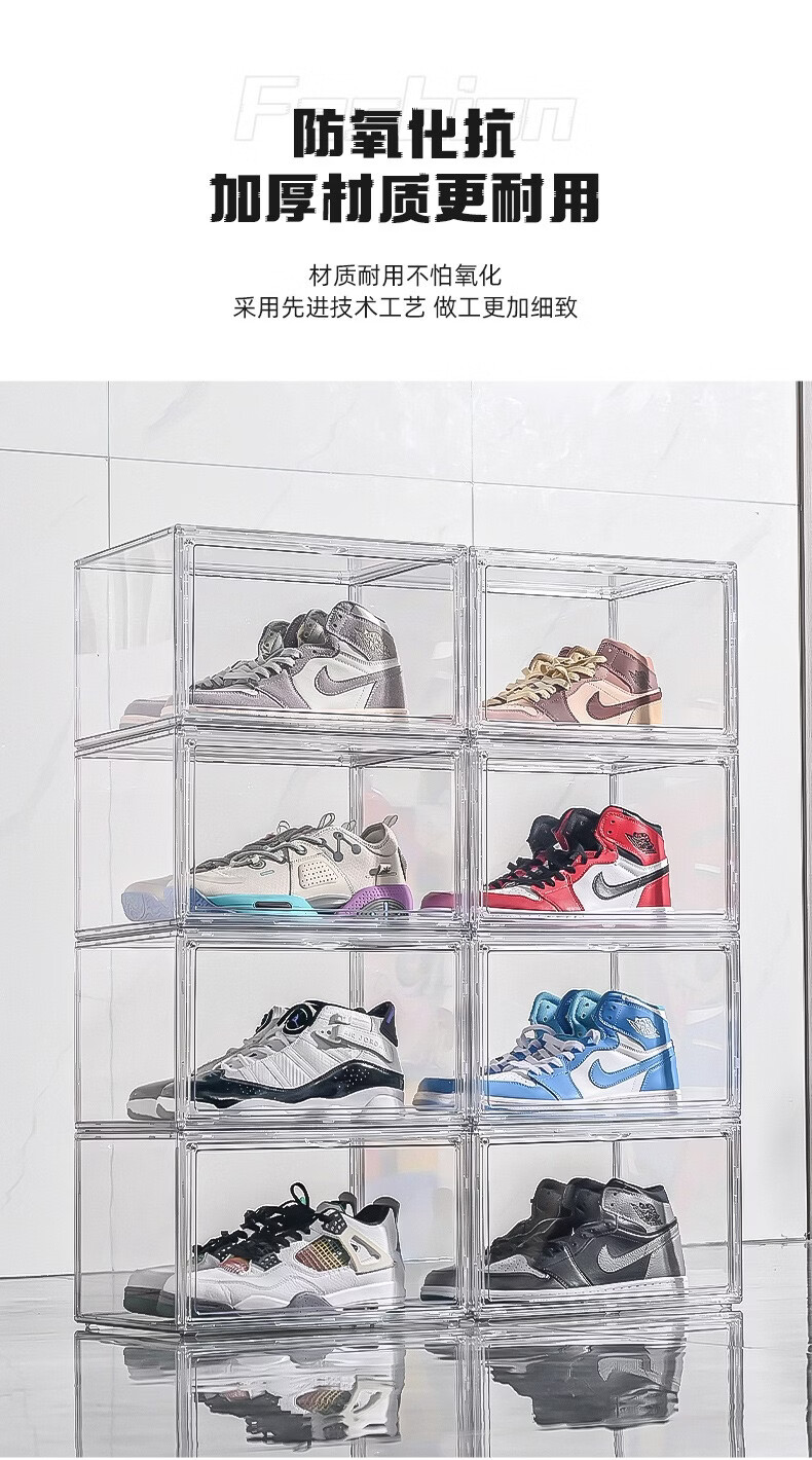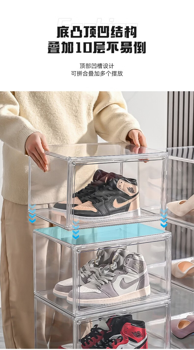 Yusenyi transparent shoe box sneaker storage display box magnetic drawer-type plastic folding shoe cabinet shoe wall 34x26x19cm vertical fully transparent front opening magnetic shoe box 30 pieces