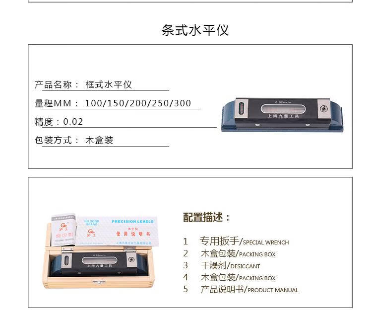 Frame level 300mm high precision 002 fitter Wanyou strip level precision Shaanxi Norton strip level 500 wooden box