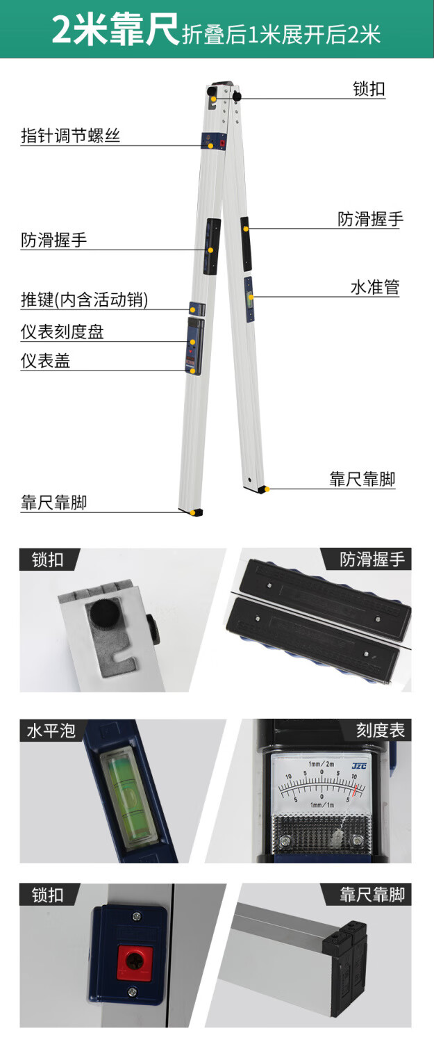 Lean ruler 2 meters folding aluminum alloy digital display detection ruler horizontal ruler portable high-precision building acceptance 3 meters 2 meter ruler set aluminum alloy box