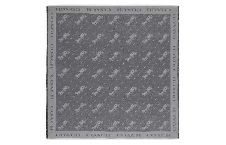 COACH Carriage Pattern Print Wool Scarf Women's Gray Default F