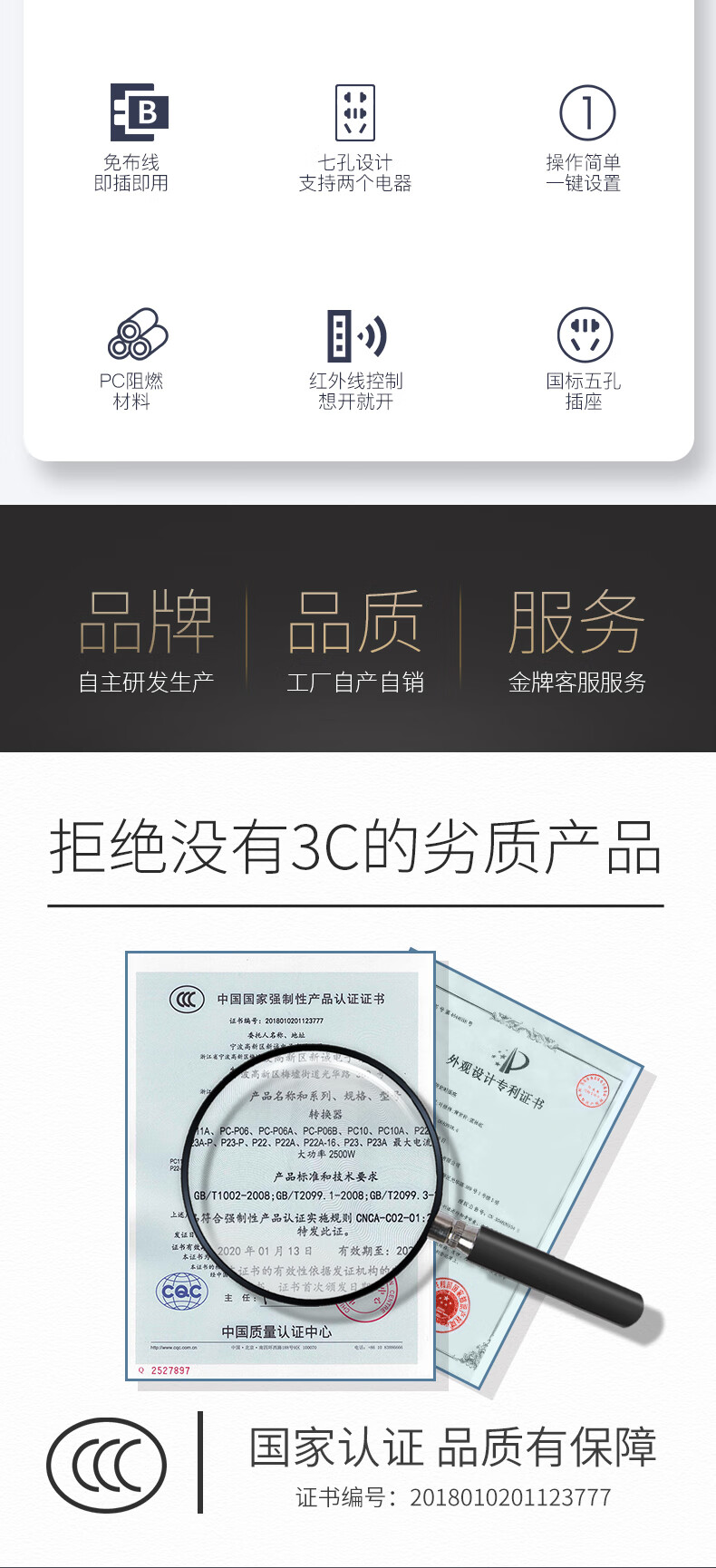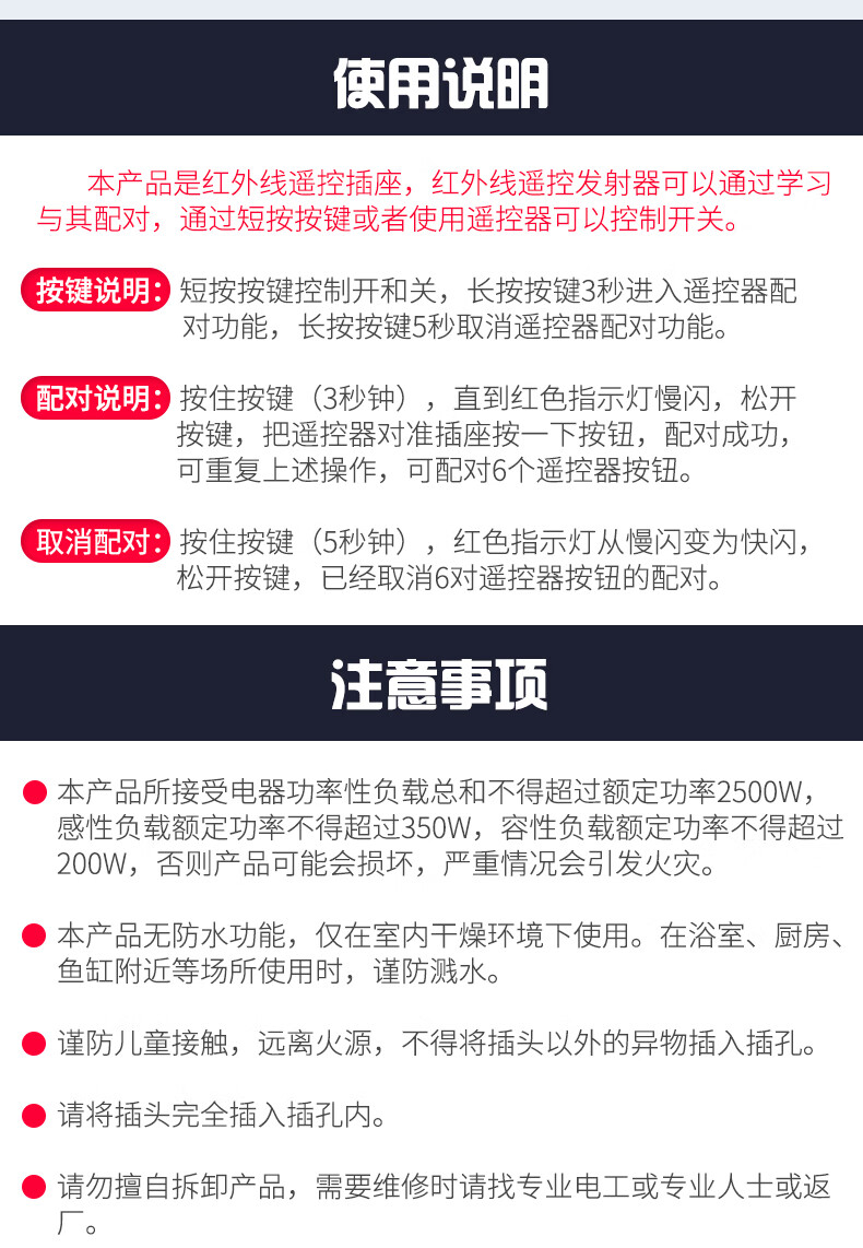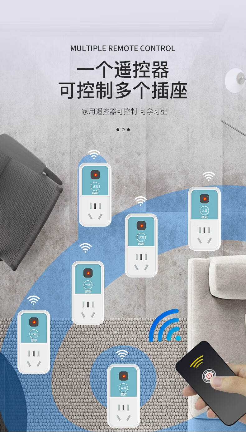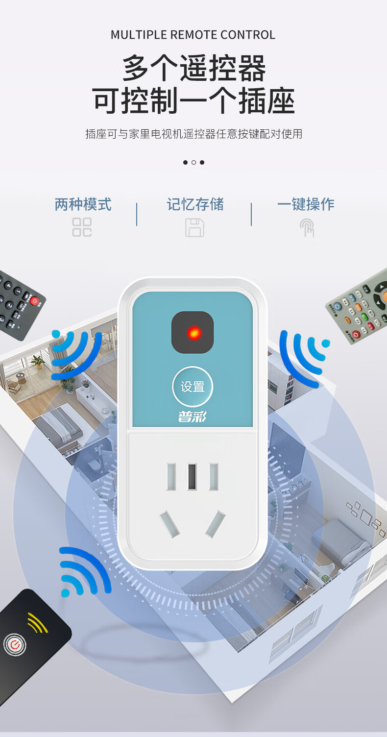 XMSJ infrared remote control switch home learning intelligent 220V power supply fan lamp TV set-top box wireless socket five-hole standard