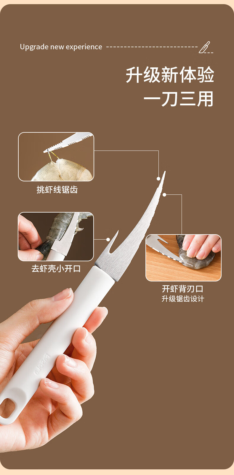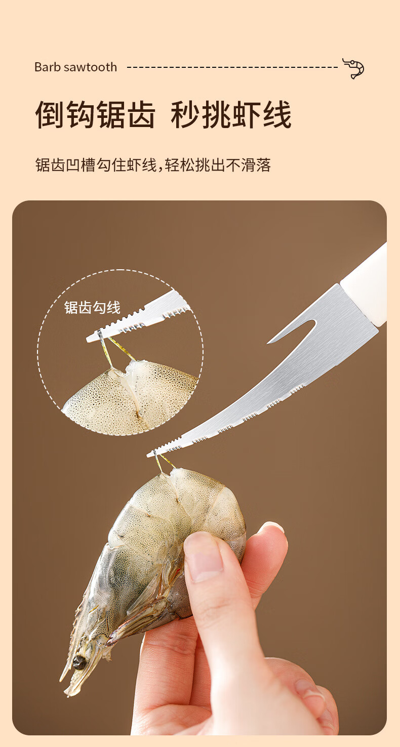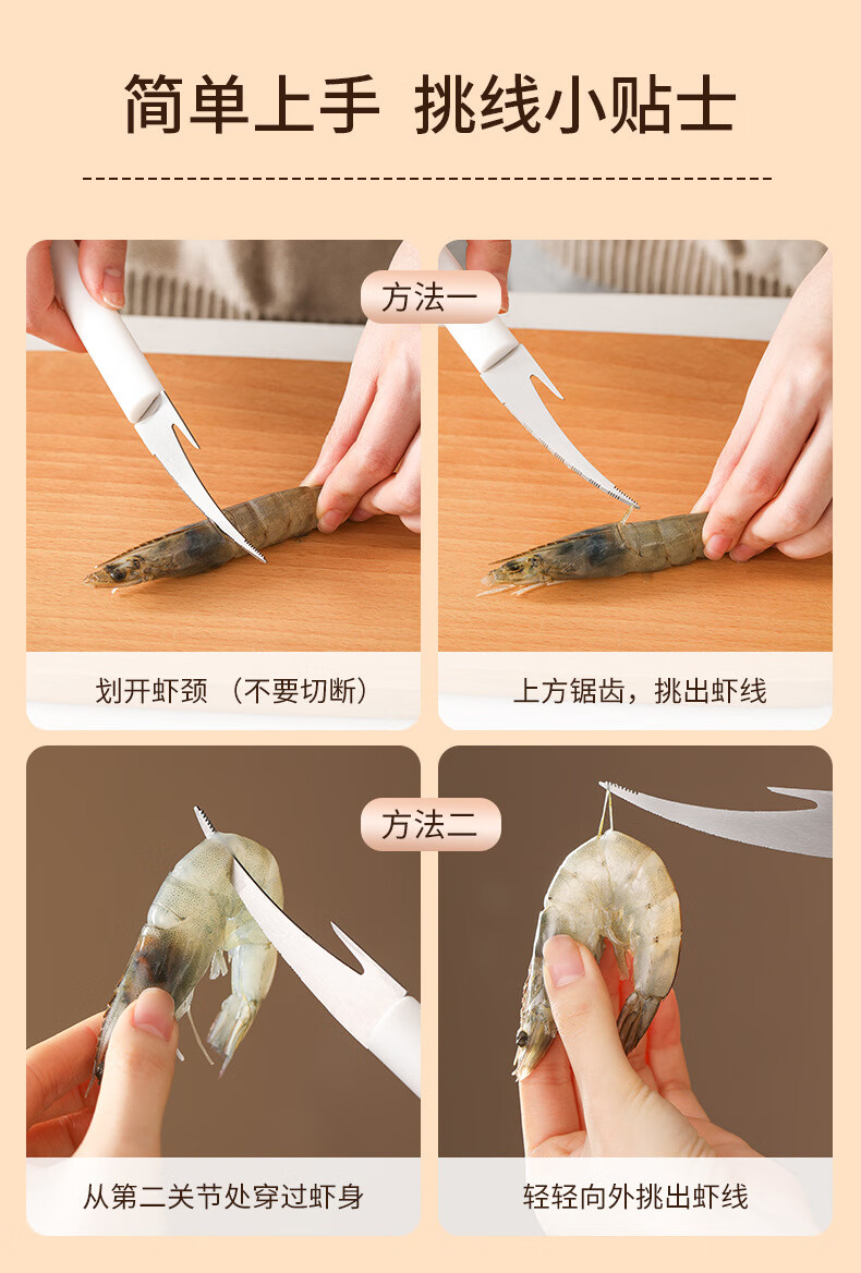 FaSoLa Kitchen Stainless Steel Shrimp Line Knife Multifunctional Shrimp Line Knife Digging Shrimp Stomach Peeling Shrimp Shells Opening Shrimp Back Artifact Shrimp Line Knife White Line Knife White