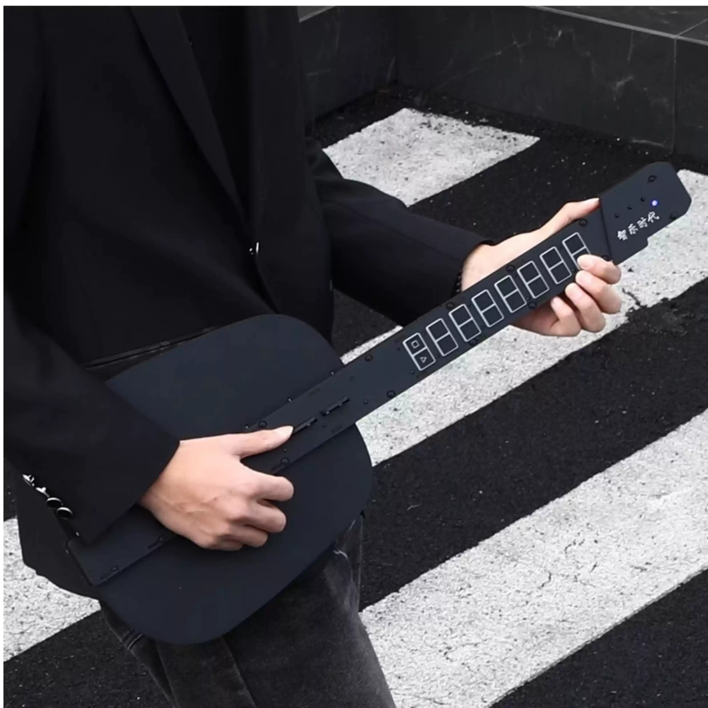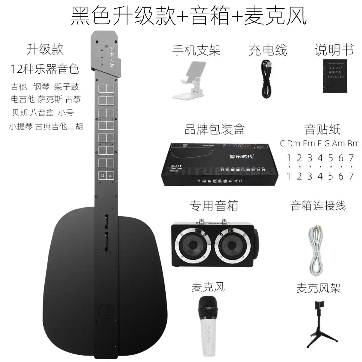 He Jiagong Intelligent Stringless Guitar Automatic Hand-stopping Beginner Electronic Playing and Singing Guitar for Beginners Black Upgraded Model 12 Instrument Tone + Speaker
