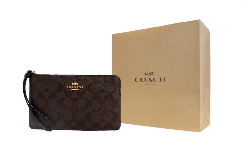COACH Corner Zip Wristle Logo Logo zipper closure Coated canvas and recycled leather Hand-held gift box (basic + yellow counter gift box) Default