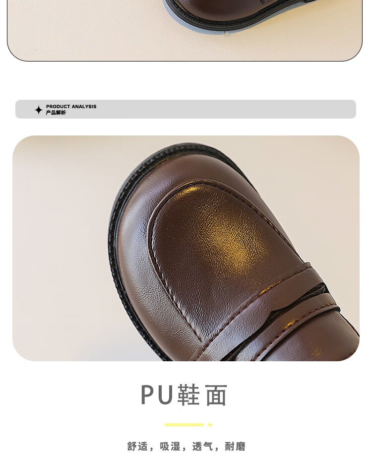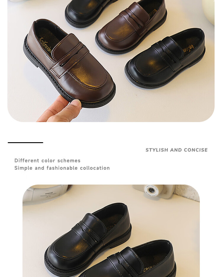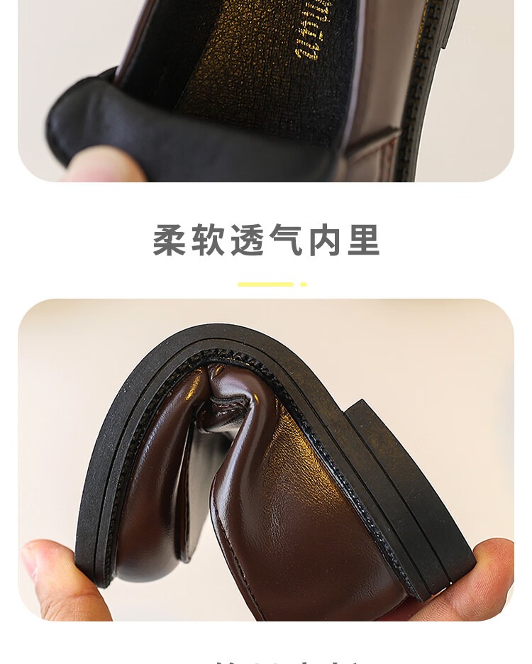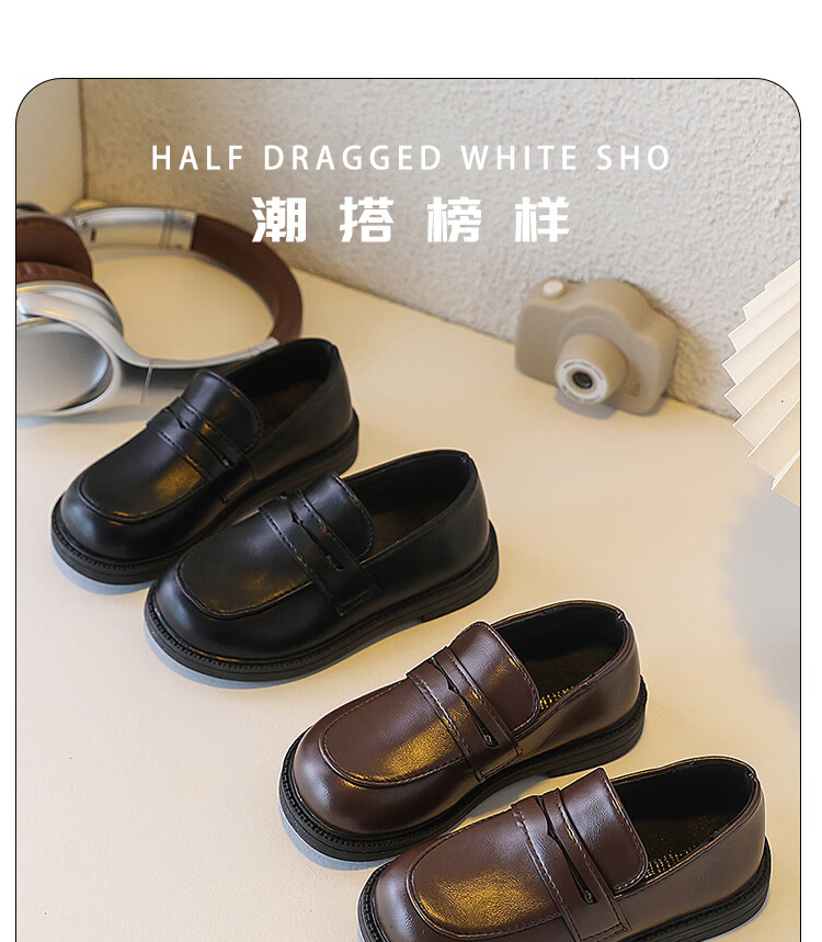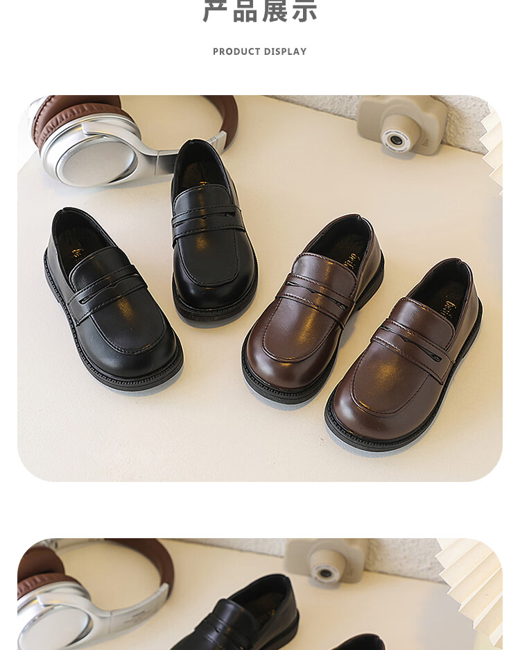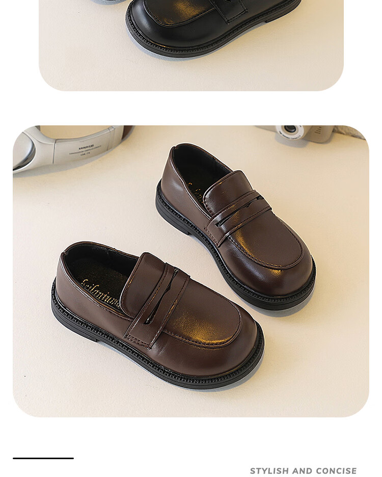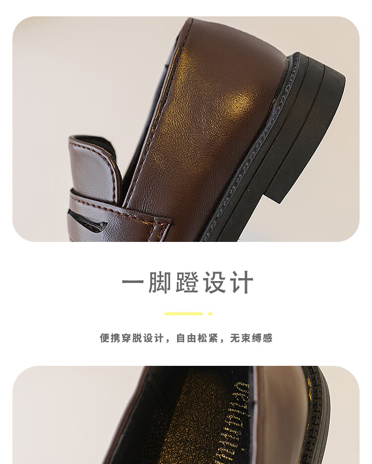 Children's British Leather Shoes 2025 Spring and Autumn New Korean Style Boys Black Versatile Girls Retro Slip-on Casual Shoes Black 32 Inner Length 19cm