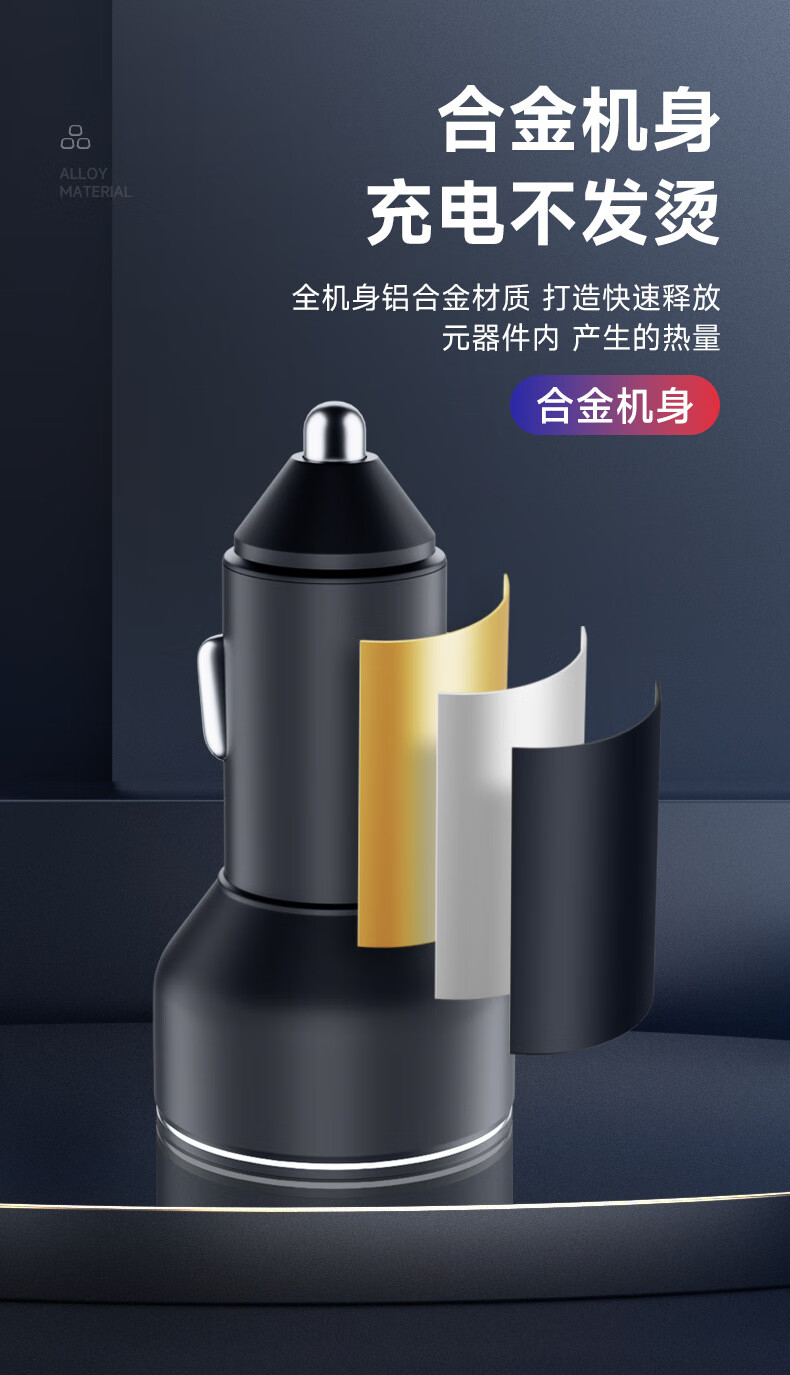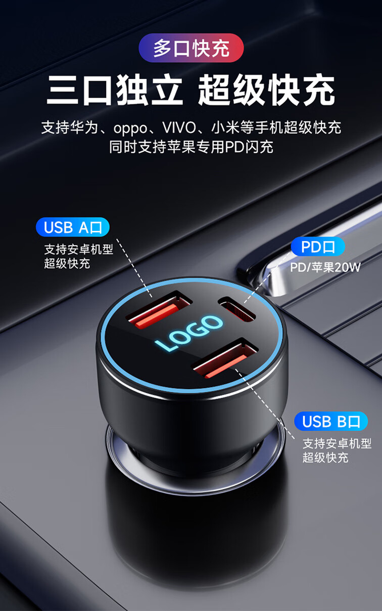 Suitable for Lynk & Co car charger 03/02/01/05/06 5A cigarette lighter conversion plug usb fast charging Lynk & Co-frosted silver four-port fast charging 400W+ cable