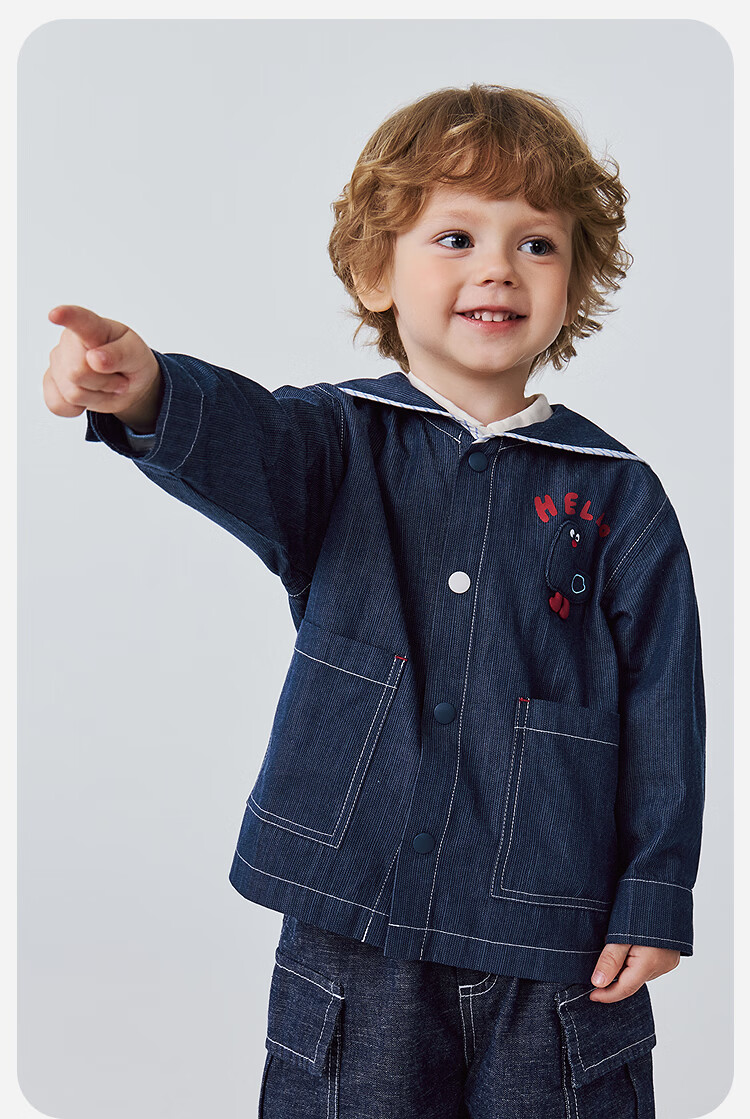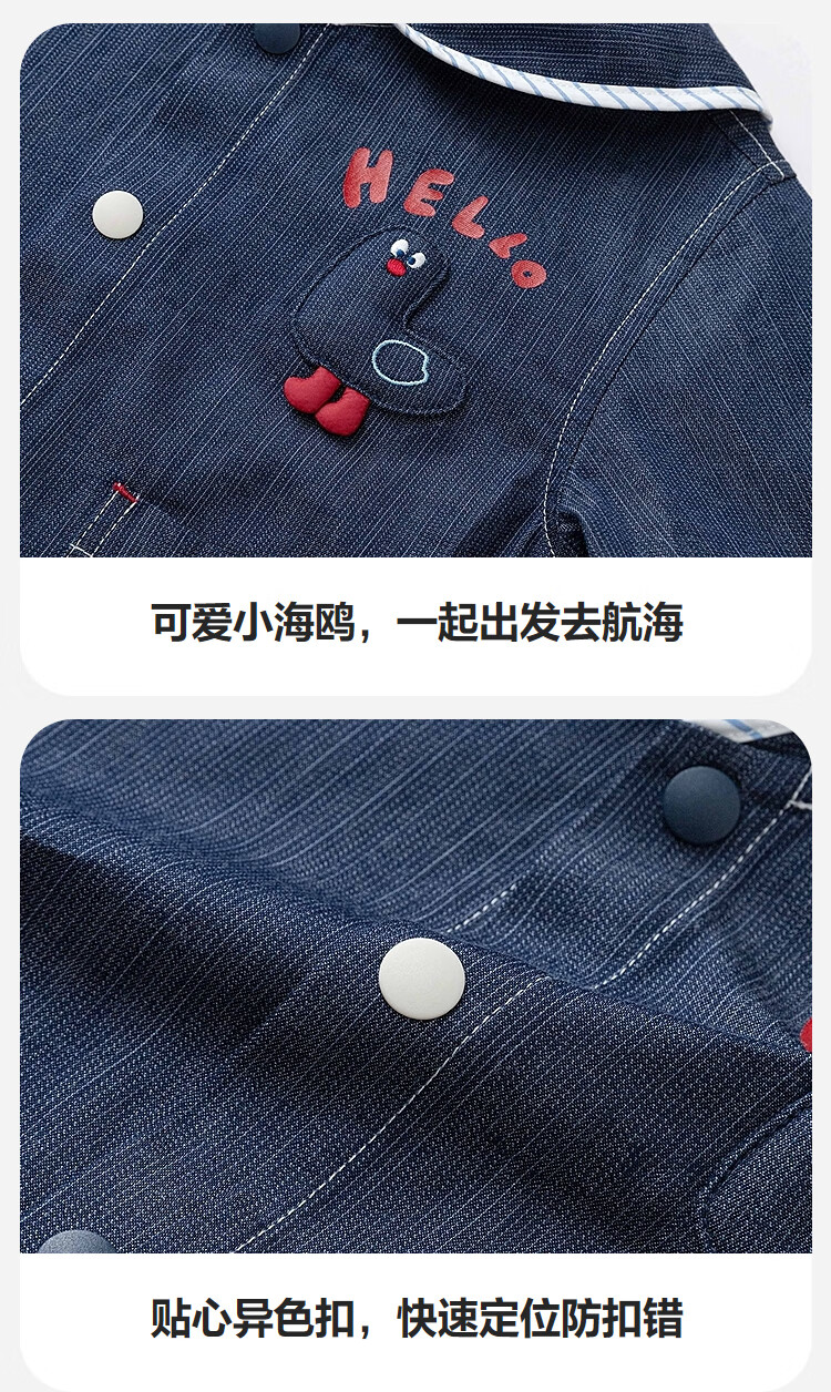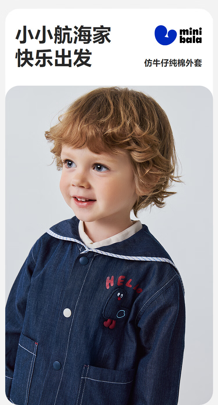 Minibala imitation denim jacket for boys and girls baby cotton cute nautical style outerwear spring 2026 denim dark blue 88301 110