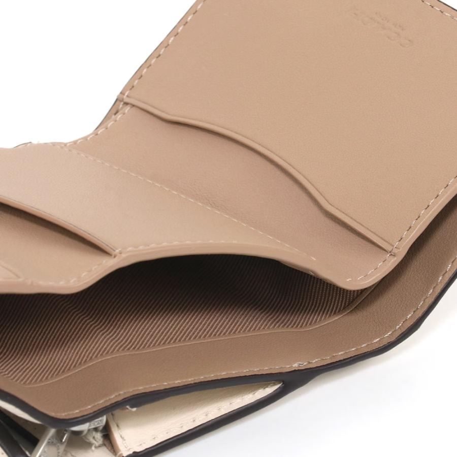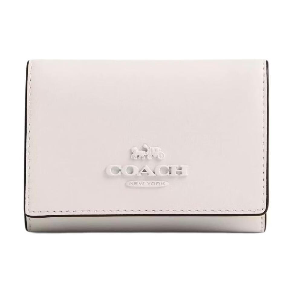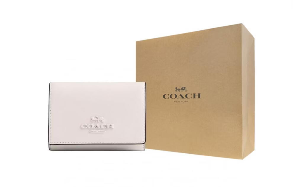 COACH Micro 10 Logo Logo snap closure Exquisite calfskin wallet Mini Women's silver patchwork gift box (basic + yellow counter gift box) Default