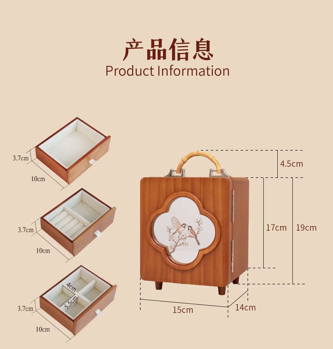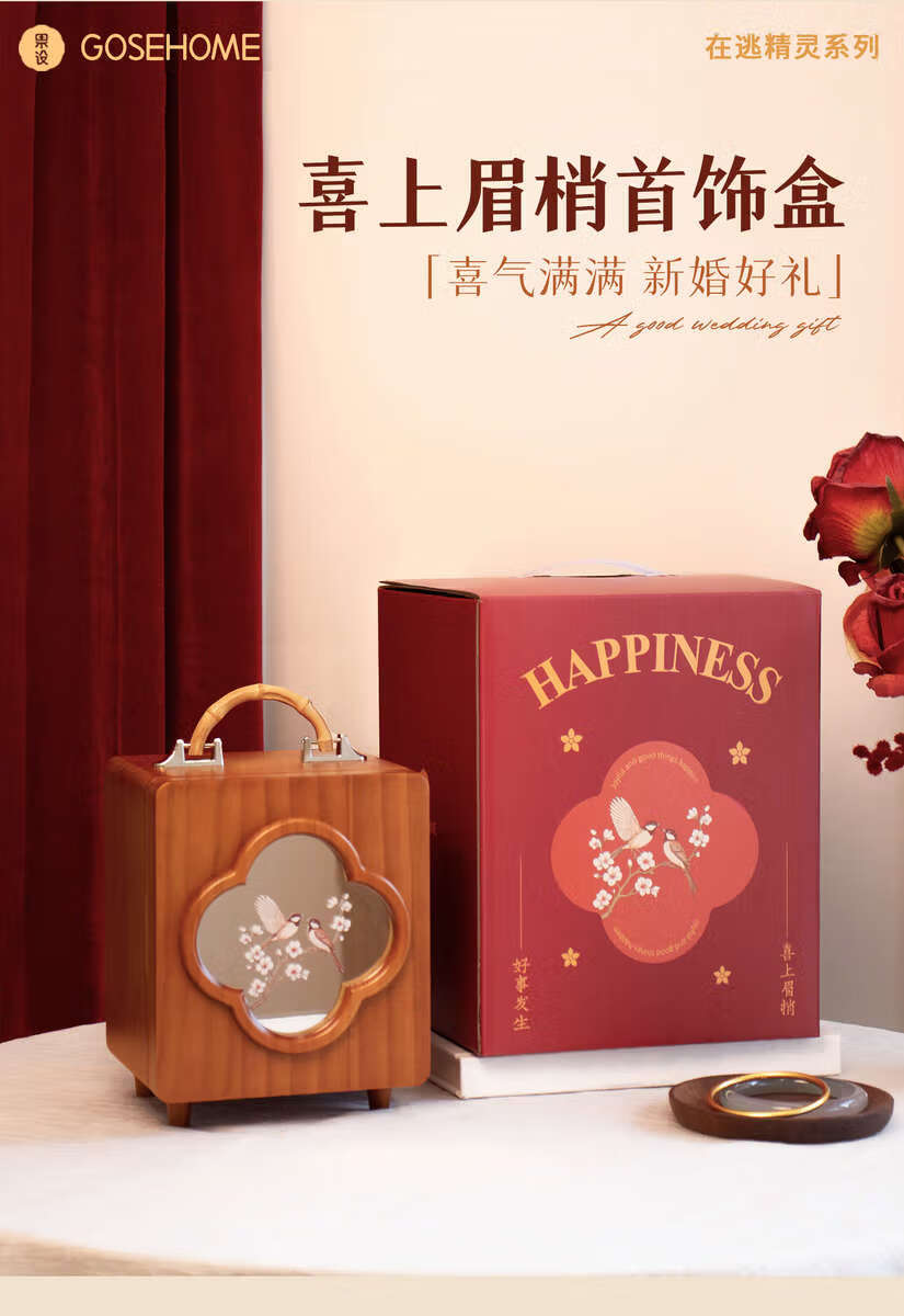 Yusen Yiguo jewelry storage box wedding gift birthday wedding gift high-end exquisite jewelry box happy eyebrow + jewelry box red gift box