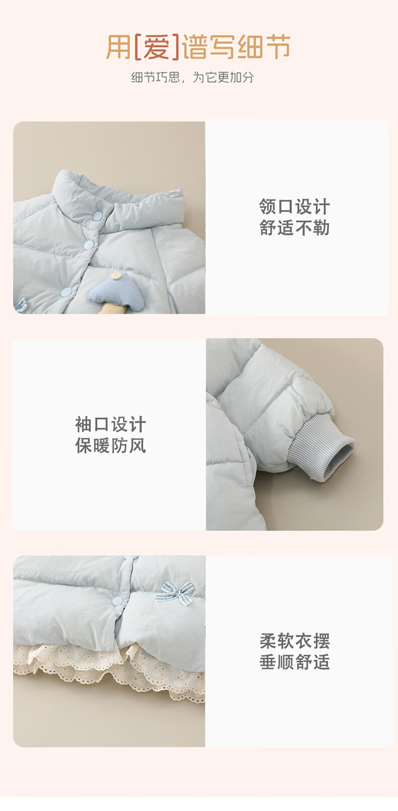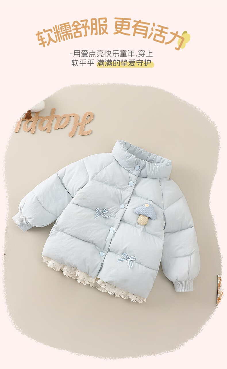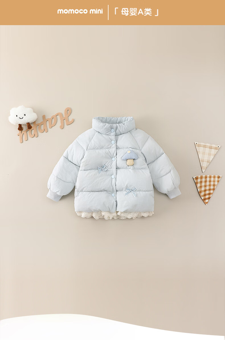Mami Maka (MOMOCO) children's clothing girls' down jacket 2025 winter baby cute little mushroom down jacket blue 100