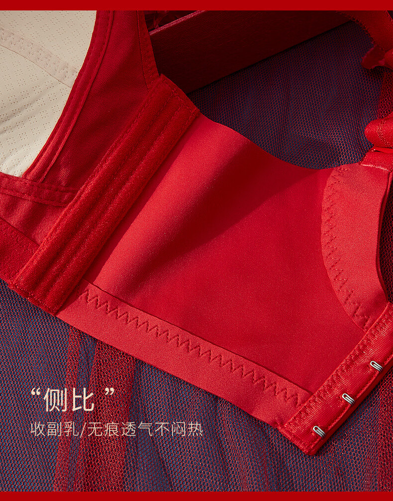 Chinami Lace Thin Latex Inner Cup Large Size Wireless Adjustable Breast Reduction Bra Underwear Modi Blue 80E