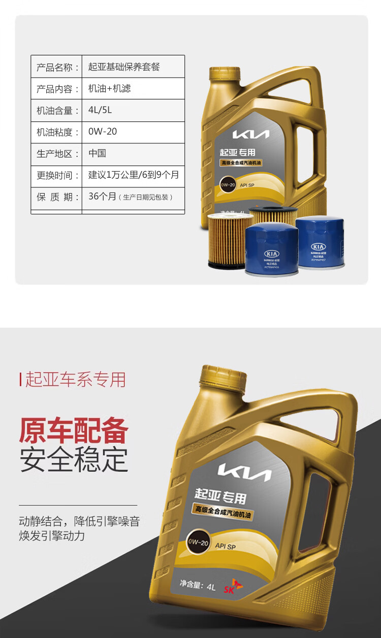 Kia basic maintenance package (oil and filter) 3 maintenance including working hours Cerato 2005-2012 (1.6L/1.8L) filter 456 + oil 4L