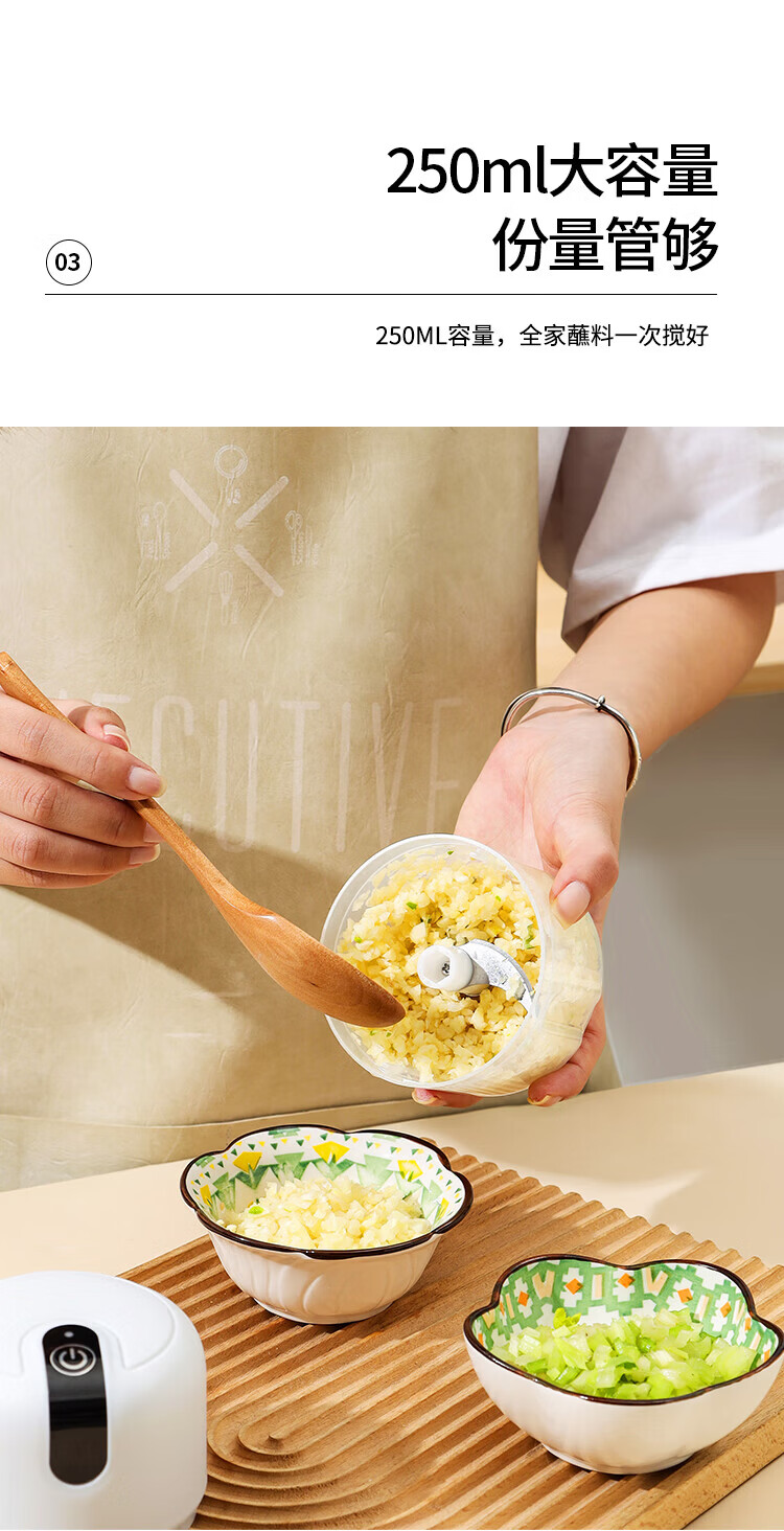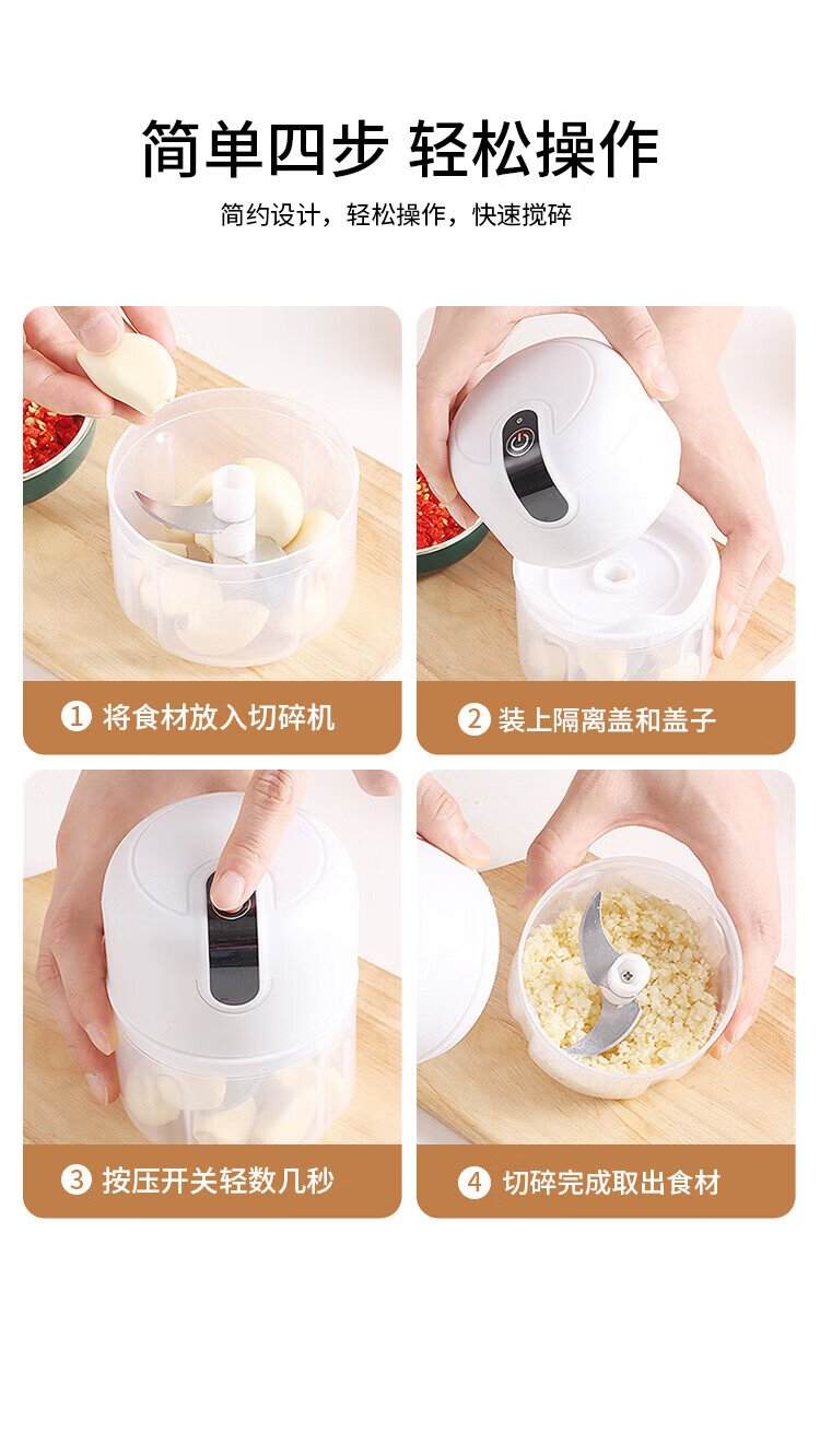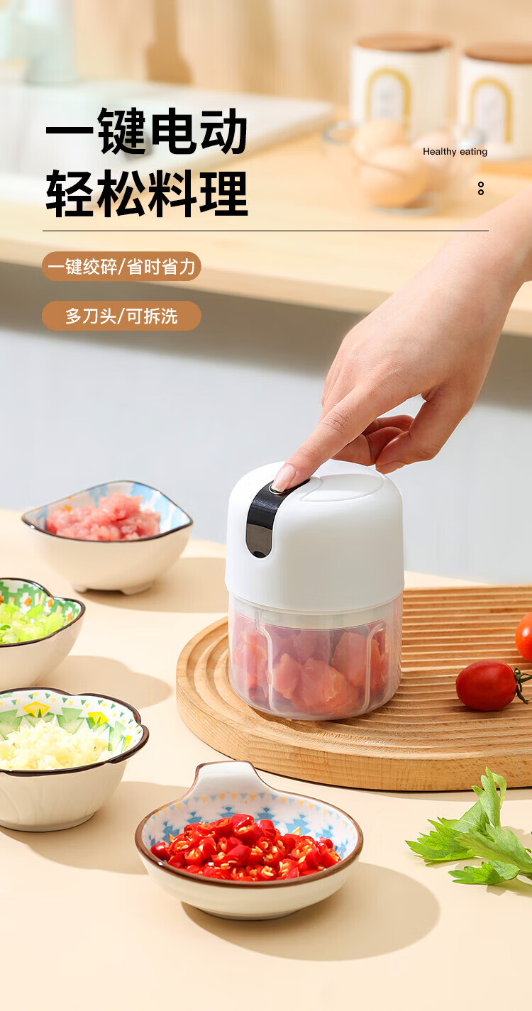 Xiaomi white electric garlic masher, garlic masher, garlic mincer, garlic press, stuffing and vegetable mincing machine, meat stuffing and mincing machine, upgraded version