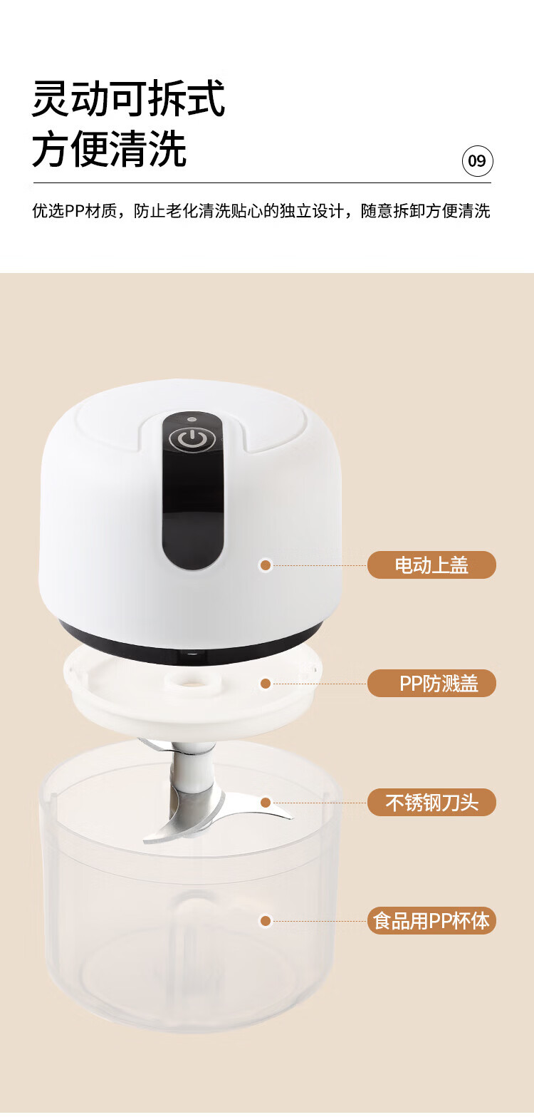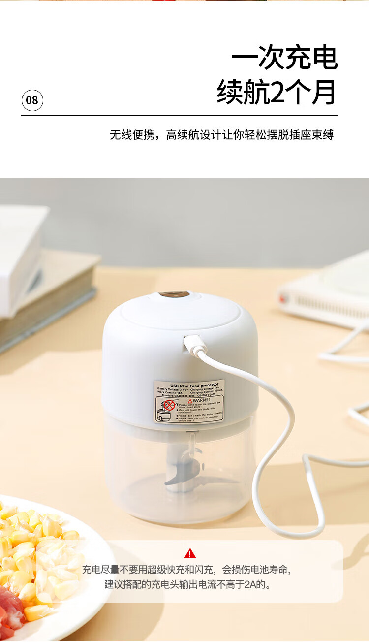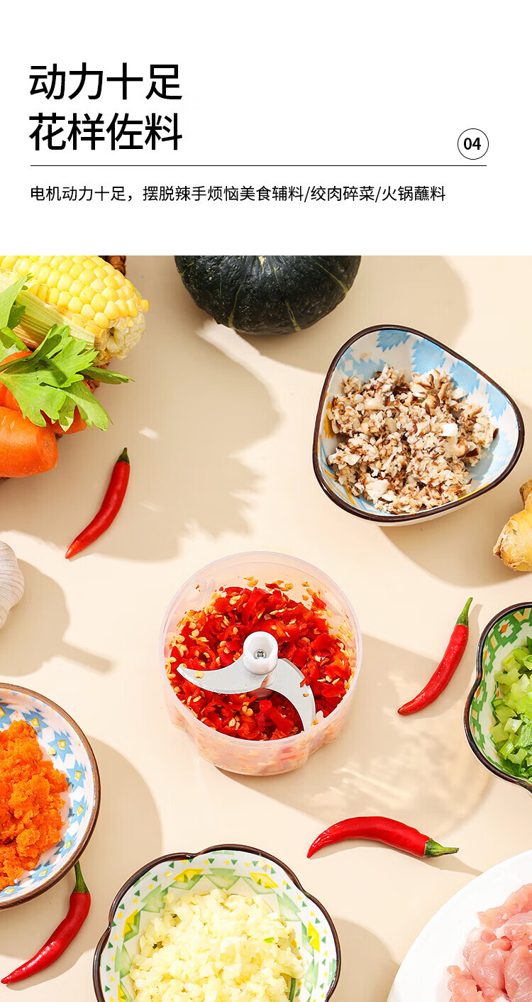 Xiaomi white electric garlic masher, garlic masher, garlic mincer, garlic press, stuffing and vegetable mincing machine, meat stuffing and mincing machine, upgraded version