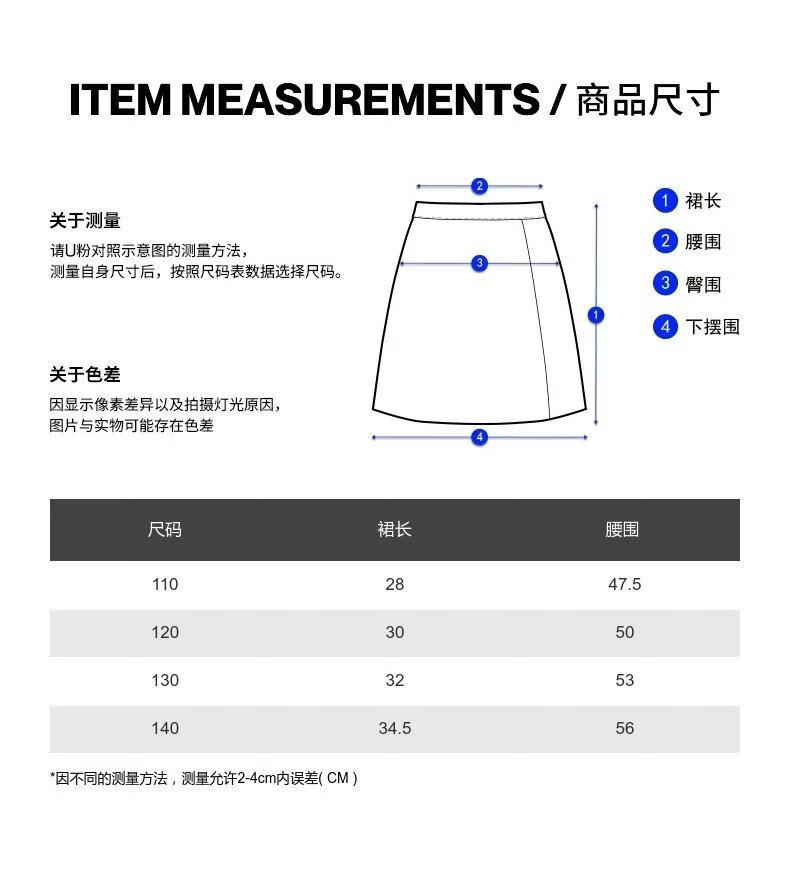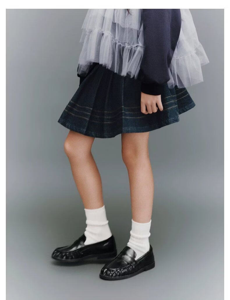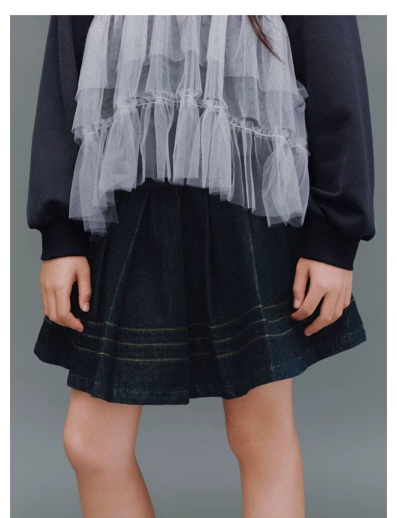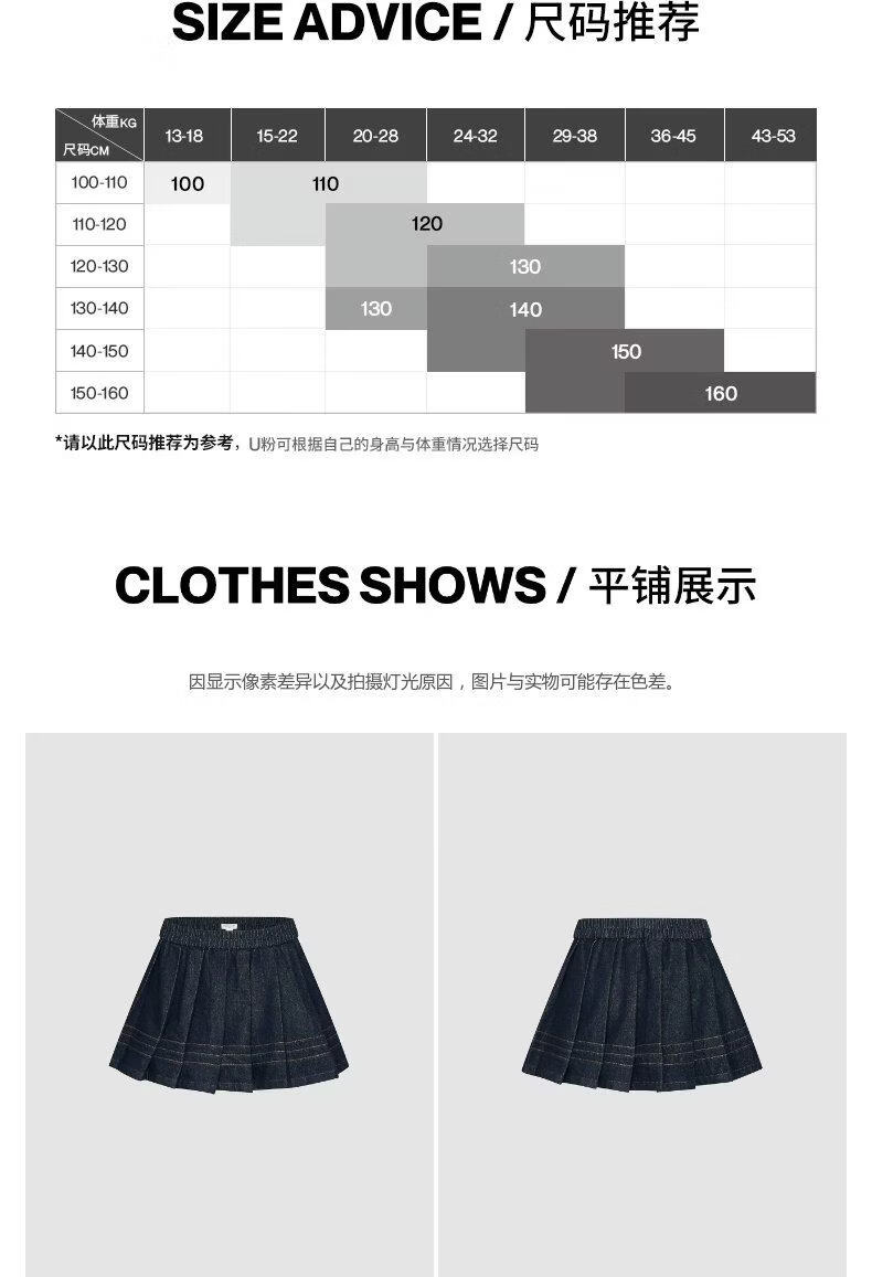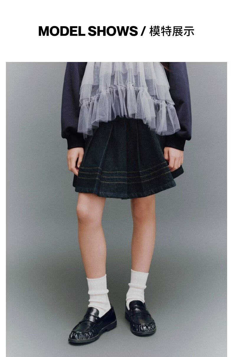 UR2026 Spring New Children's Clothing Girls Casual Elastic Waist Pleated Denim Skirt UGH860002 Indigo 110