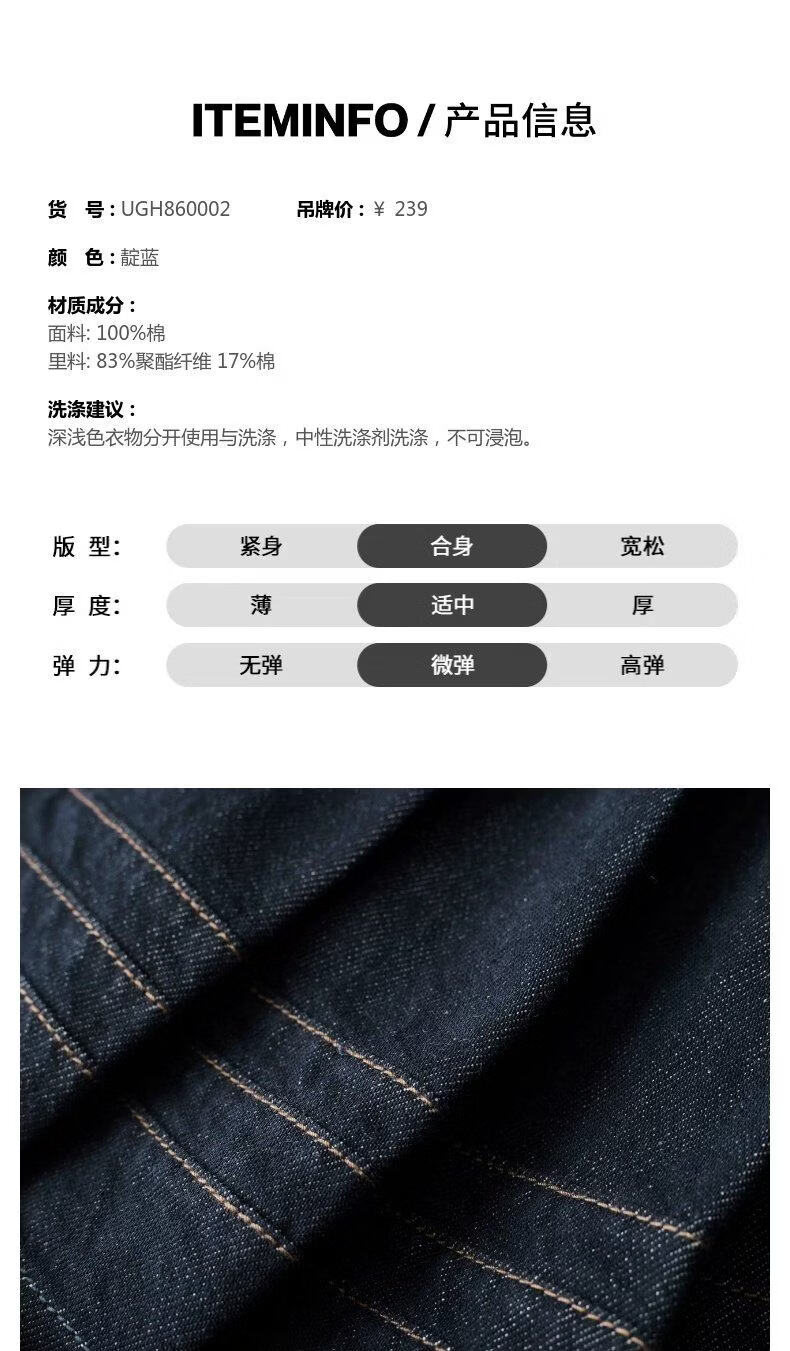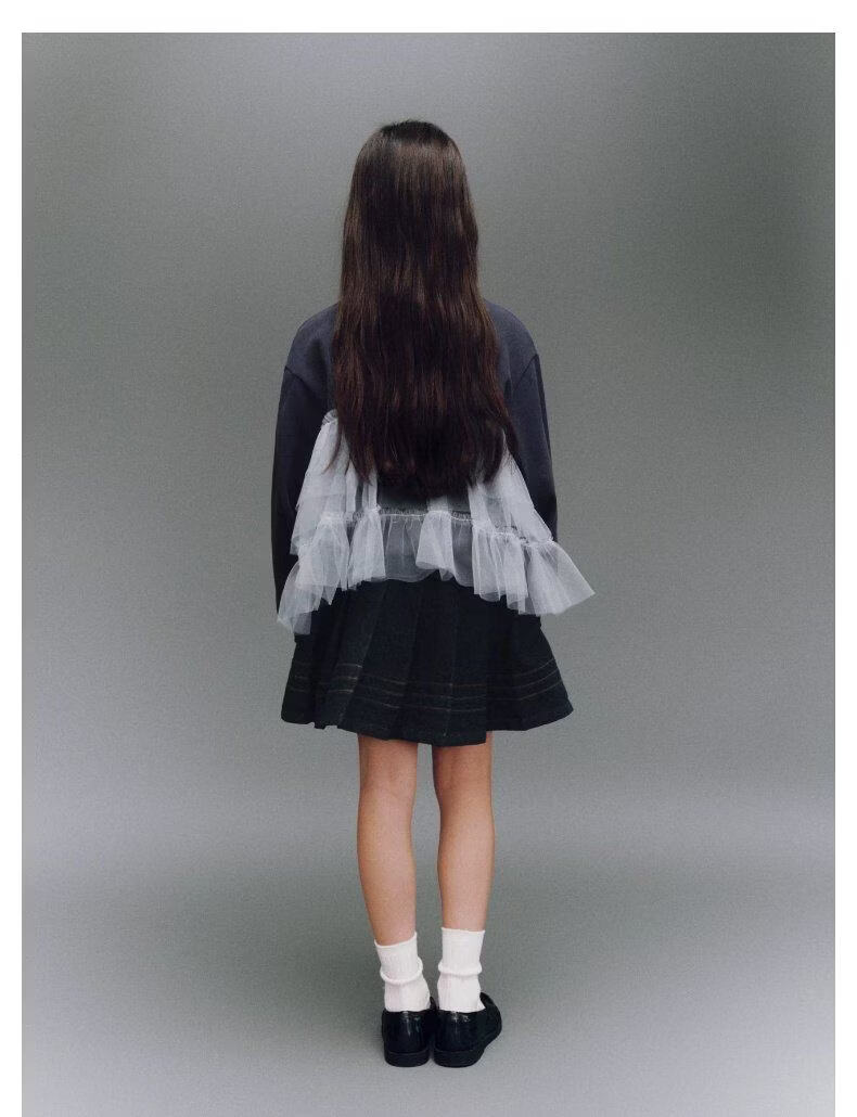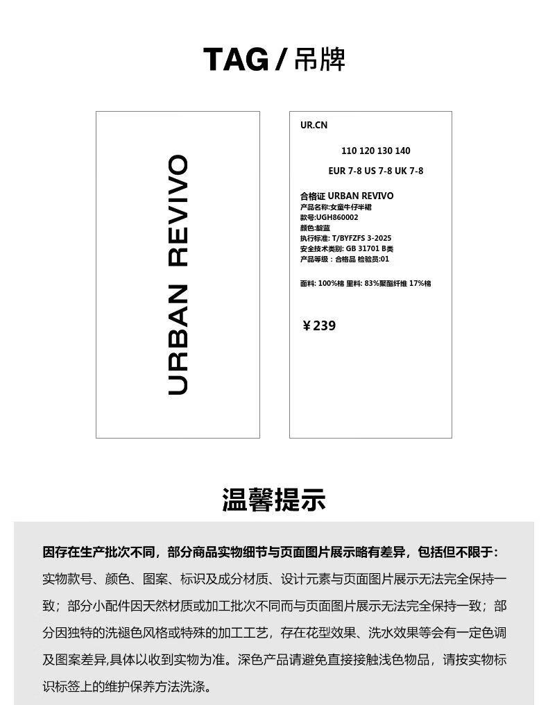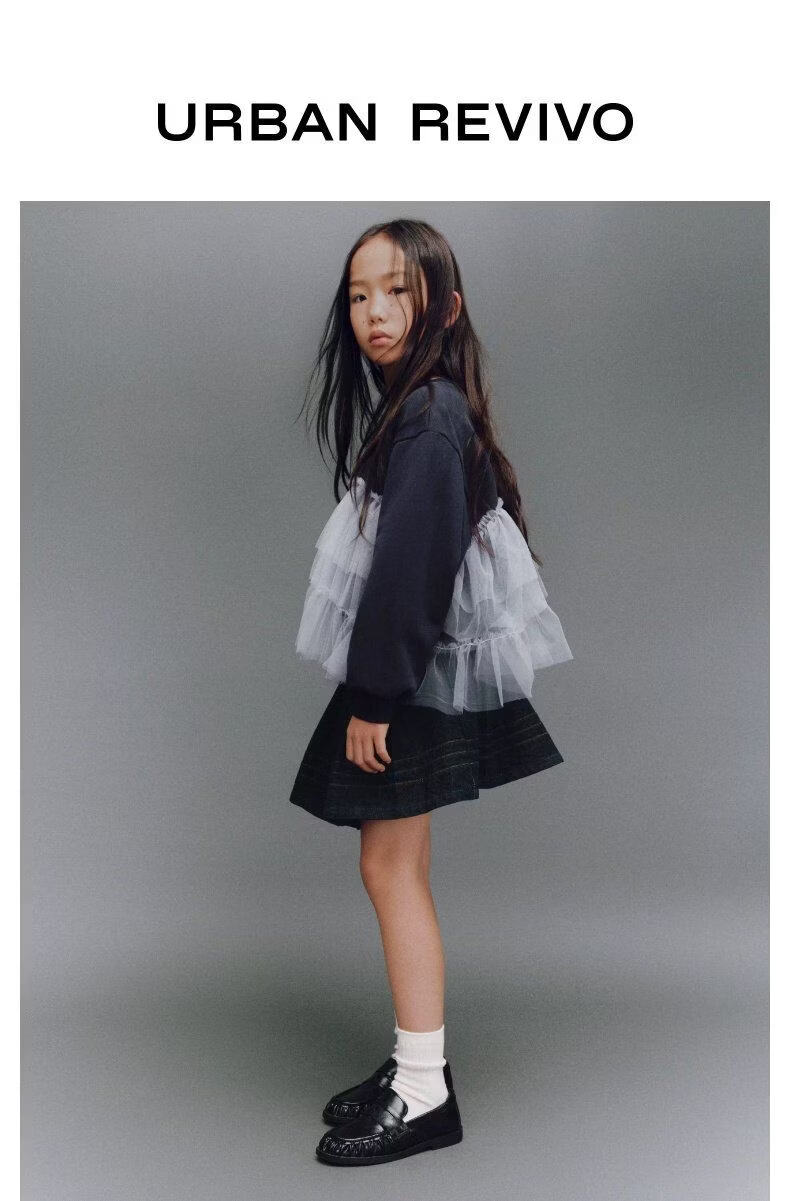 UR2026 Spring New Children's Clothing Girls Casual Elastic Waist Pleated Denim Skirt UGH860002 Indigo 110