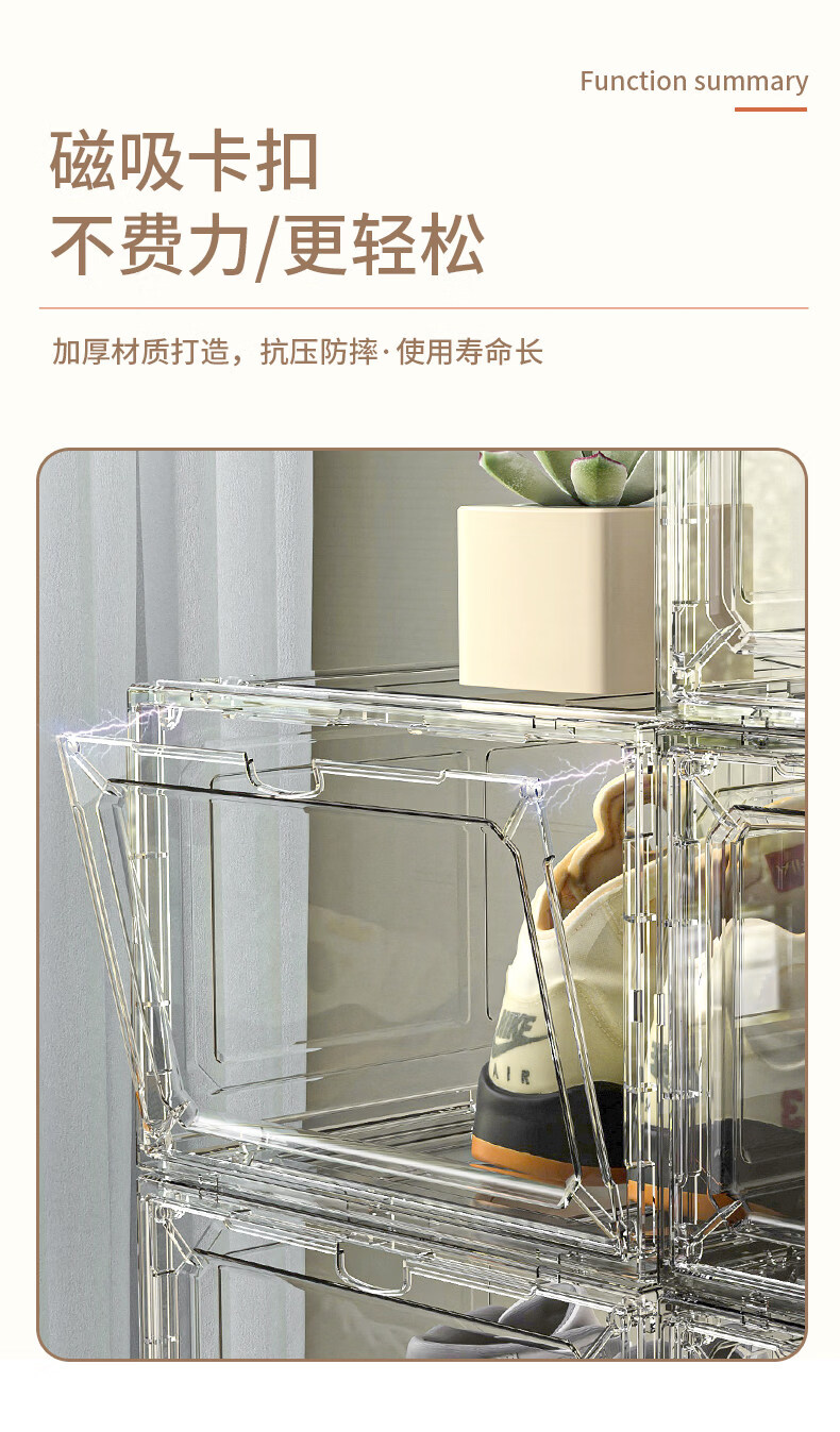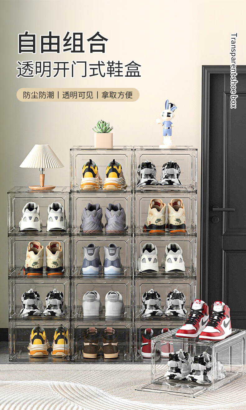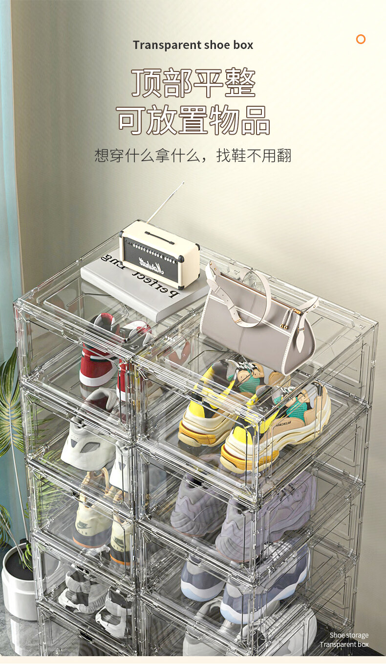 Thickened shoe box storage box magnetic hard plastic flip-top anti-oxidation and dust-proof transparent shoe box shoe rack sneaker cabinet, transparent white 20 pieces, independent back door, front opening double magnetic suction, can be installed under size 47, 34x27x18.5cm