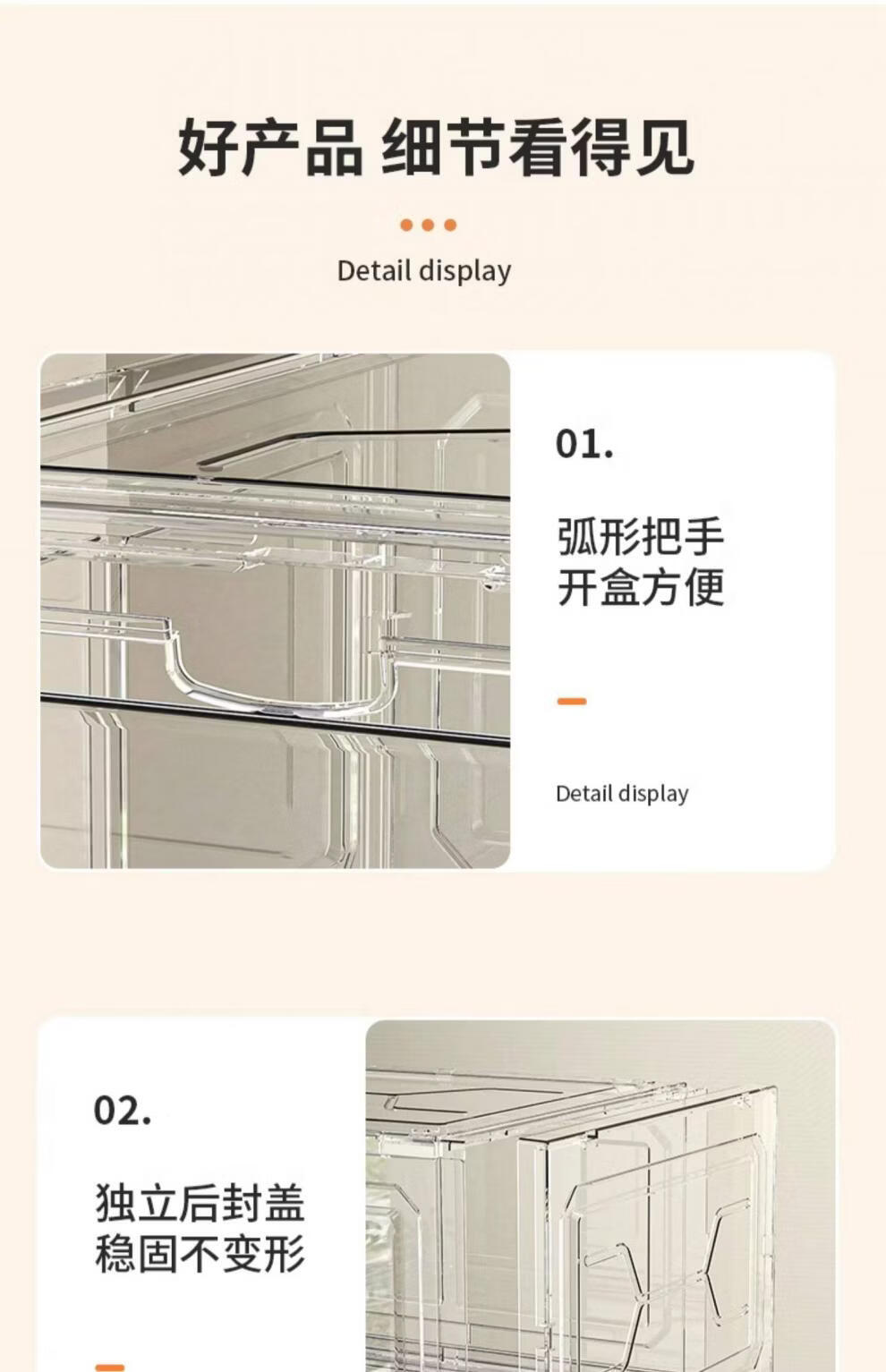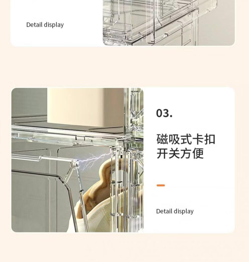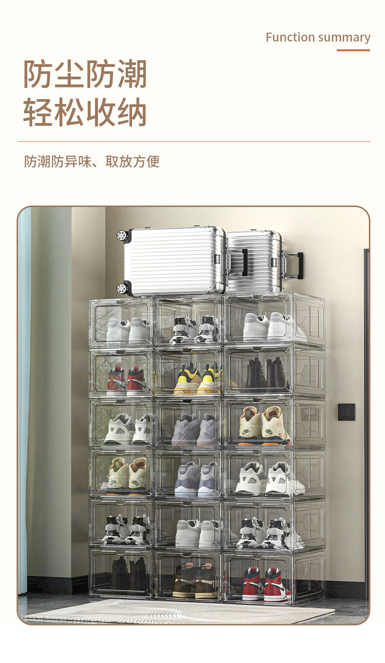Thickened shoe box storage box magnetic hard plastic flip-top anti-oxidation and dust-proof transparent shoe box shoe rack sneaker cabinet, transparent white 20 pieces, independent back door, front opening double magnetic suction, can be installed under size 47, 34x27x18.5cm