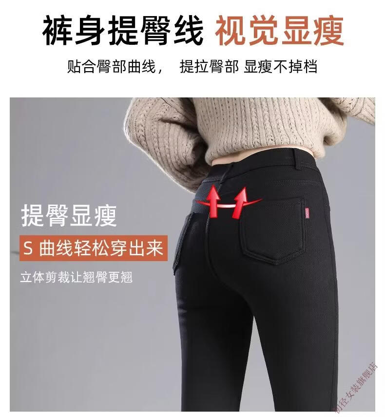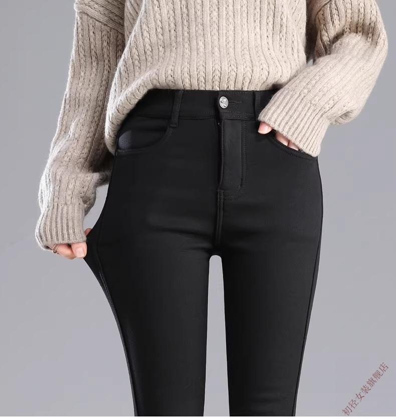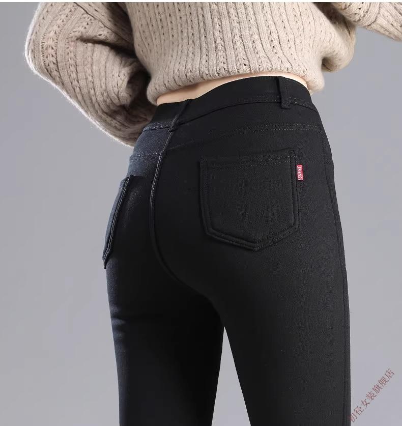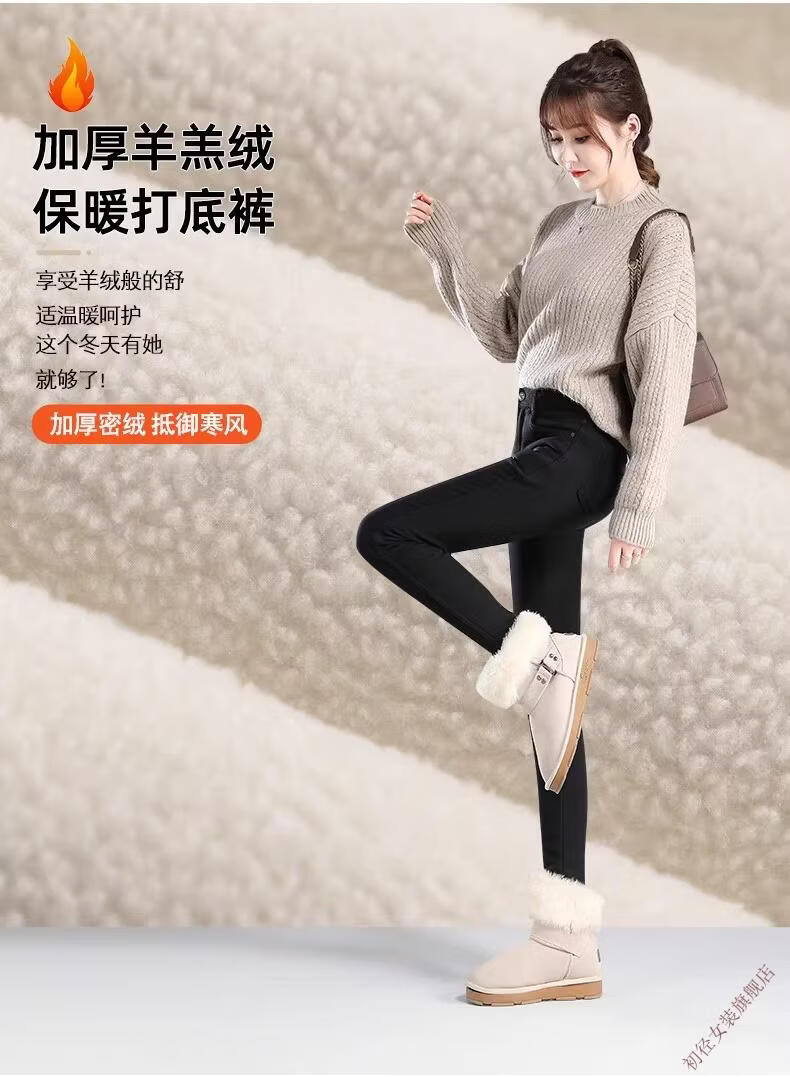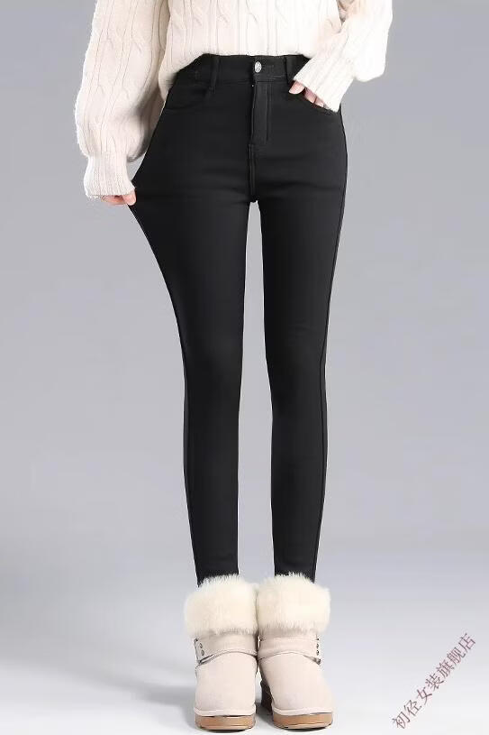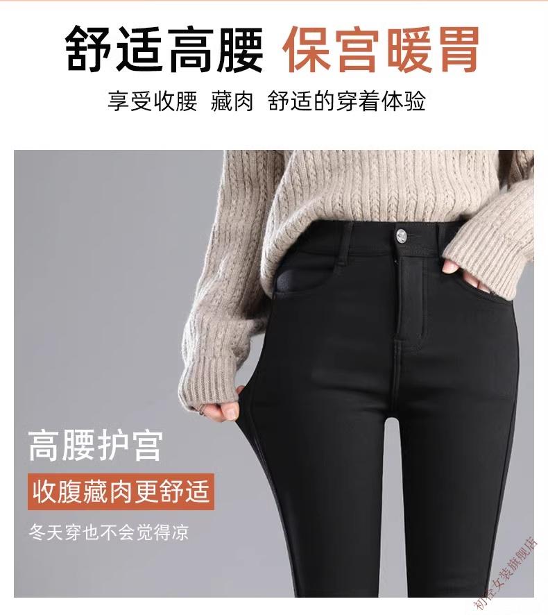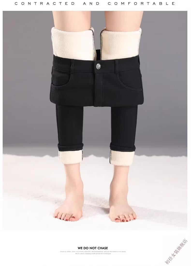 First diameter outer wear leggings for women 2026 new autumn and winter plus velvet pants for women with small feet, black thickened lamb velvet small black cotton pants, lamb velvet black trousers - button waist, no snagging, S size (weight suitable for 86-95 Jin Jin is equal to 0.5 kg)