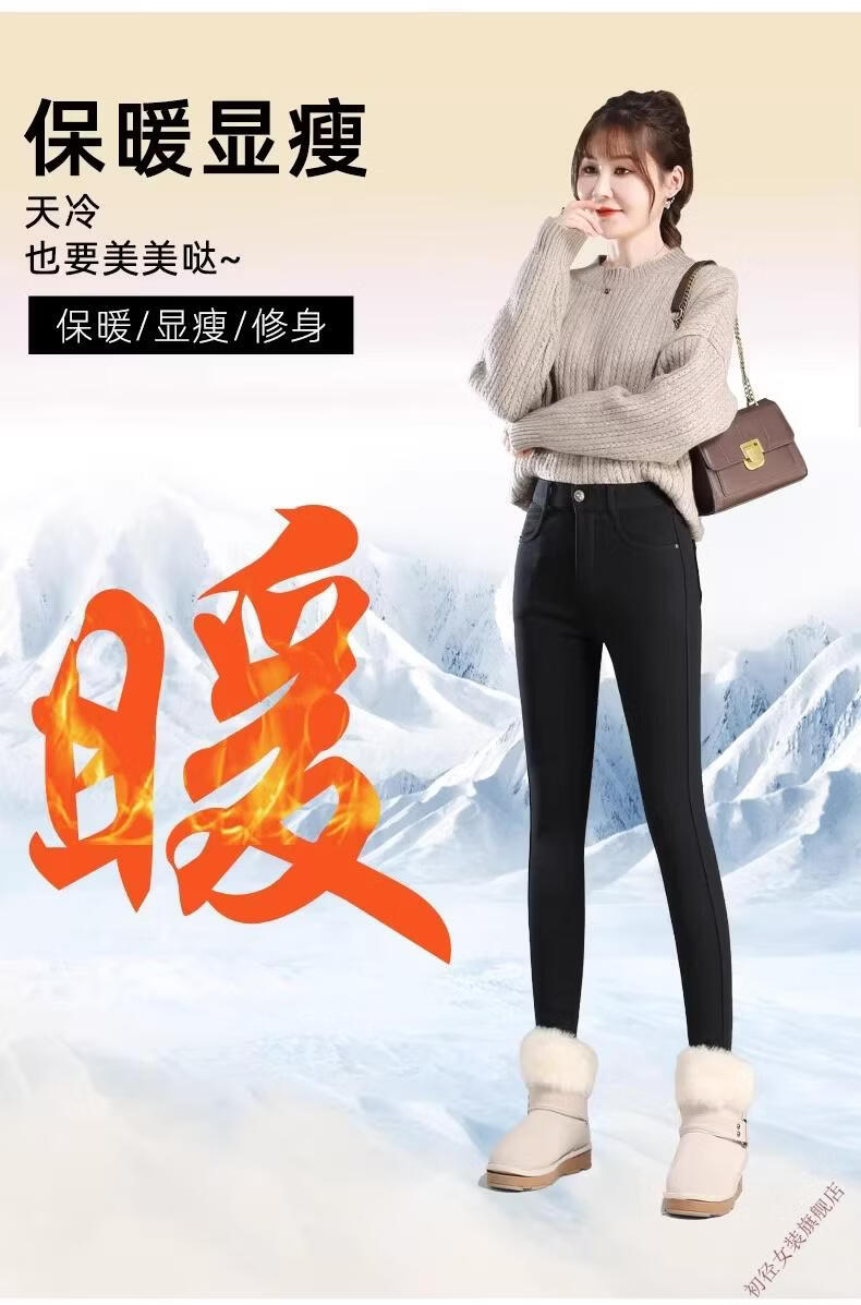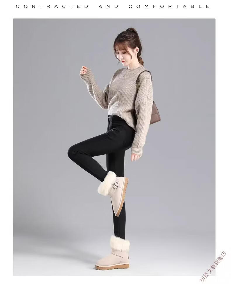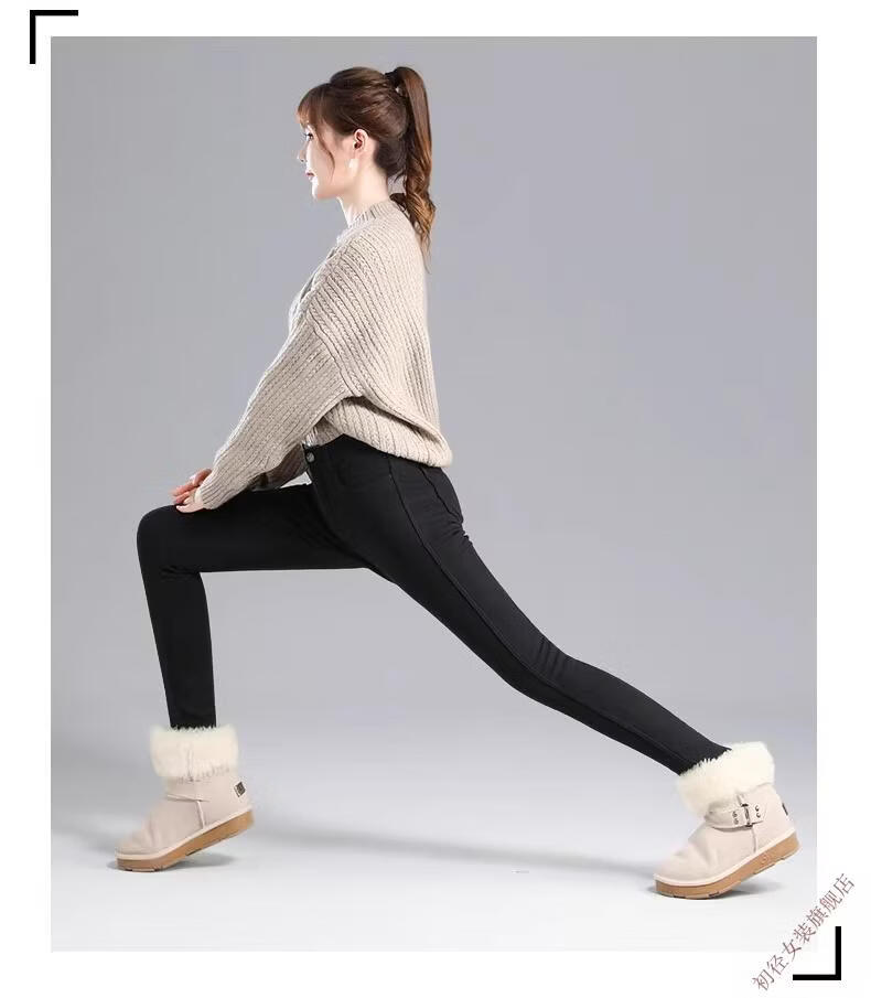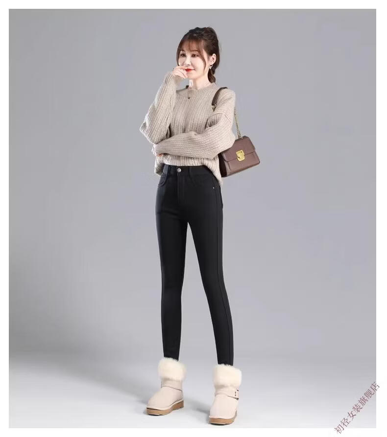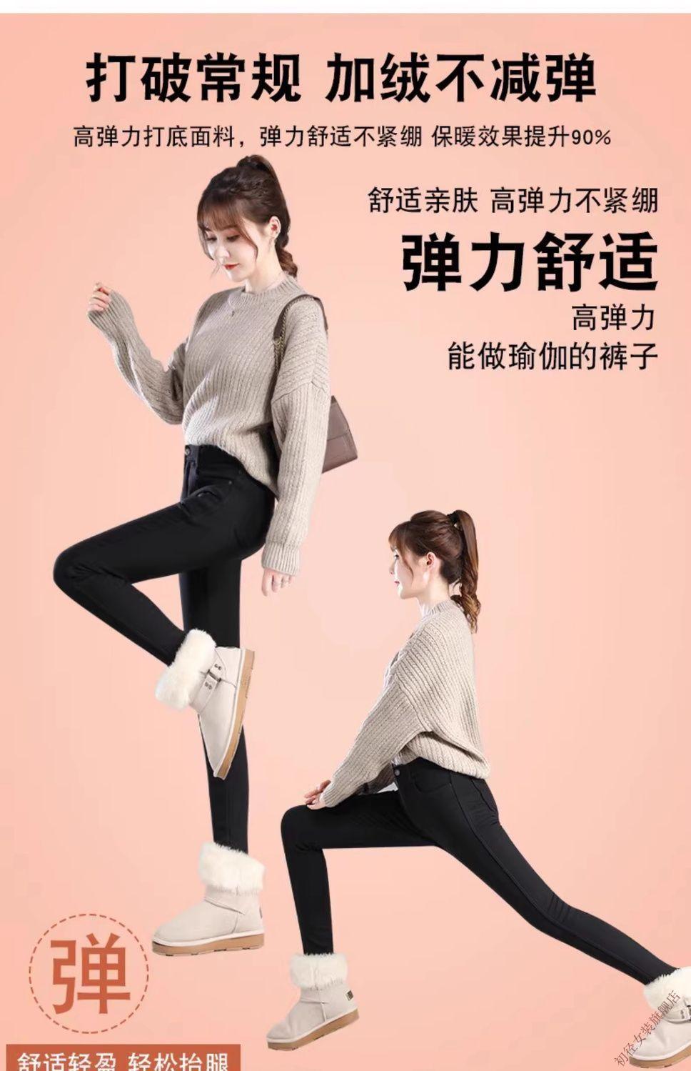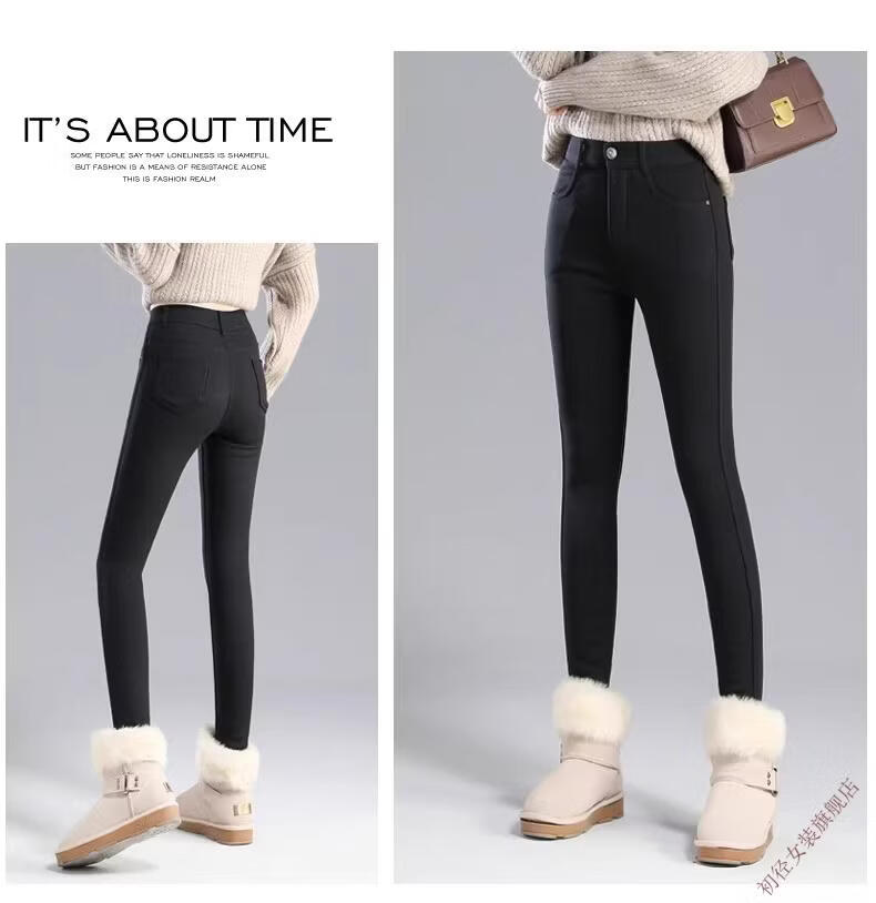First diameter outer wear leggings for women 2026 new autumn and winter plus velvet pants for women with small feet, black thickened lamb velvet small black cotton pants, lamb velvet black trousers - button waist, no snagging, S size (weight suitable for 86-95 Jin Jin is equal to 0.5 kg)