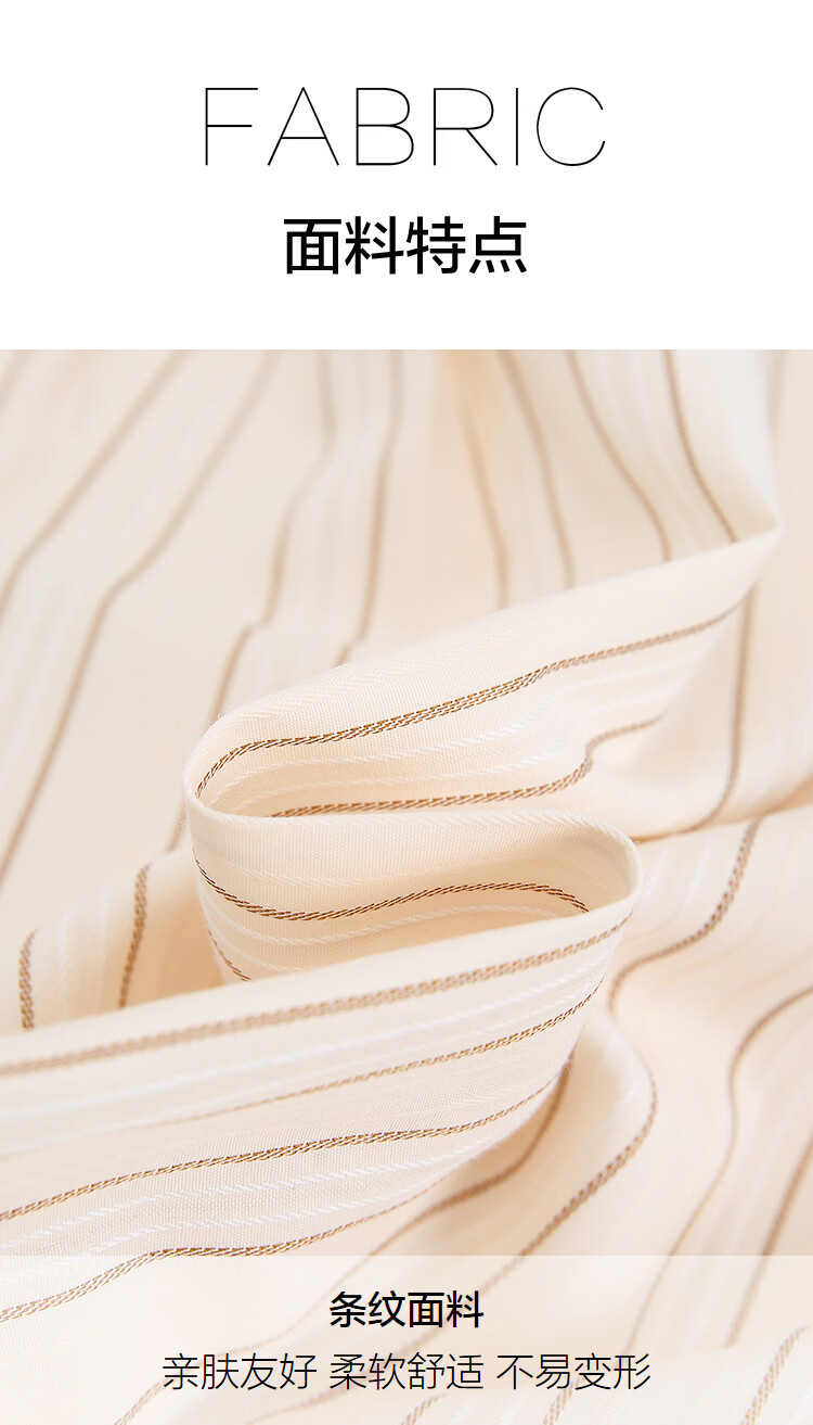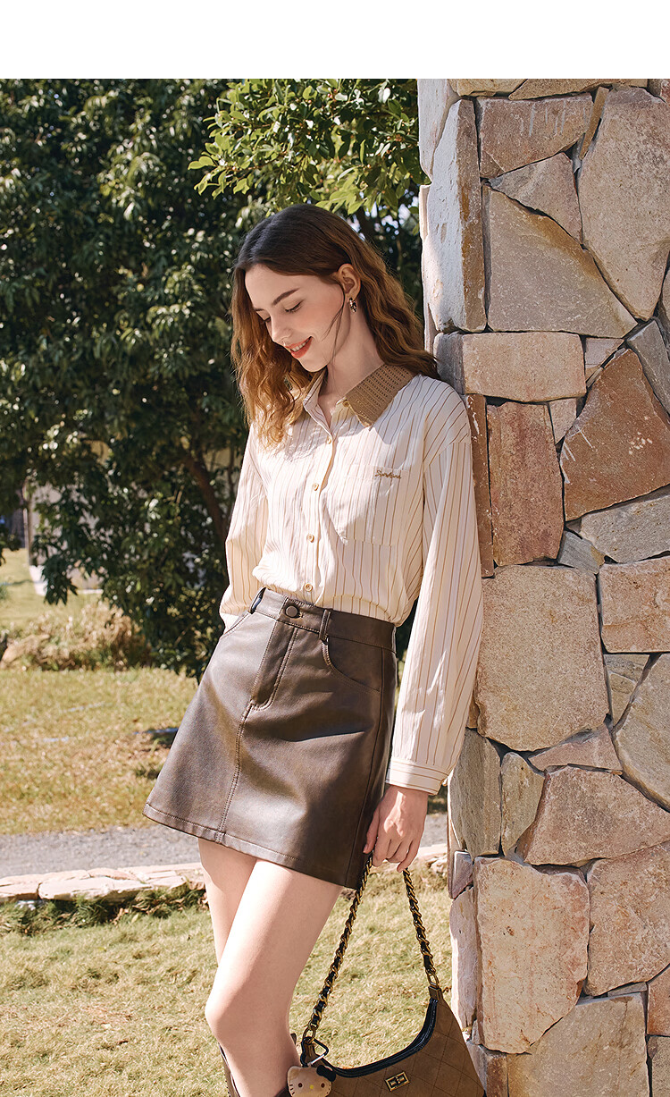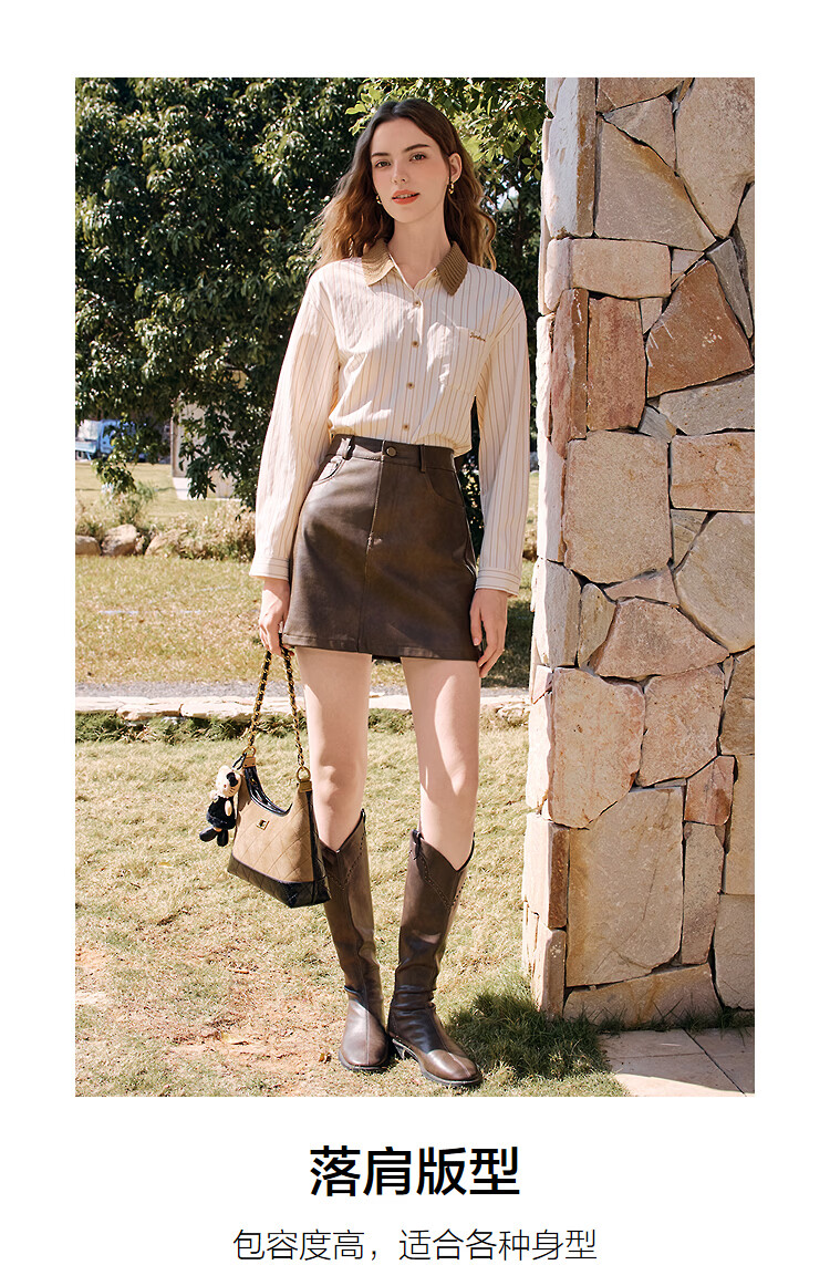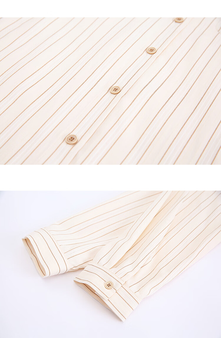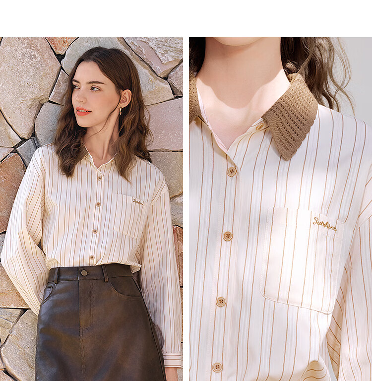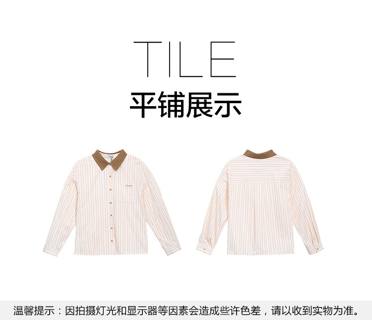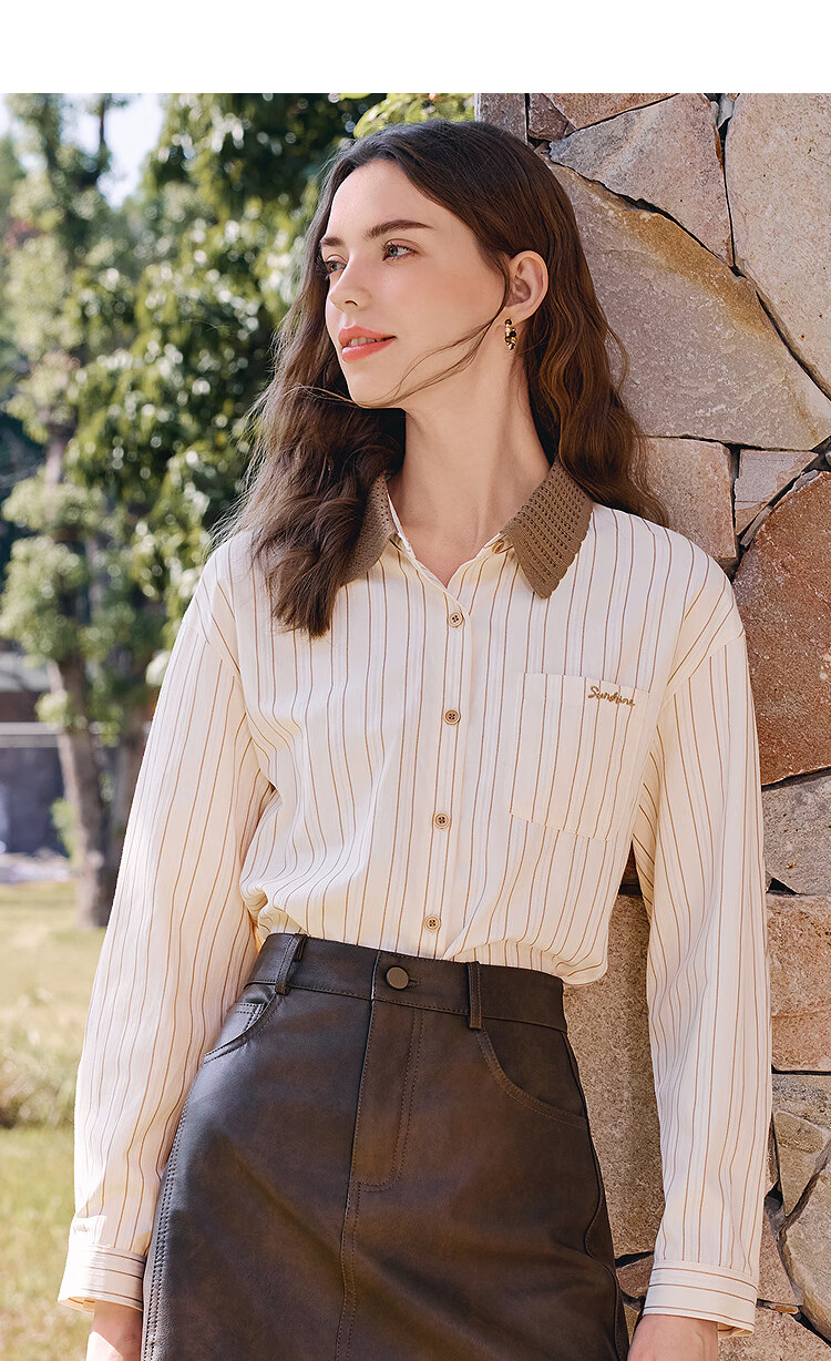 Betu women's 2026 spring new shirt contrasting color knitted collar textured striped high-end top for women 2601T23 apricot S