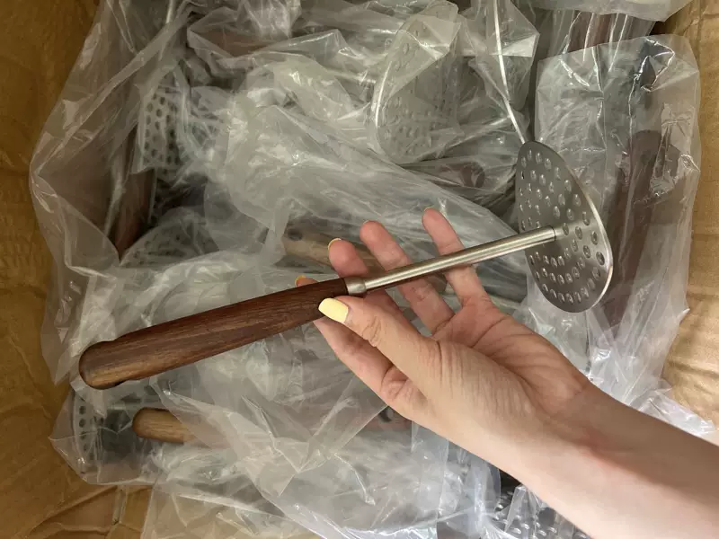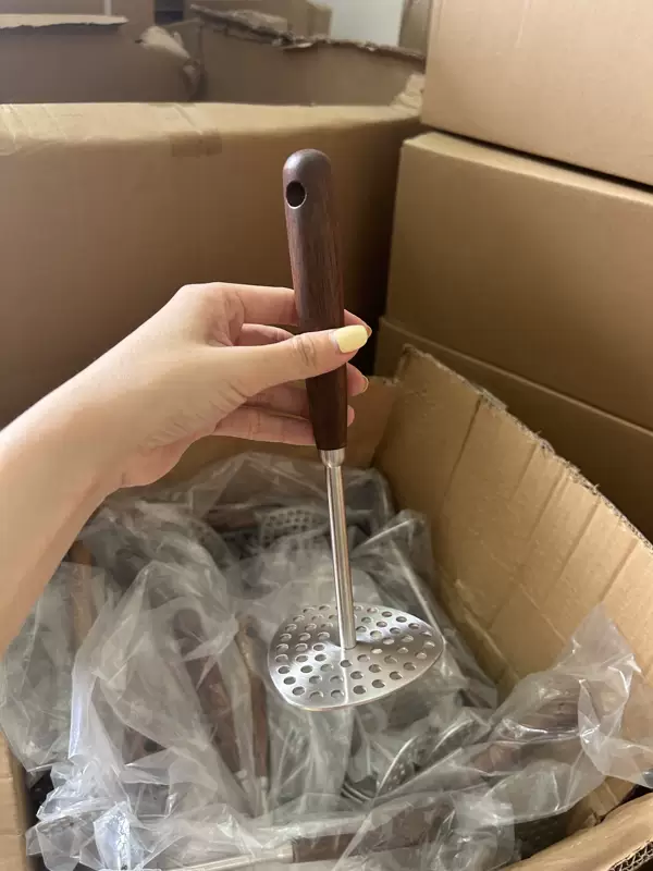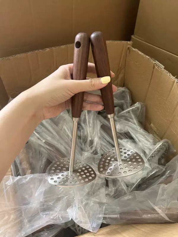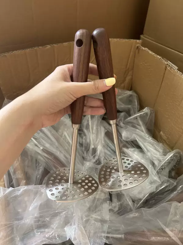 Yusenyi Kitchen 304 mashed potato masher stainless steel household baby food supplement mashed potato masher tool 304 walnut potato press