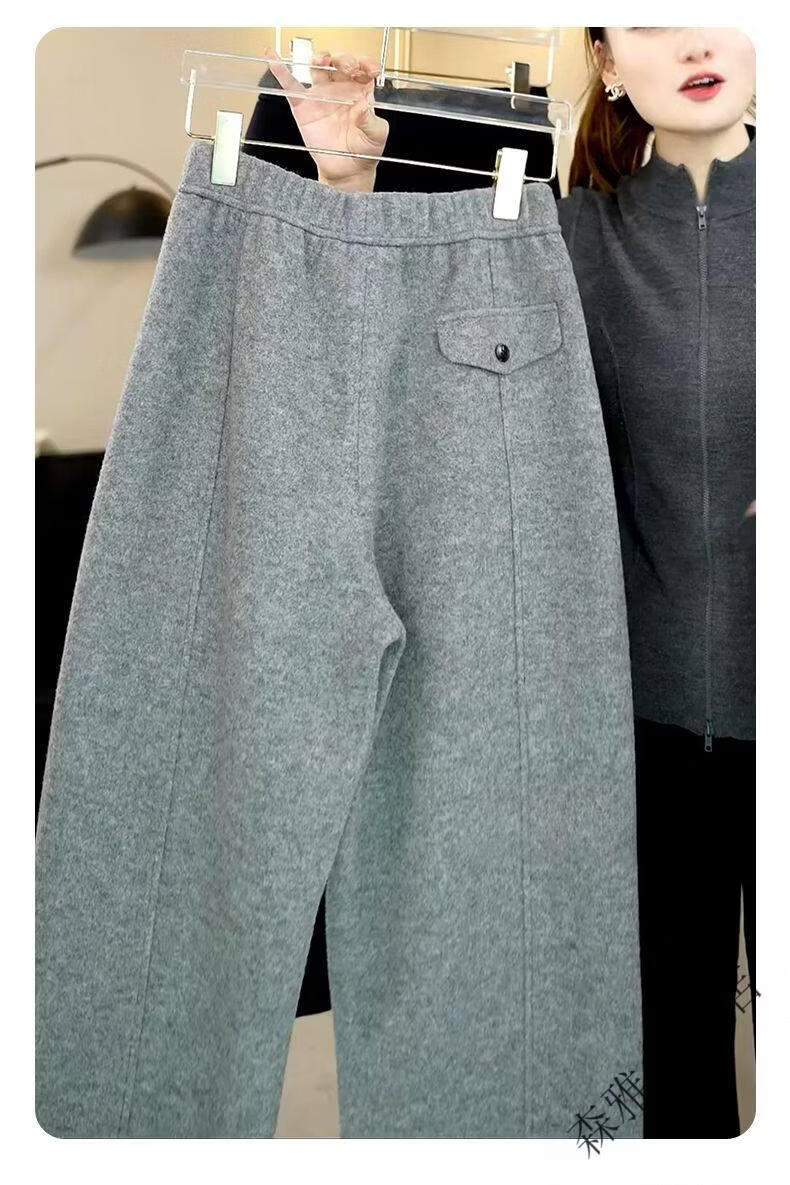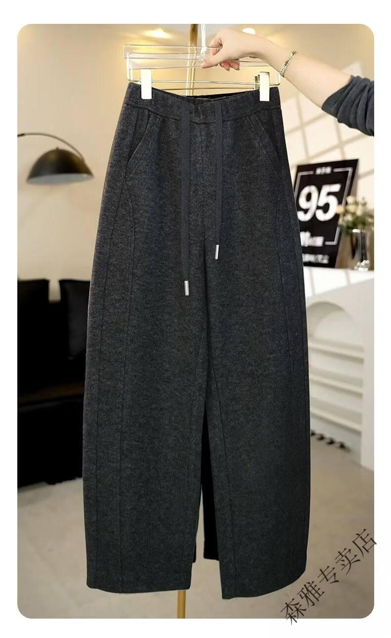 Hengyuanxiang wool wide-leg scimitar pants for women 2026 new autumn and winter plus velvet thickened casual pants woolen banana pants straight pants light gray plus velvet style high quality model M recommended 70-100Jin Jin equals 0.5 kg