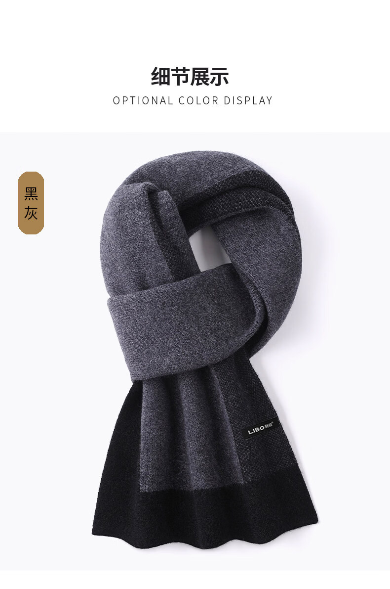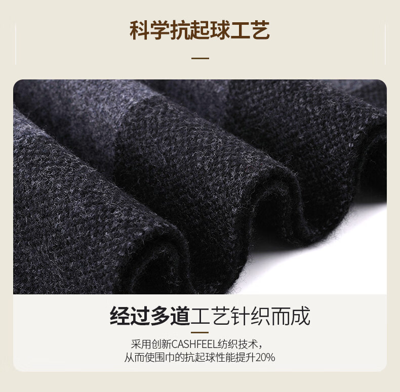 ERDOS City 2025 New Cashmere Men's Scarf Winter Thick Warmth Versatile Wool Black Gray 30058W