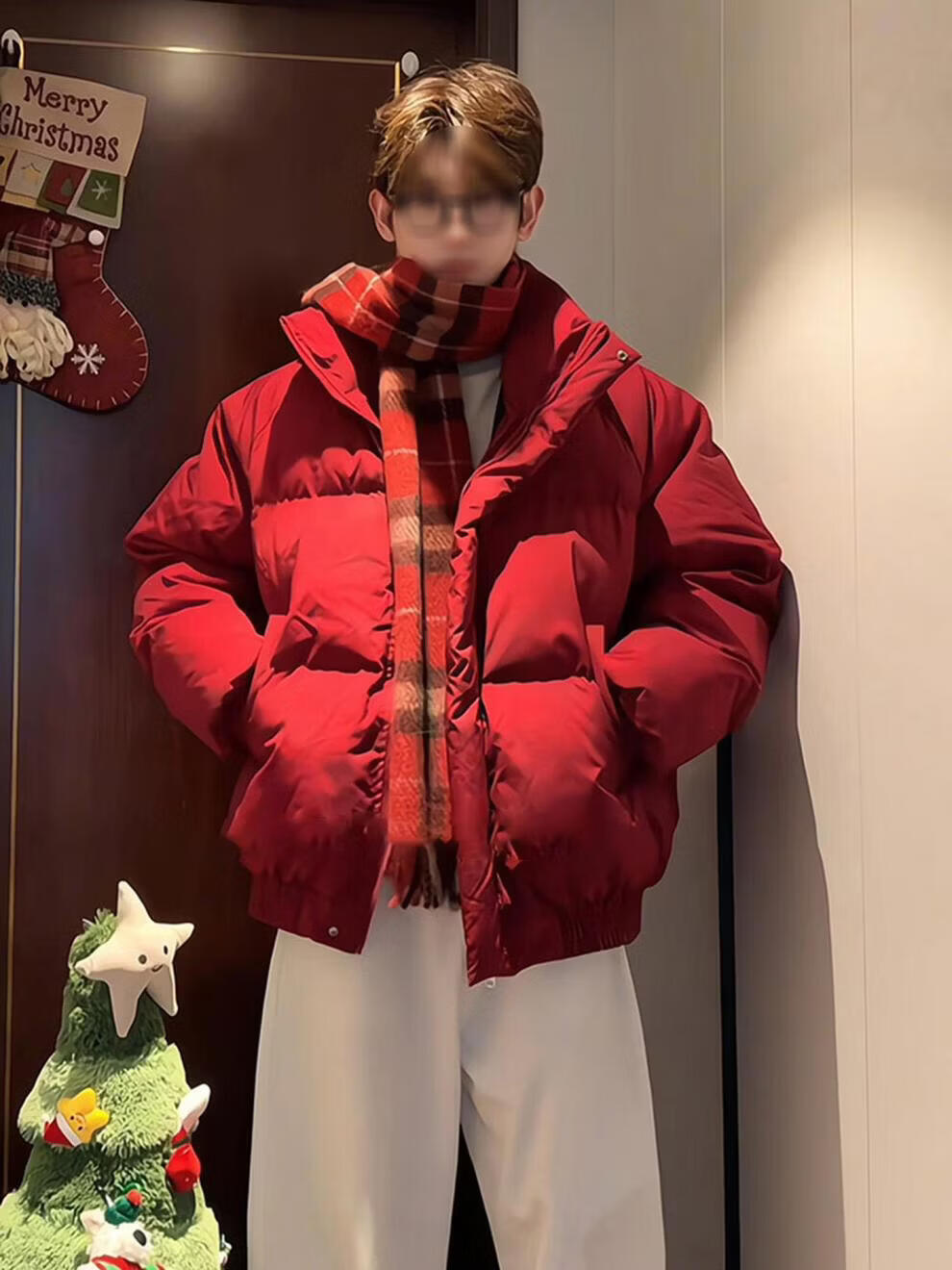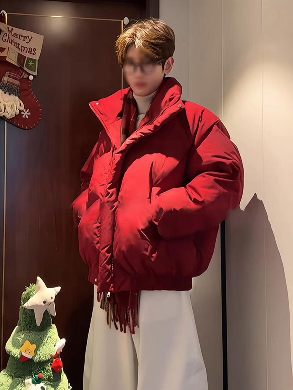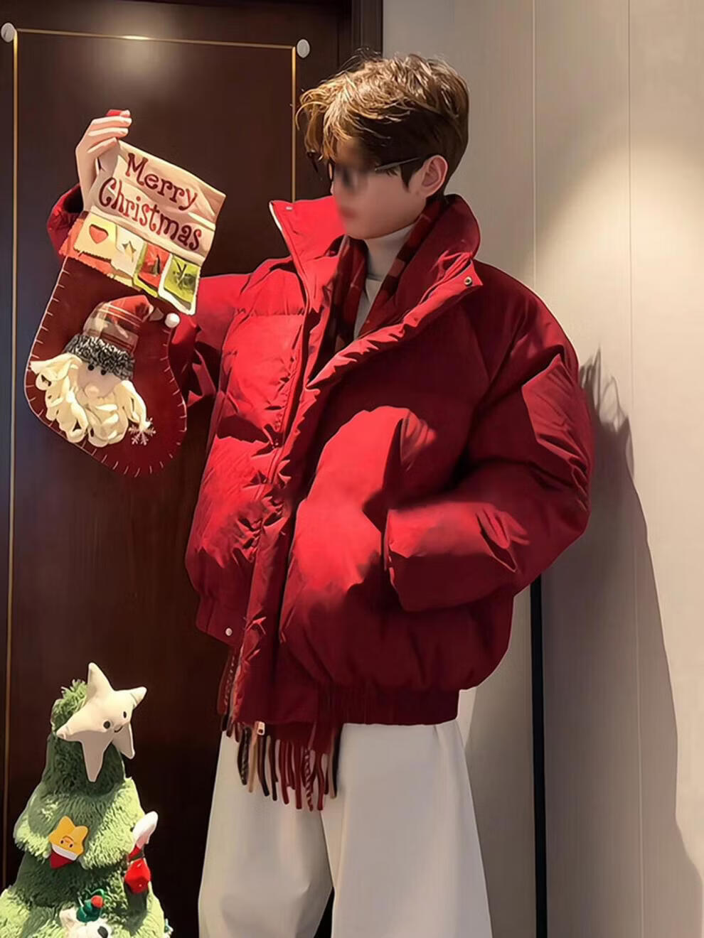 Main style (ZHUYIFAN) burgundy stand-up collar American down jacket for boys Christmas and New Year shirt short jacket warm thickened bread jacket red upgraded version M