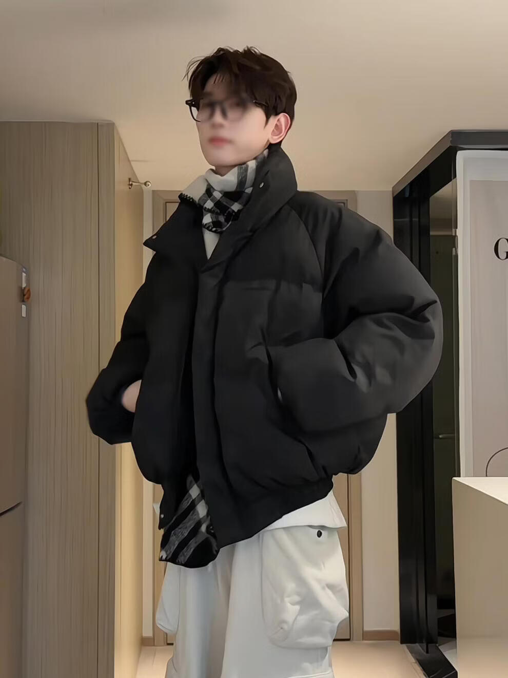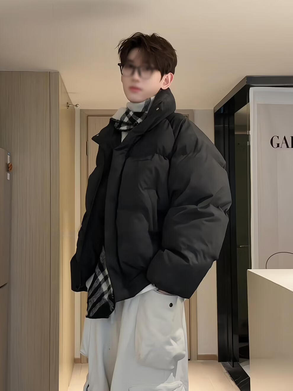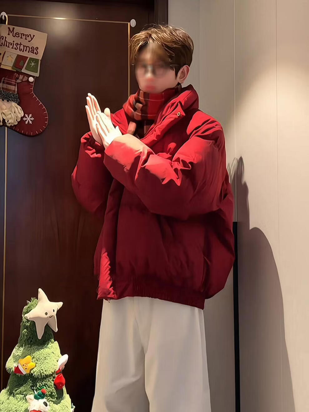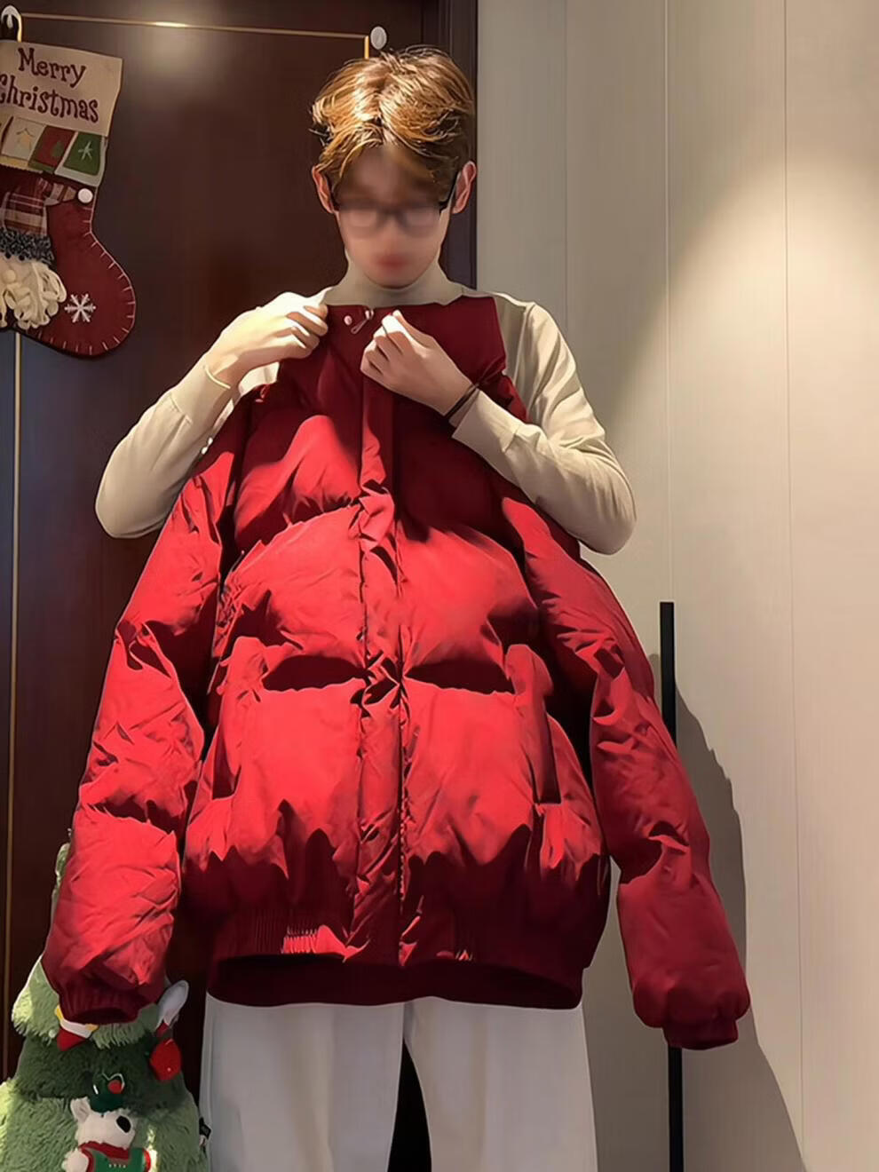 Main style (ZHUYIFAN) burgundy stand-up collar American down jacket for boys Christmas and New Year shirt short jacket warm thickened bread jacket red upgraded version M