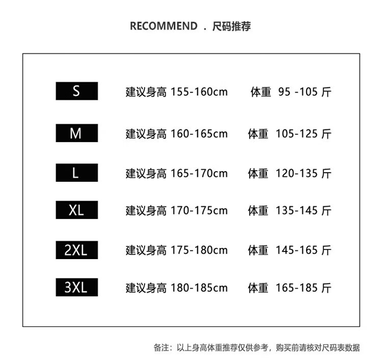 China (cm) 165 / 88-90 170 / 96-98 175 / 108-110 180 / 118-122 185 / 126-130